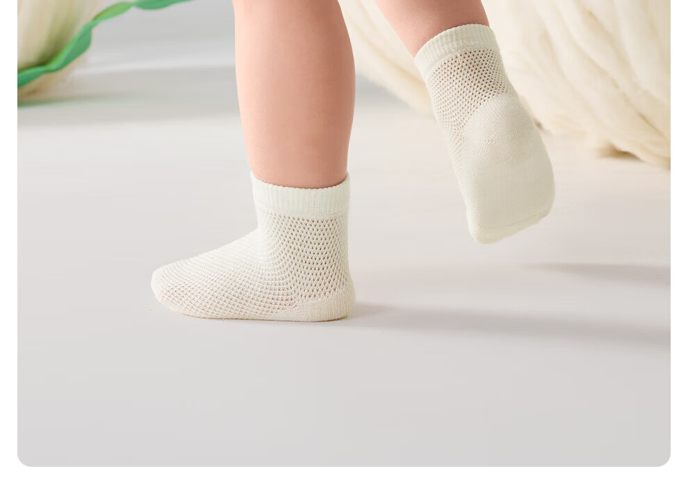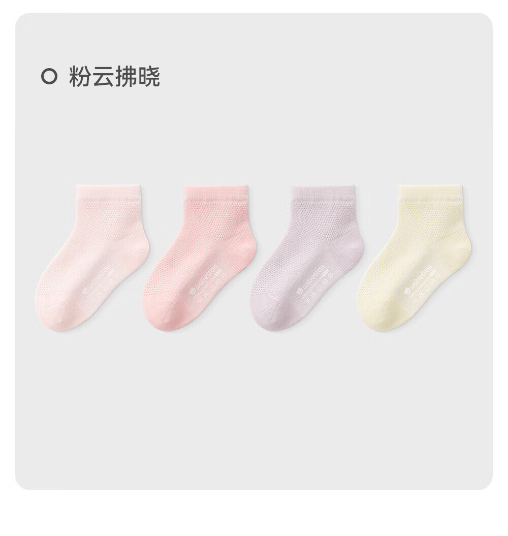 贝肽斯宝宝袜子夏季薄款新生婴儿网眼短袜儿童纯色透气纯棉短筒袜 粉云拂晓 【10A抗菌 轻薄透气】 4双 1-3岁 【适合脚长12-14cm】
