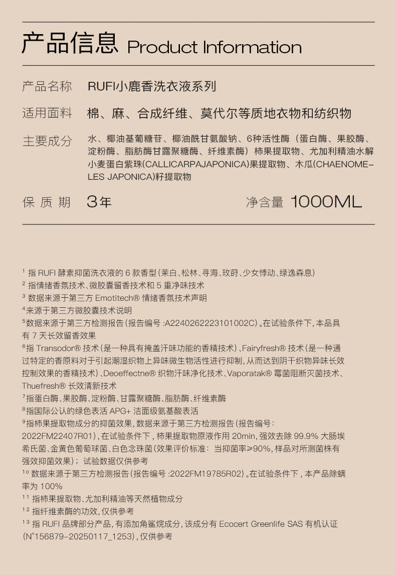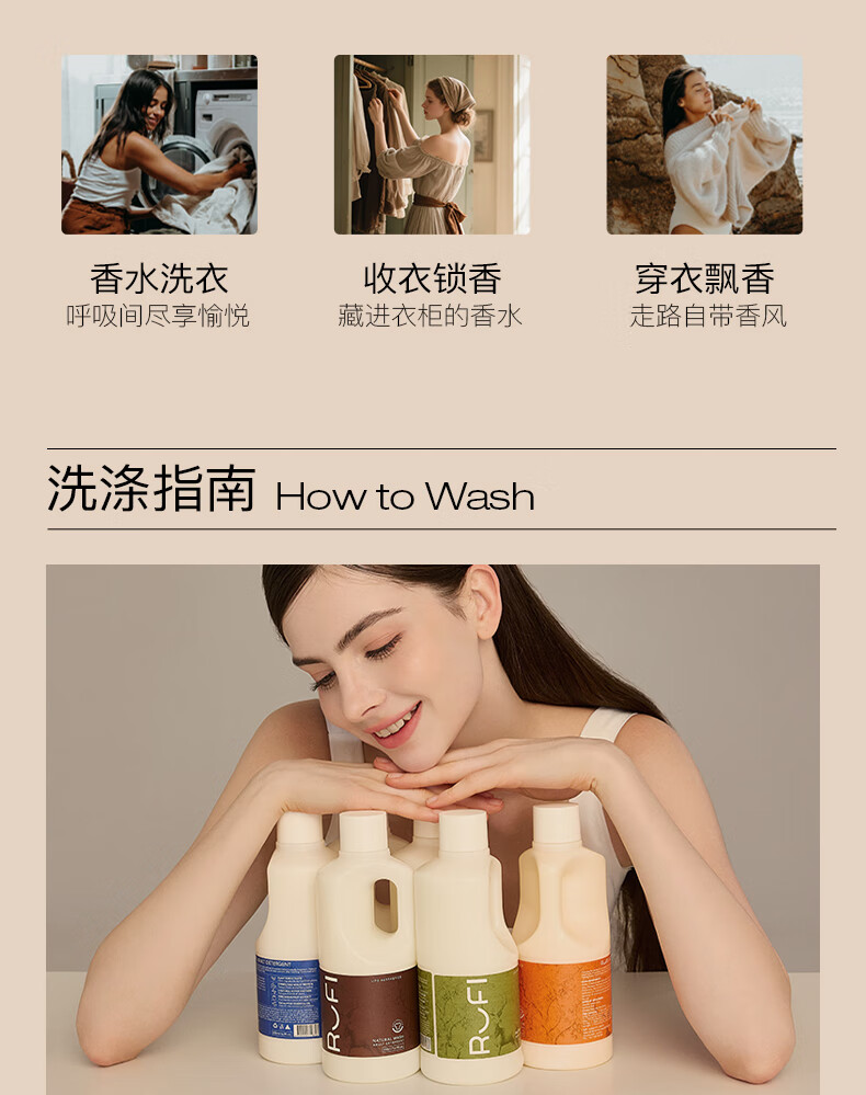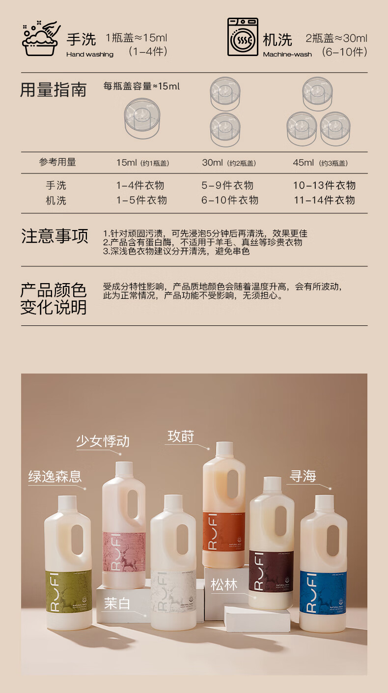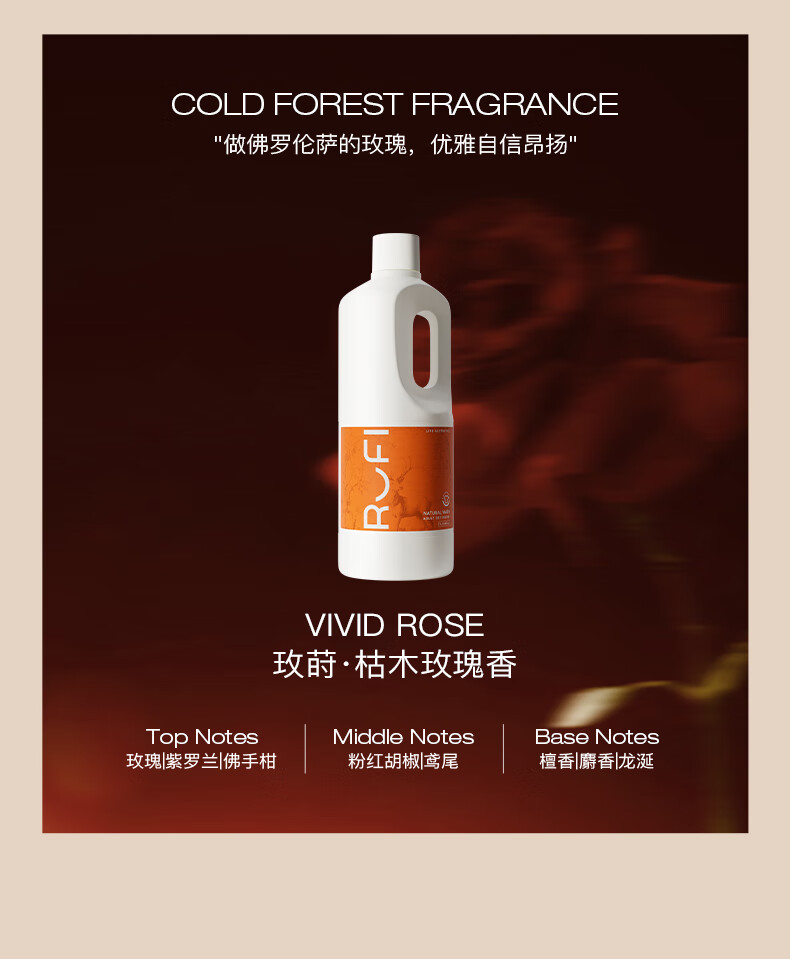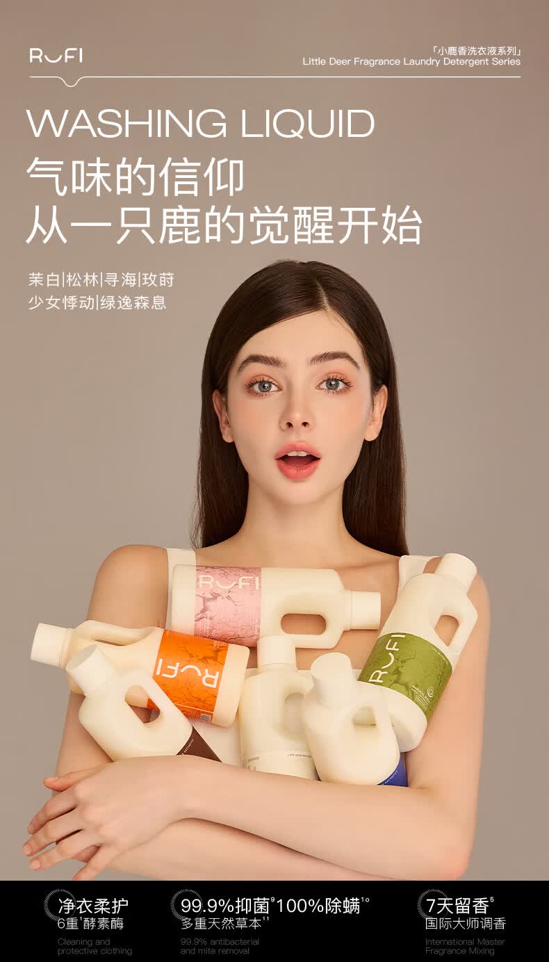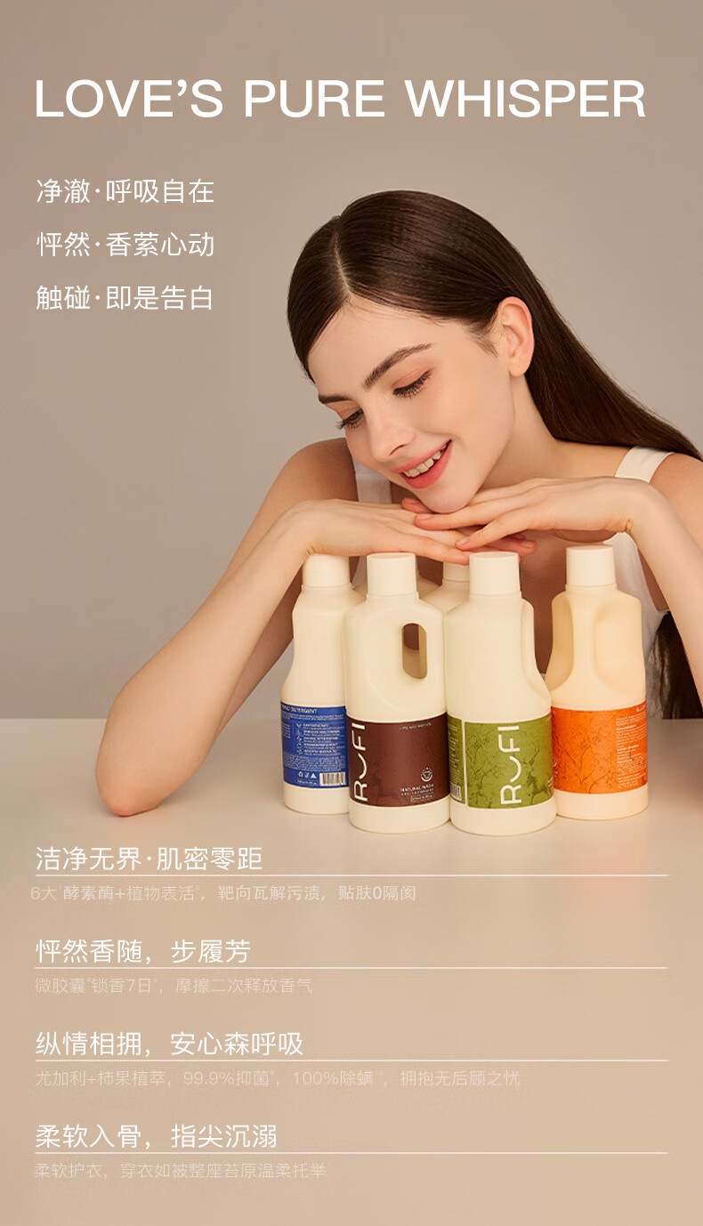 rufi洗衣液 持久留香香氛洗衣液除菌除螨酵素 玫莳1000ml