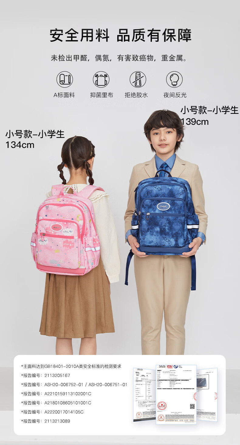 美旅女孩放心书包1-6年级小学生双肩包儿童抗菌减负背包高颜值NG3