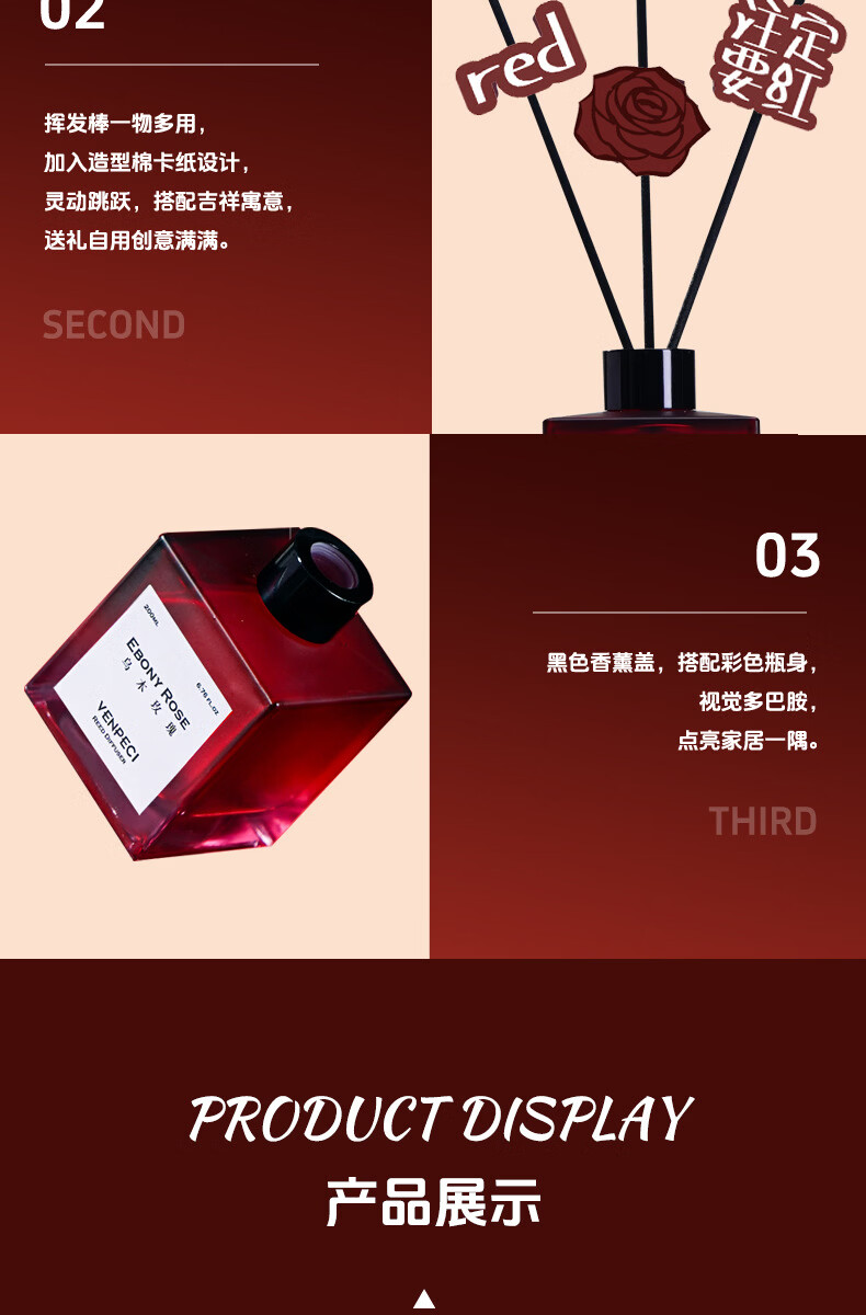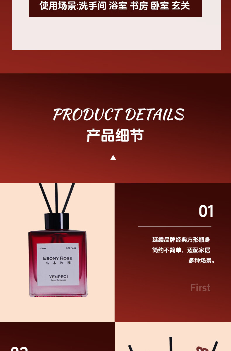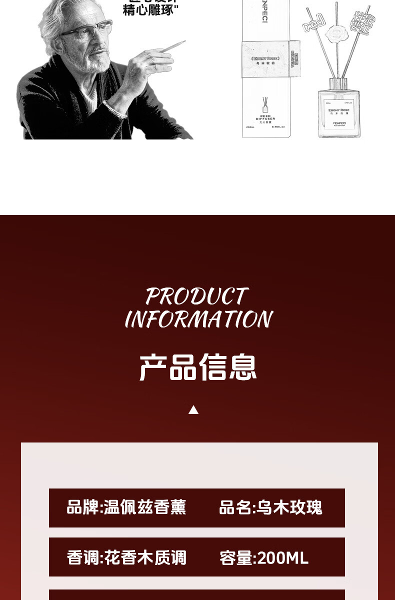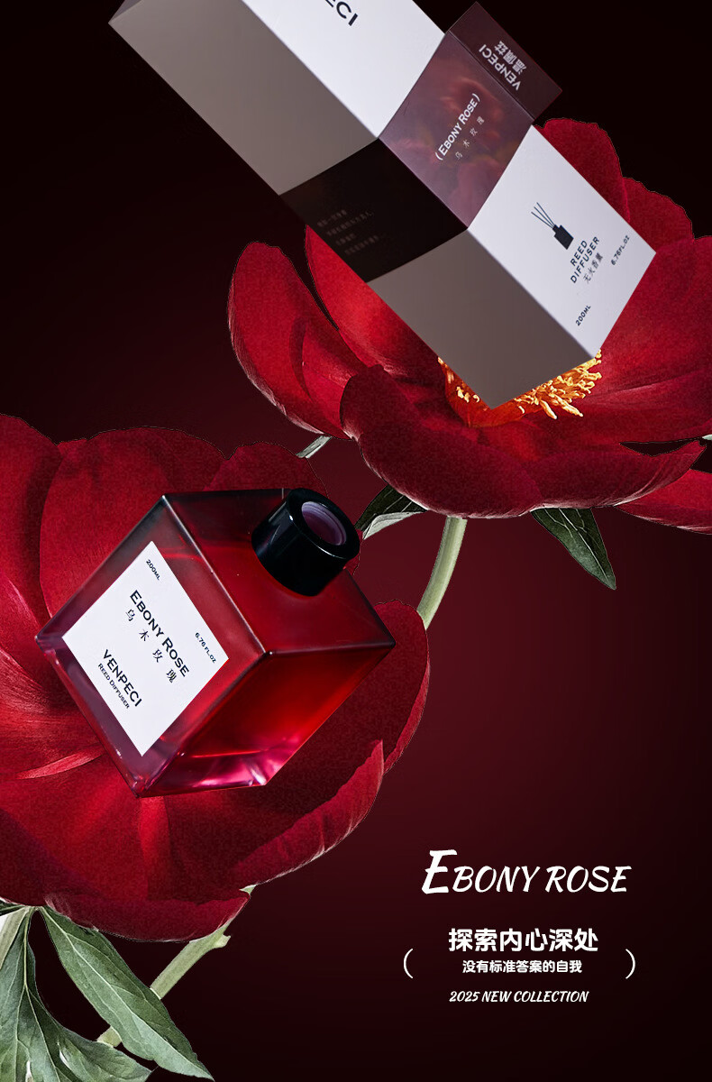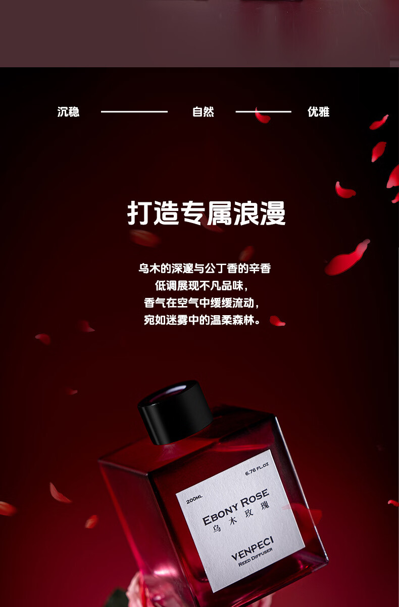 物语花香香薰家用室内持久留香高级女生香氛卧室淡除臭客厅 乌木玫瑰【优雅玫瑰香】 200ML/VENPECI/温佩兹/黑彩