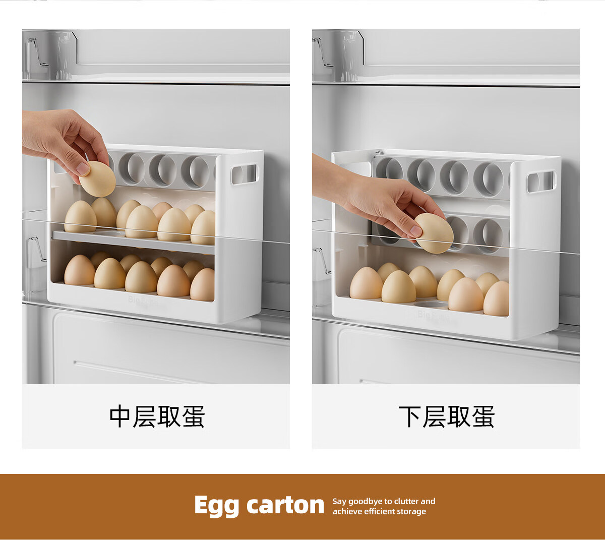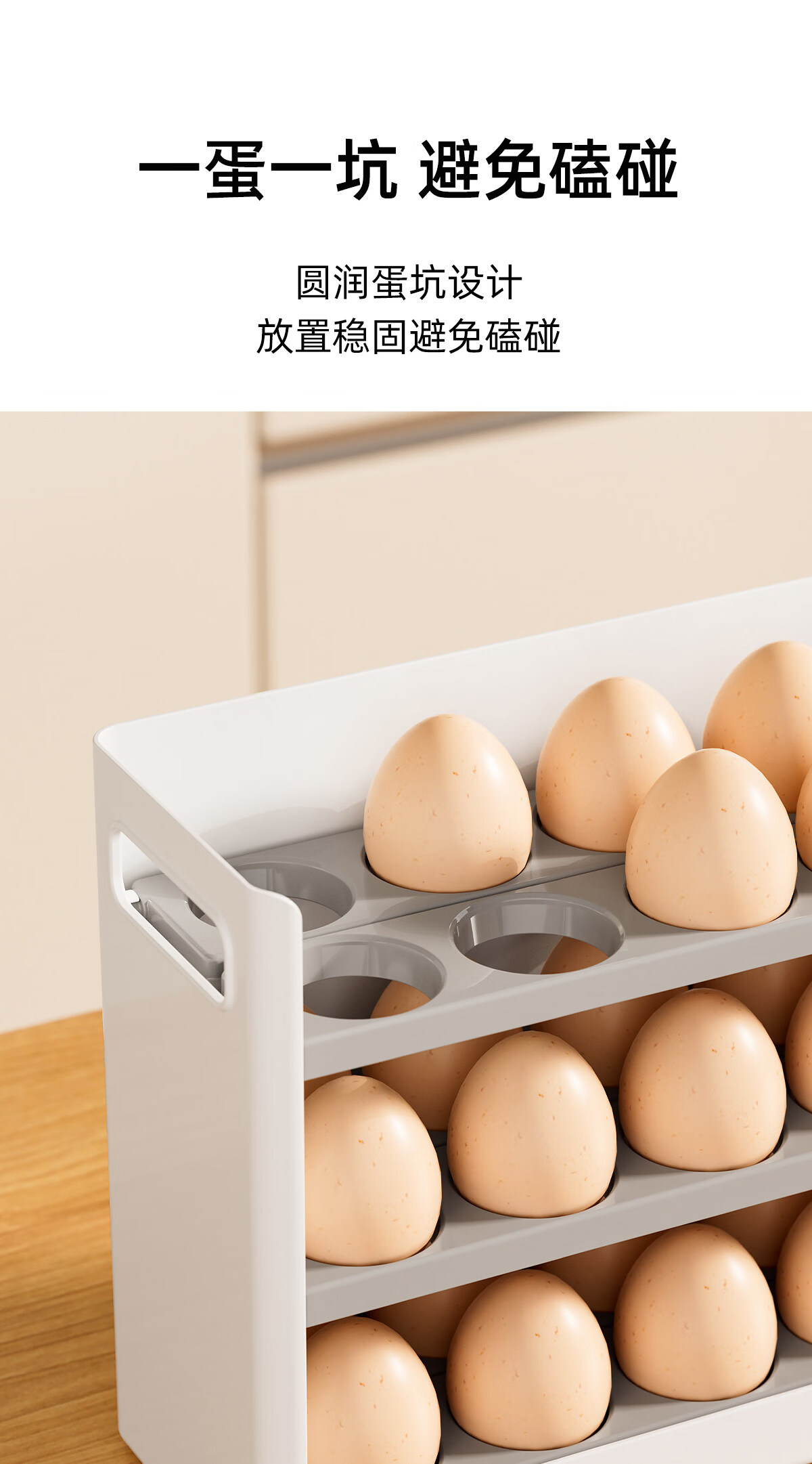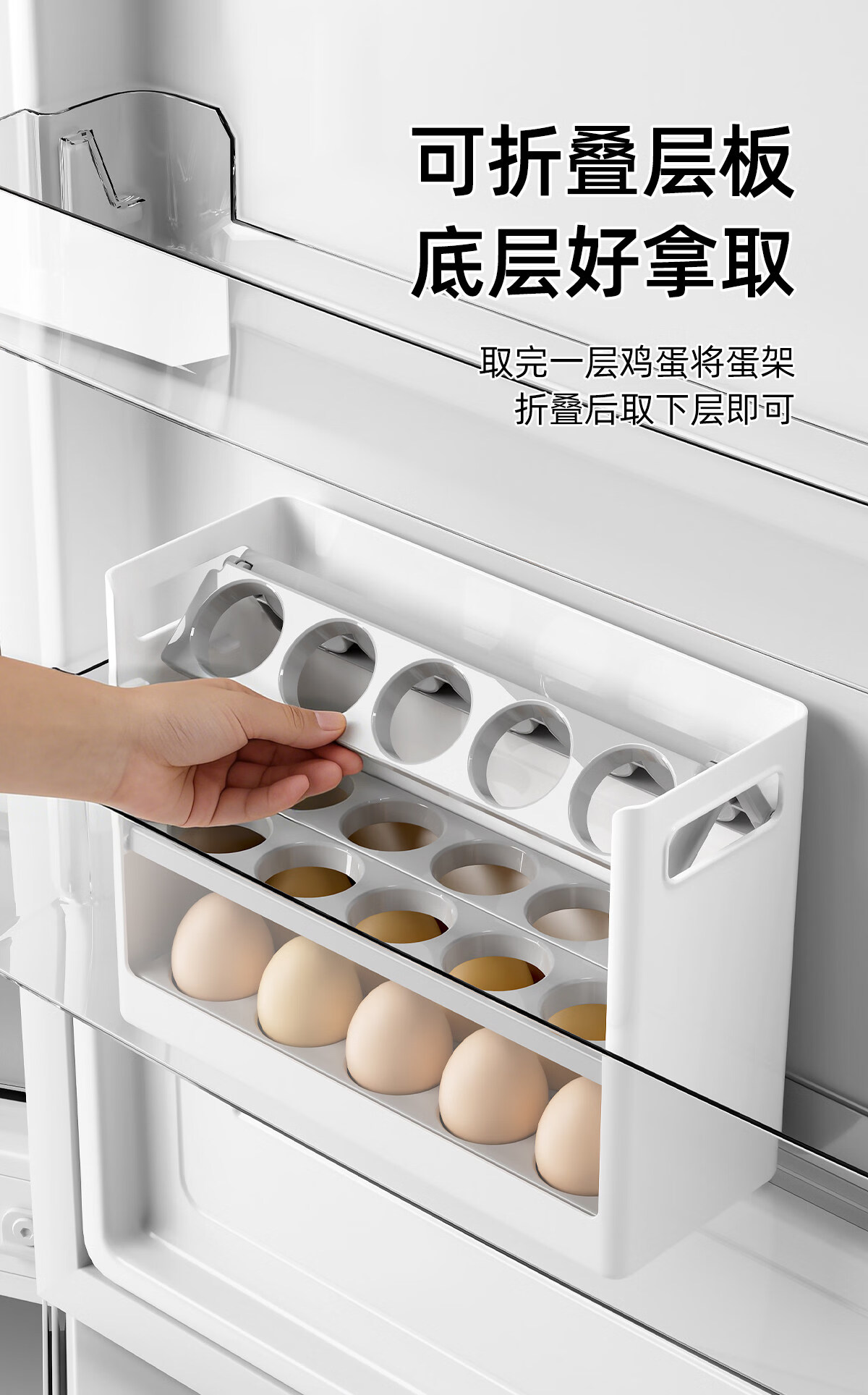 艾仕可(ASCOR)冰箱用侧门鸡蛋收纳盒食品级保鲜盒专用整理收纳翻转鸡蛋盒鸡蛋托 鸡蛋收纳盒-1个装【可折叠收纳30枚鸡蛋】