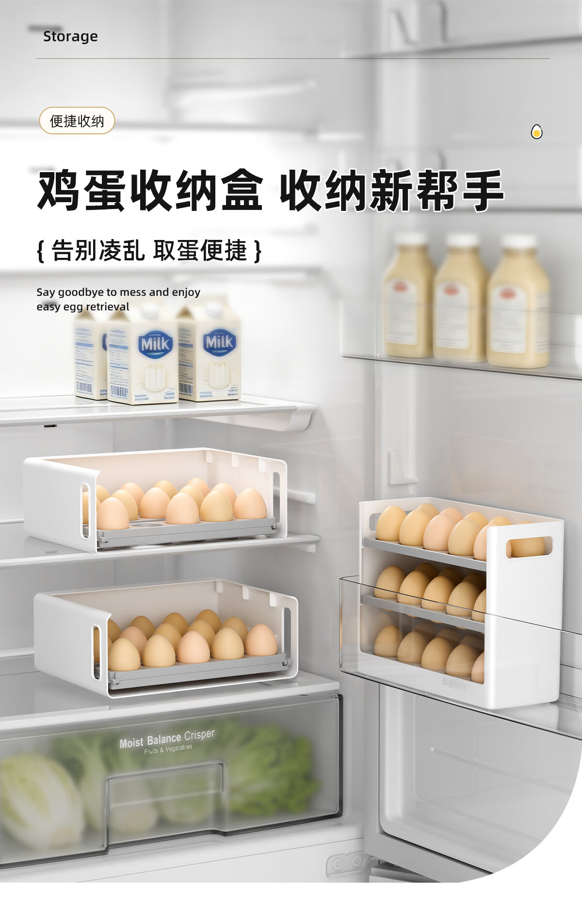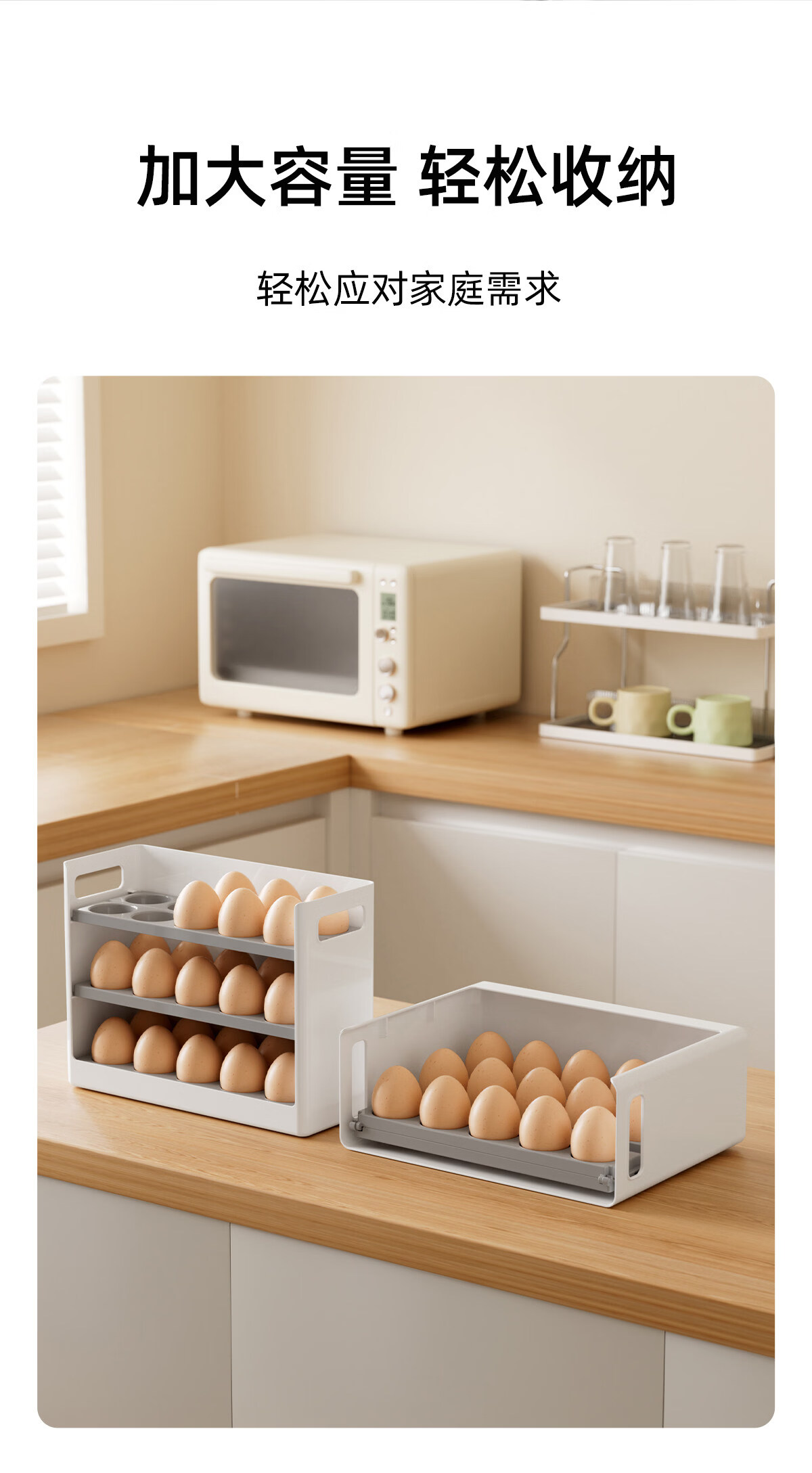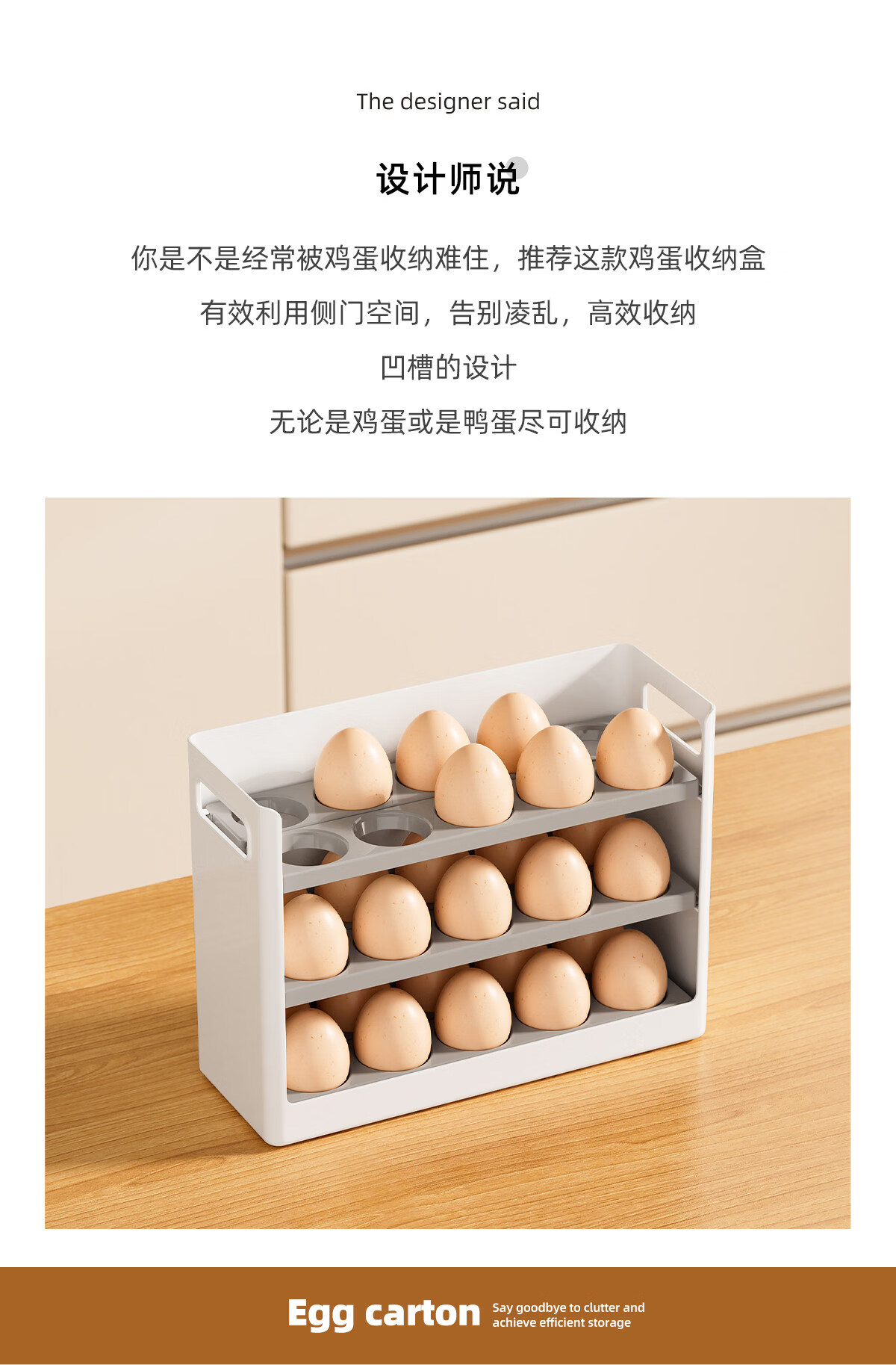 艾仕可(ASCOR)冰箱用侧门鸡蛋收纳盒食品级保鲜盒专用整理收纳翻转鸡蛋盒鸡蛋托 鸡蛋收纳盒-1个装【可折叠收纳30枚鸡蛋】