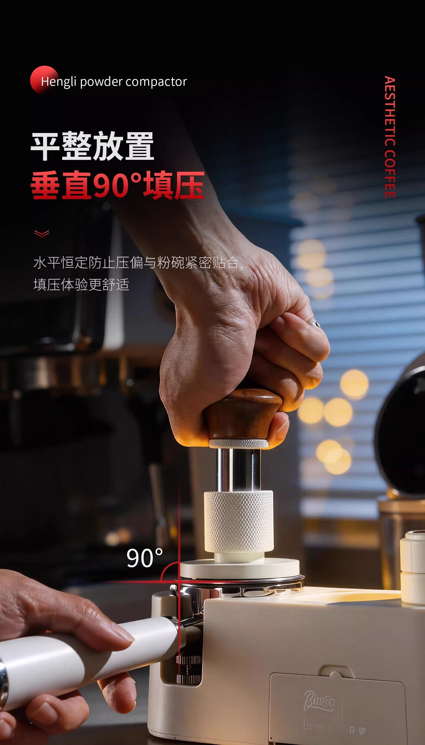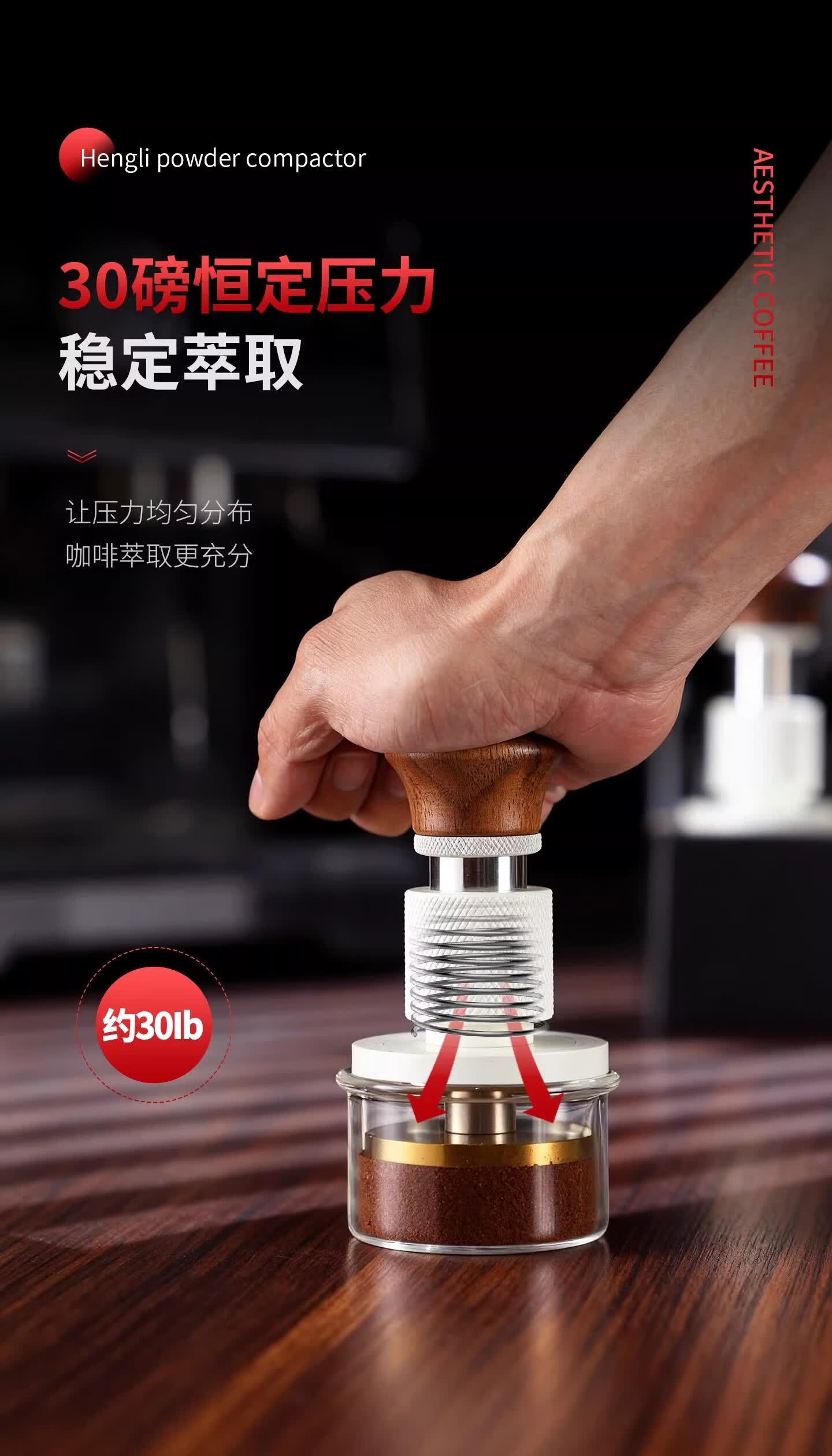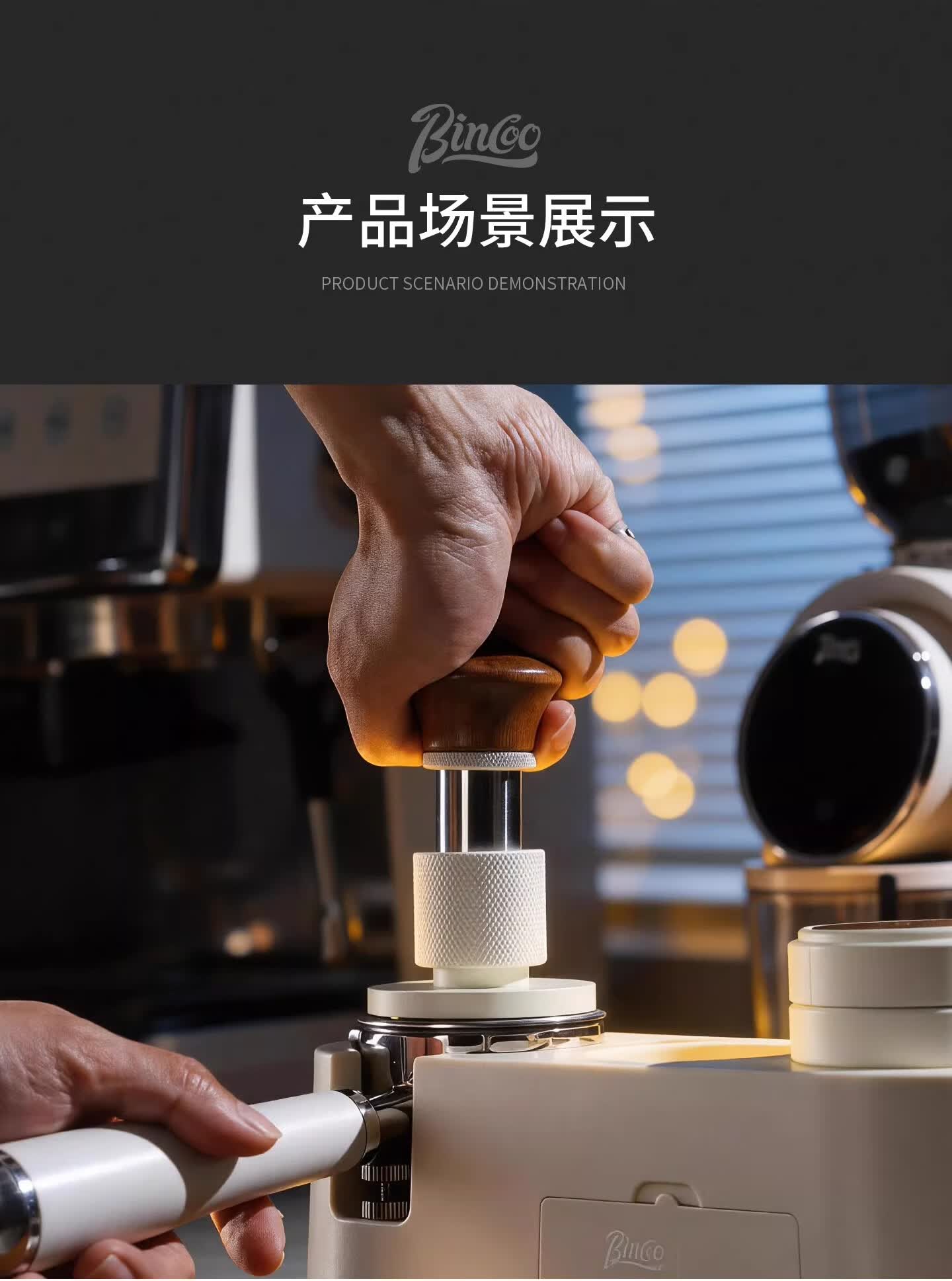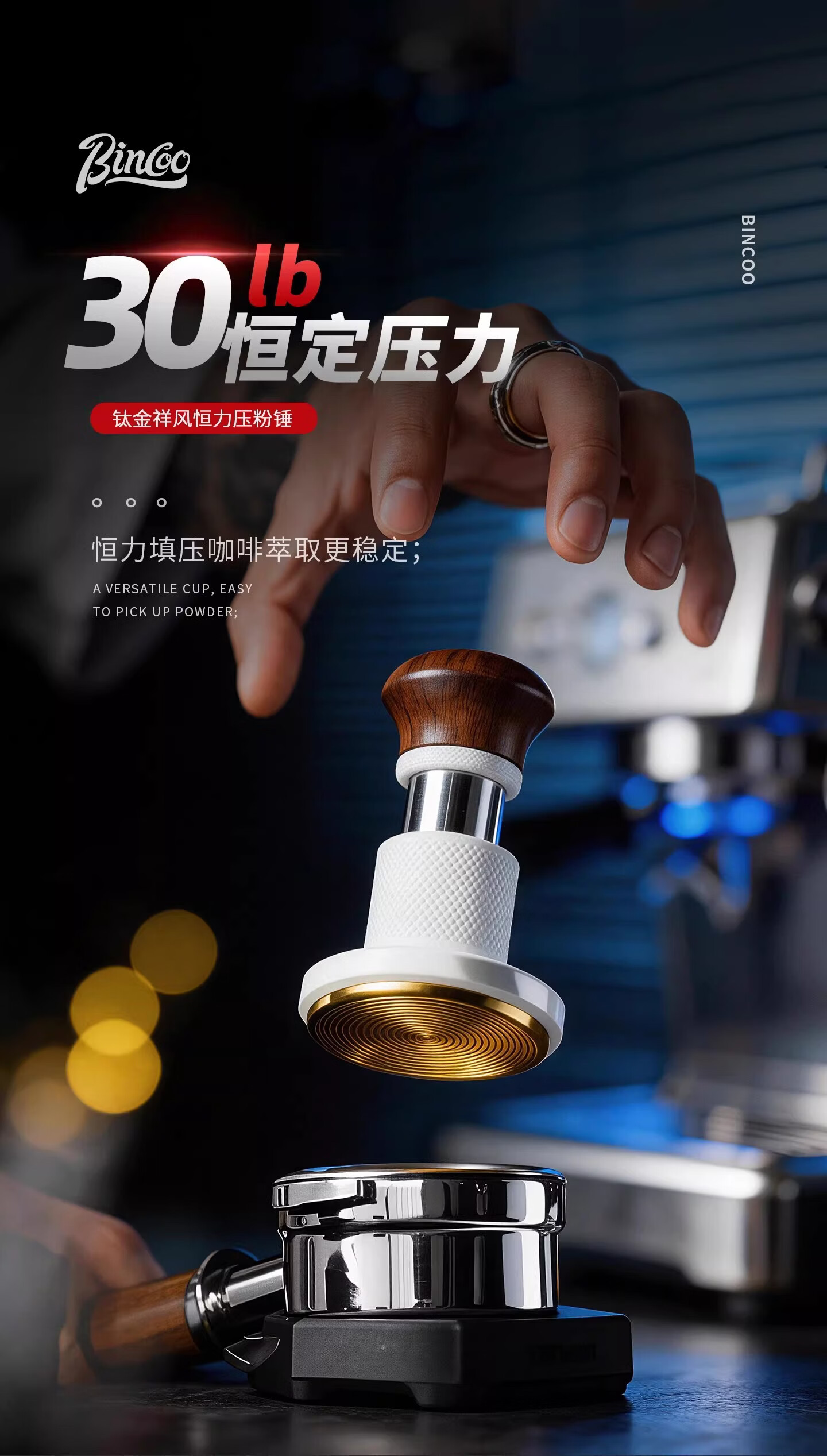 Bincoo恒力镀钛咖啡压粉锤30磅冲击螺纹底意式咖啡机配件压粉器具 方把恒力黑色【镀钛螺纹底】 51mm