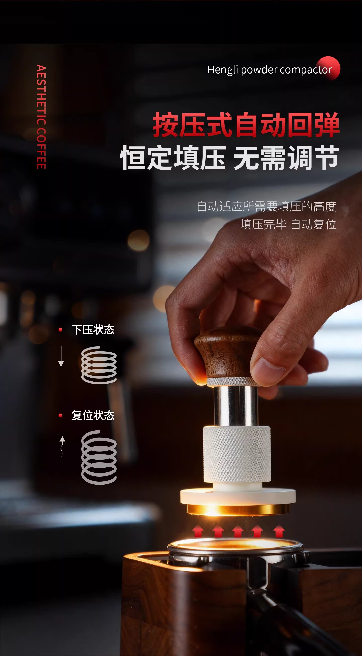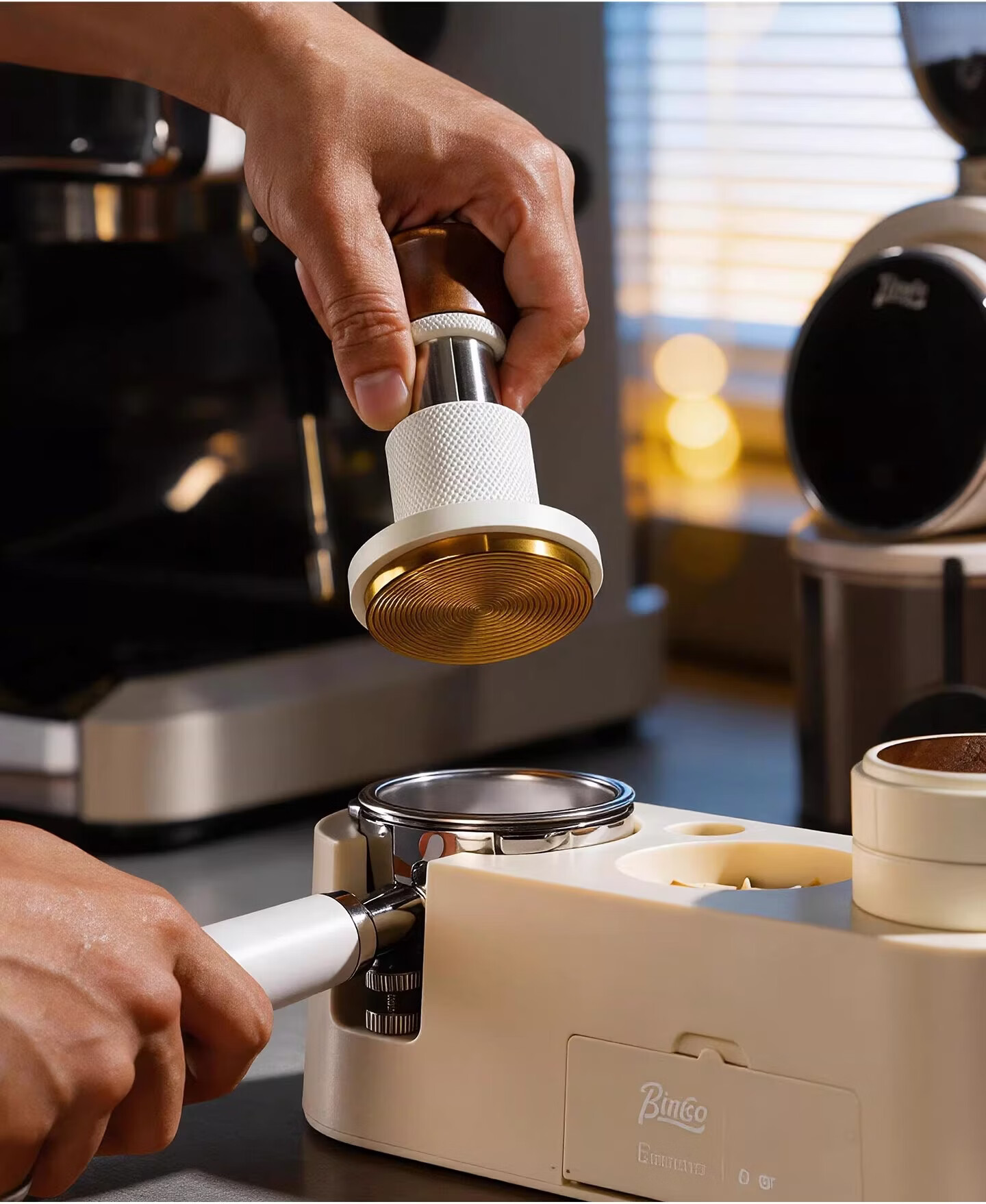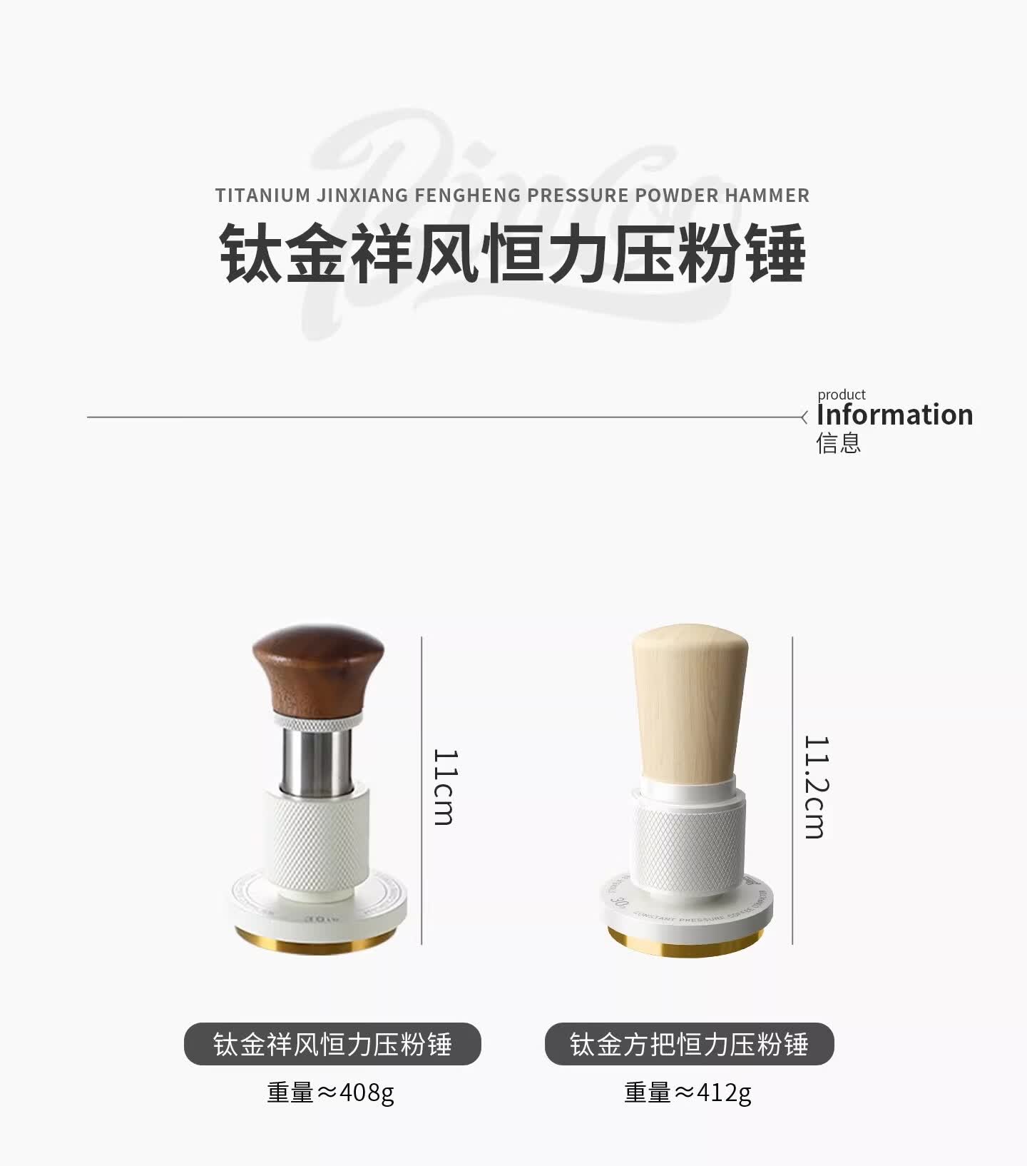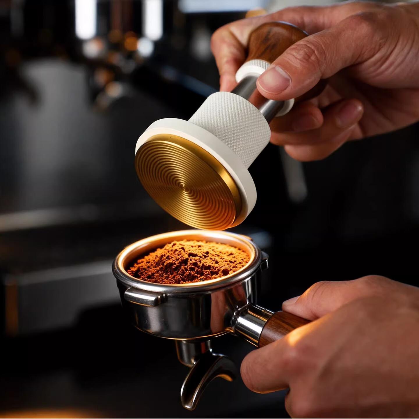 Bincoo恒力镀钛咖啡压粉锤30磅冲击螺纹底意式咖啡机配件压粉器具 方把恒力黑色【镀钛螺纹底】 51mm