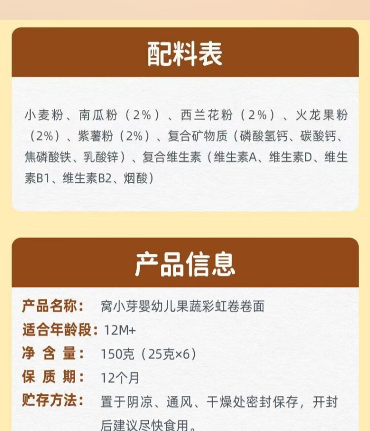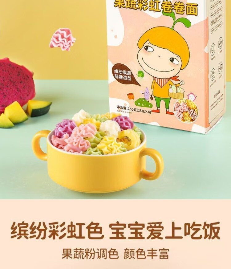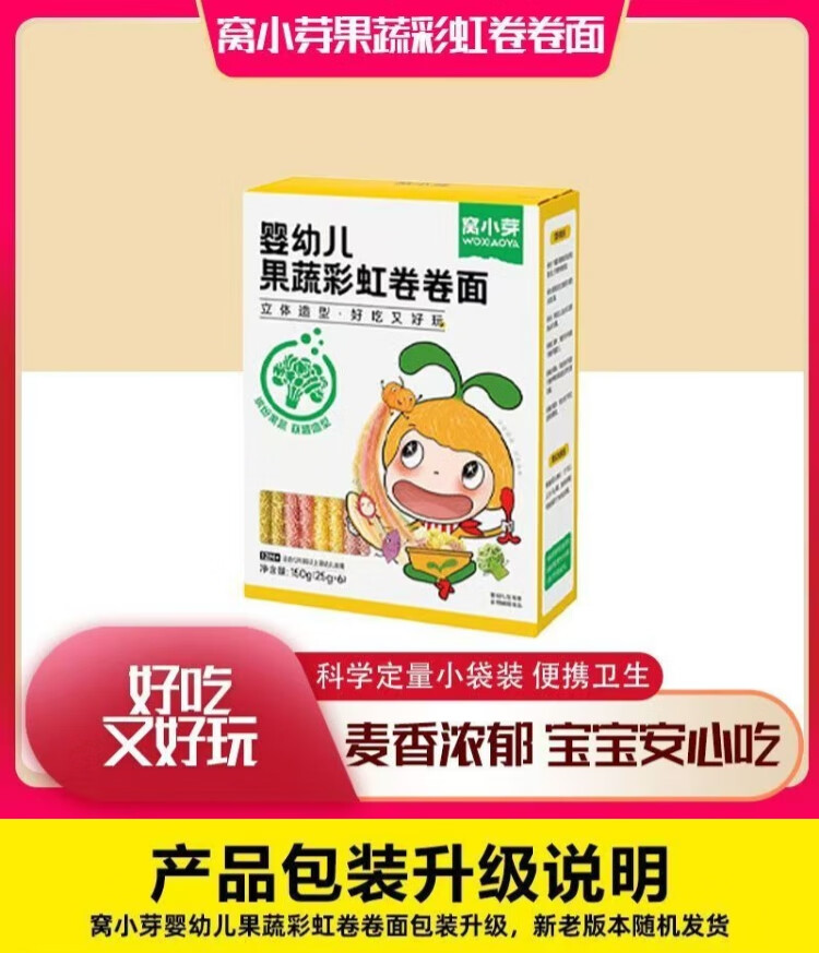 窝小芽婴幼儿果蔬彩虹卷卷面150g宝宝营养辅食儿童面条【临期清仓】