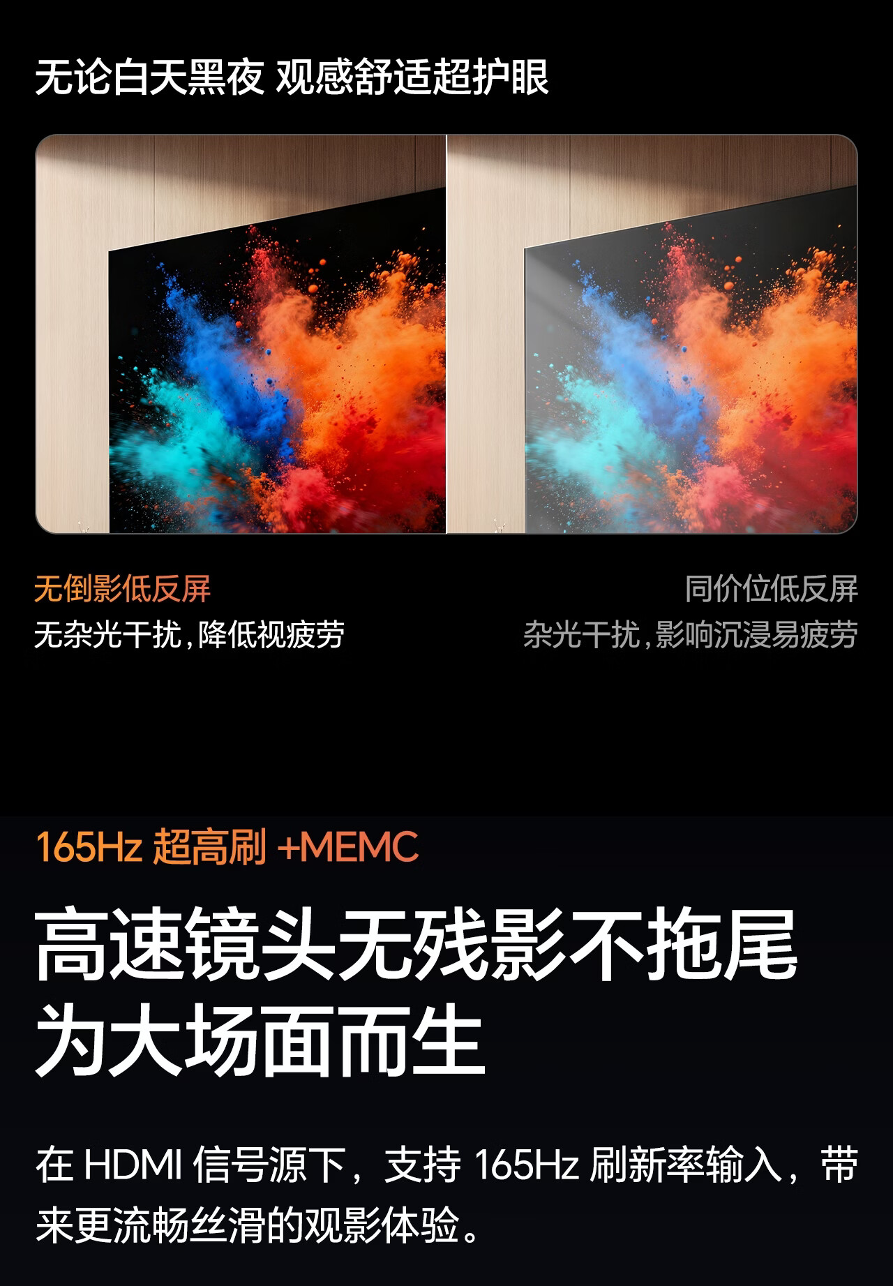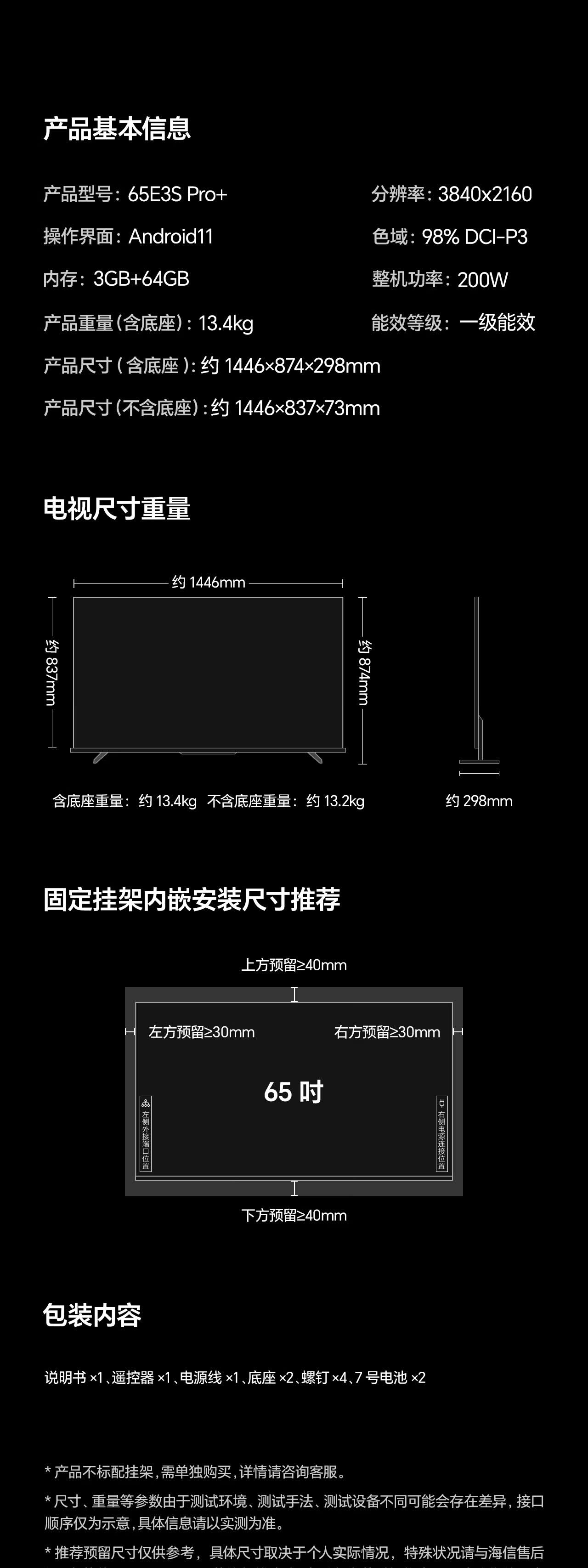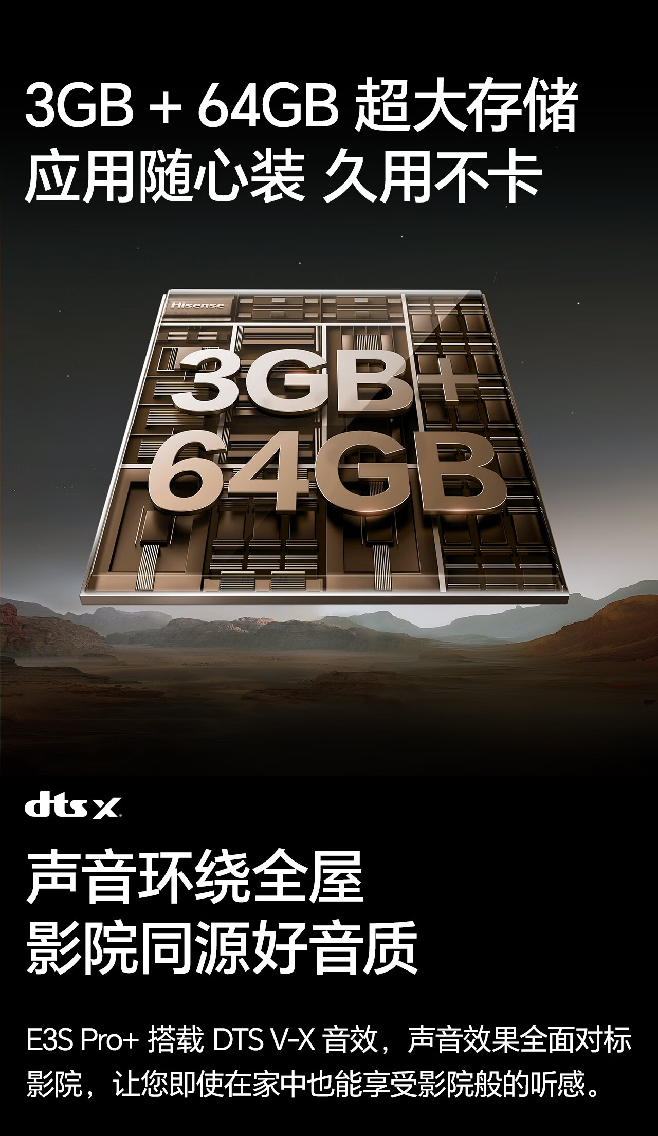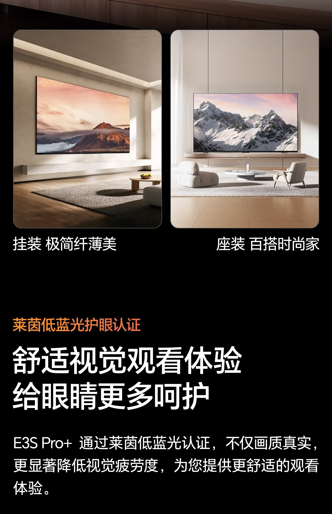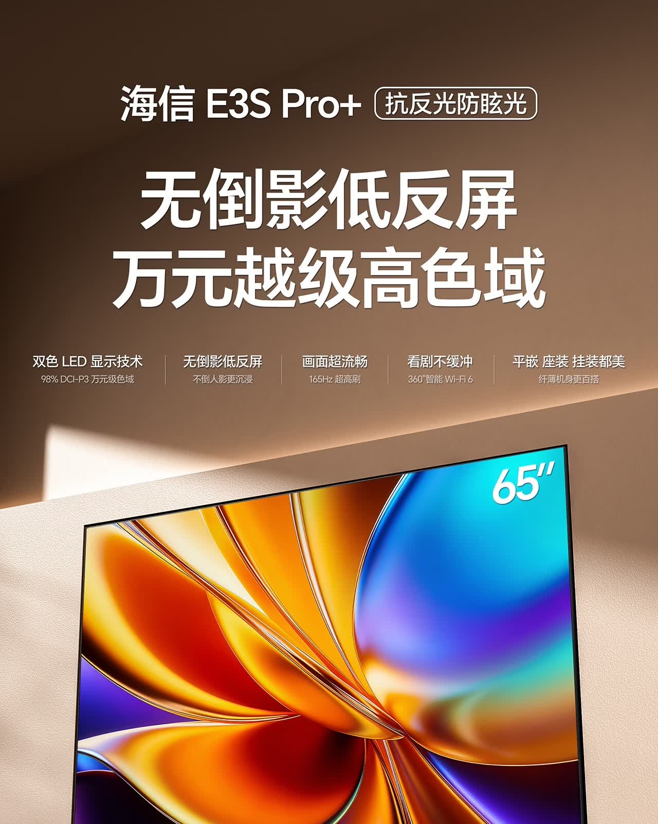 海信电视E3S Pro+ 65英寸 万元级高色域 抗反光无倒影 165Hz高刷 Wi-Fi6 一级能效限时补贴E3QHPro升级