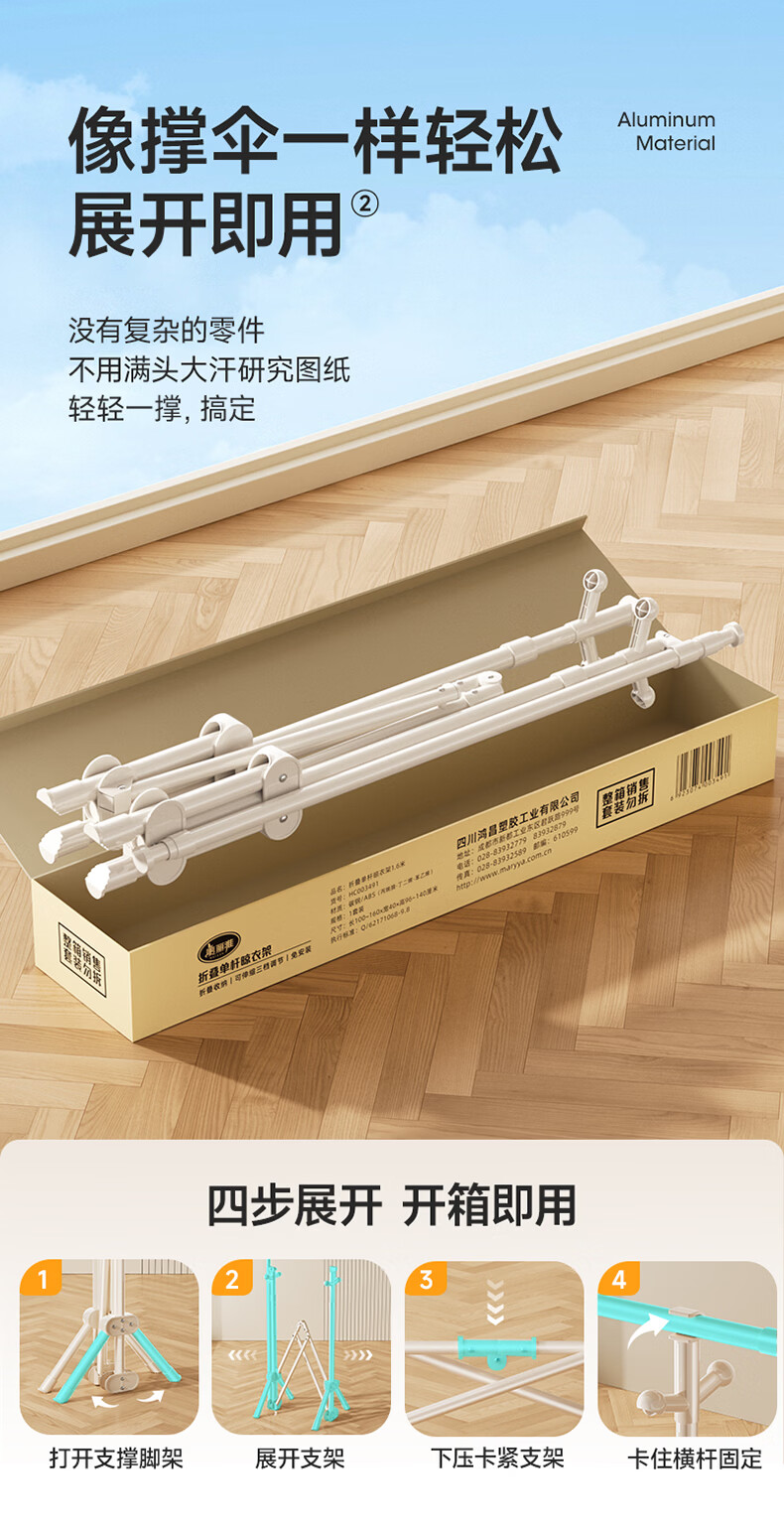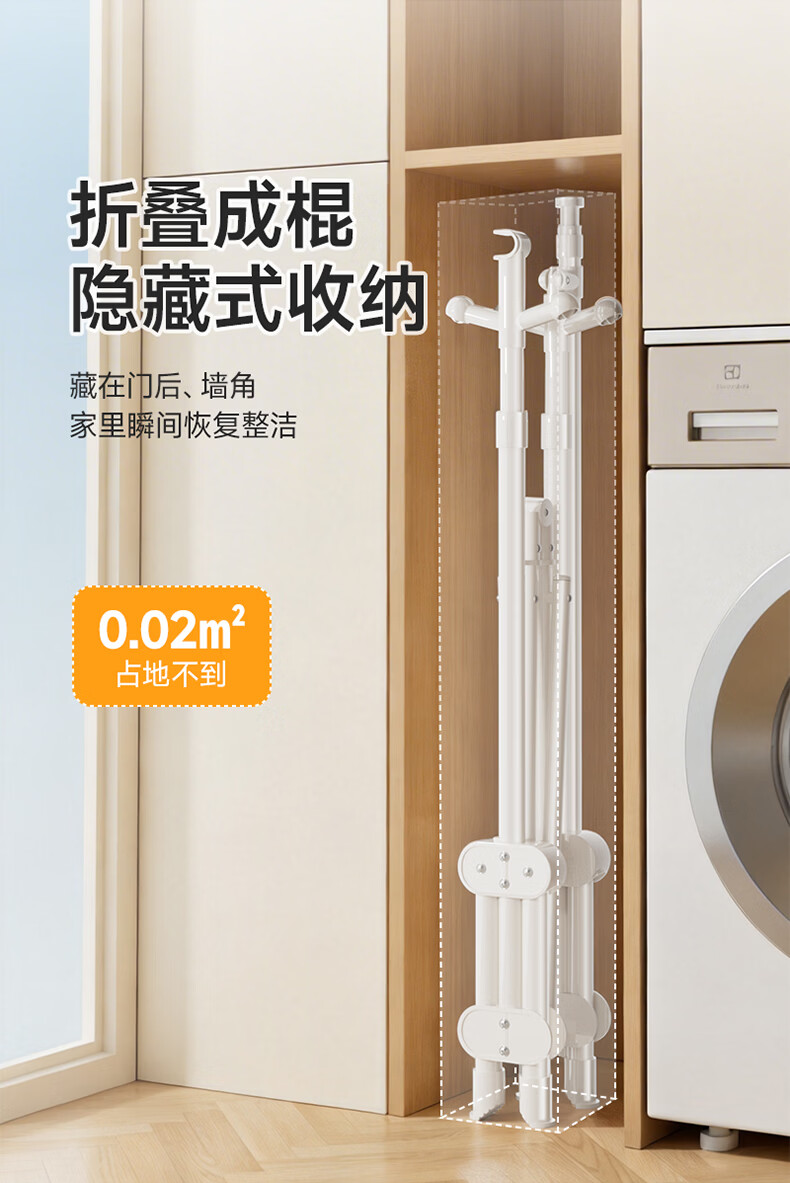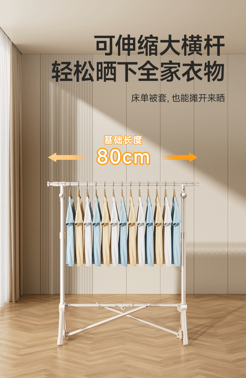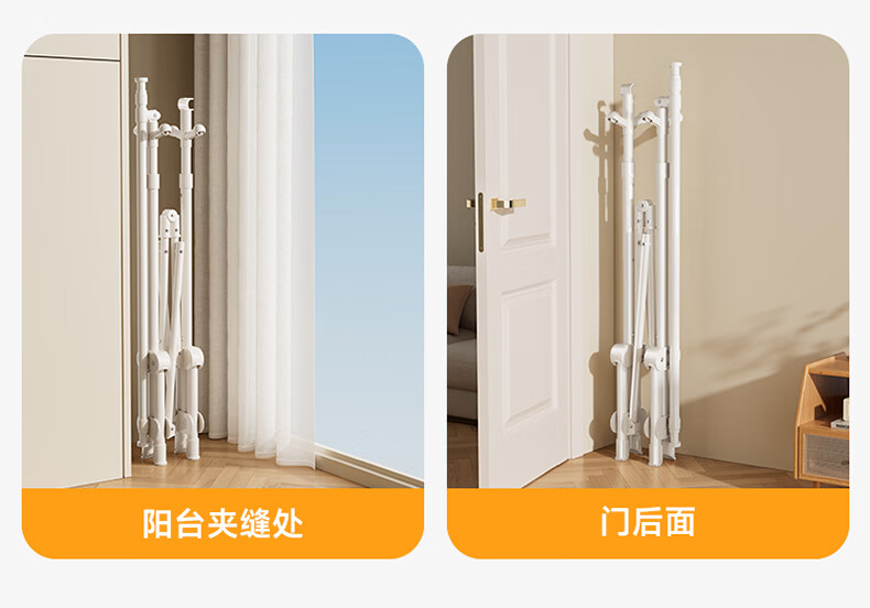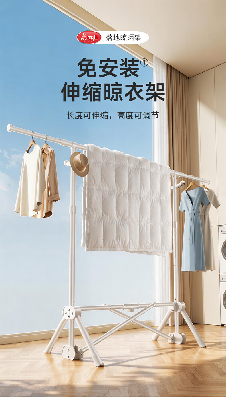 美丽雅晾衣架折叠落地免安装伸缩晾衣杆室内阳台立式小户型挂衣架1.4米