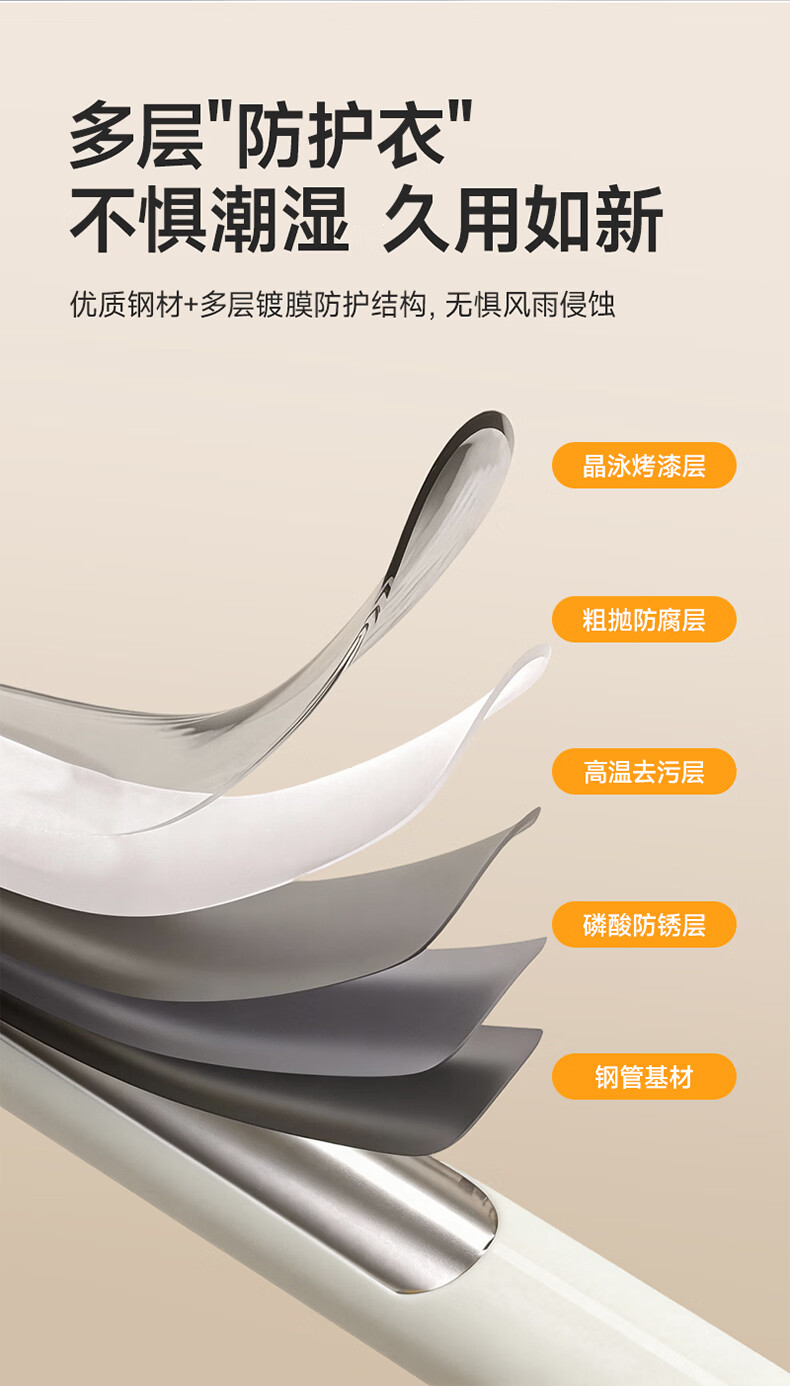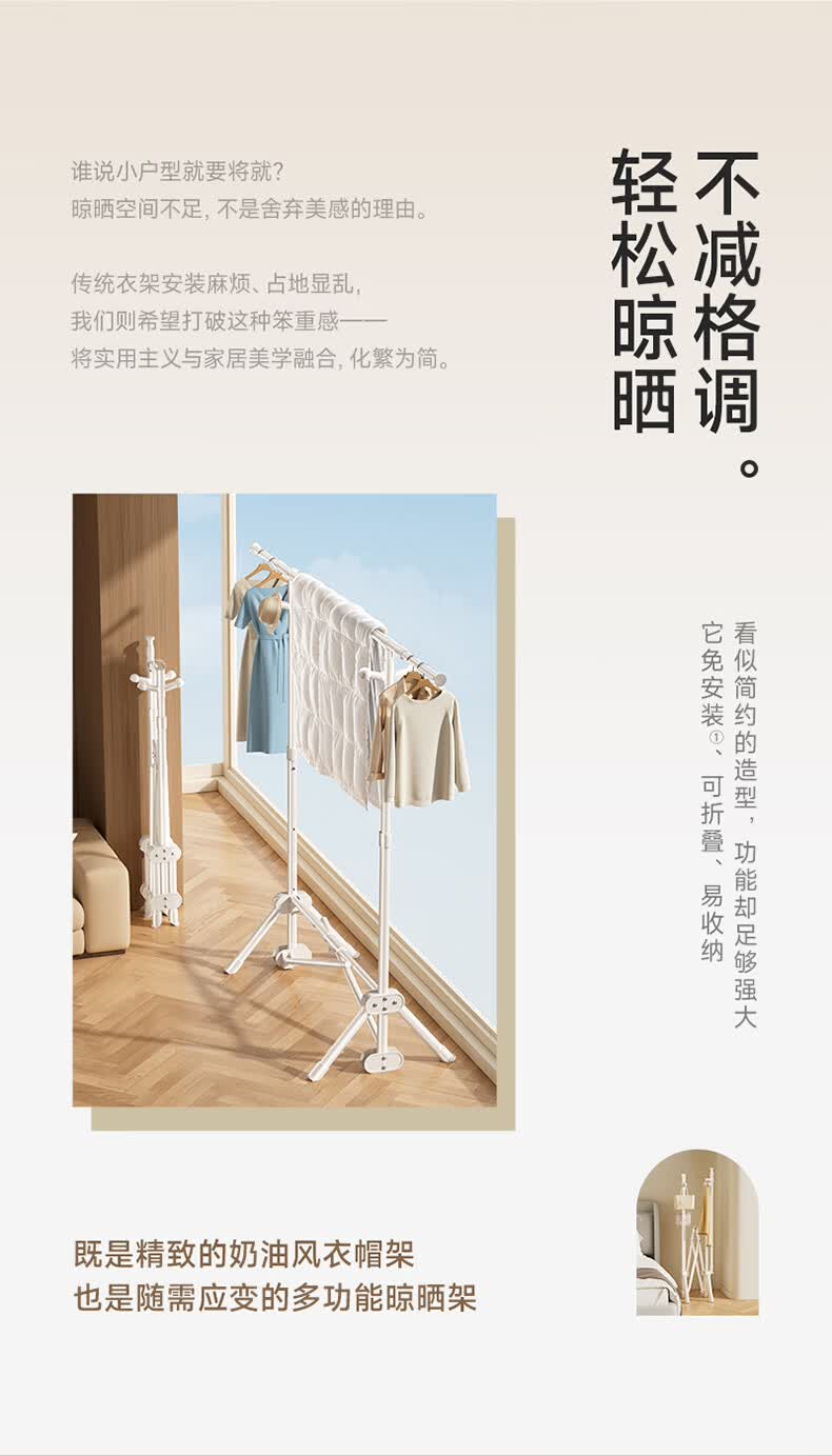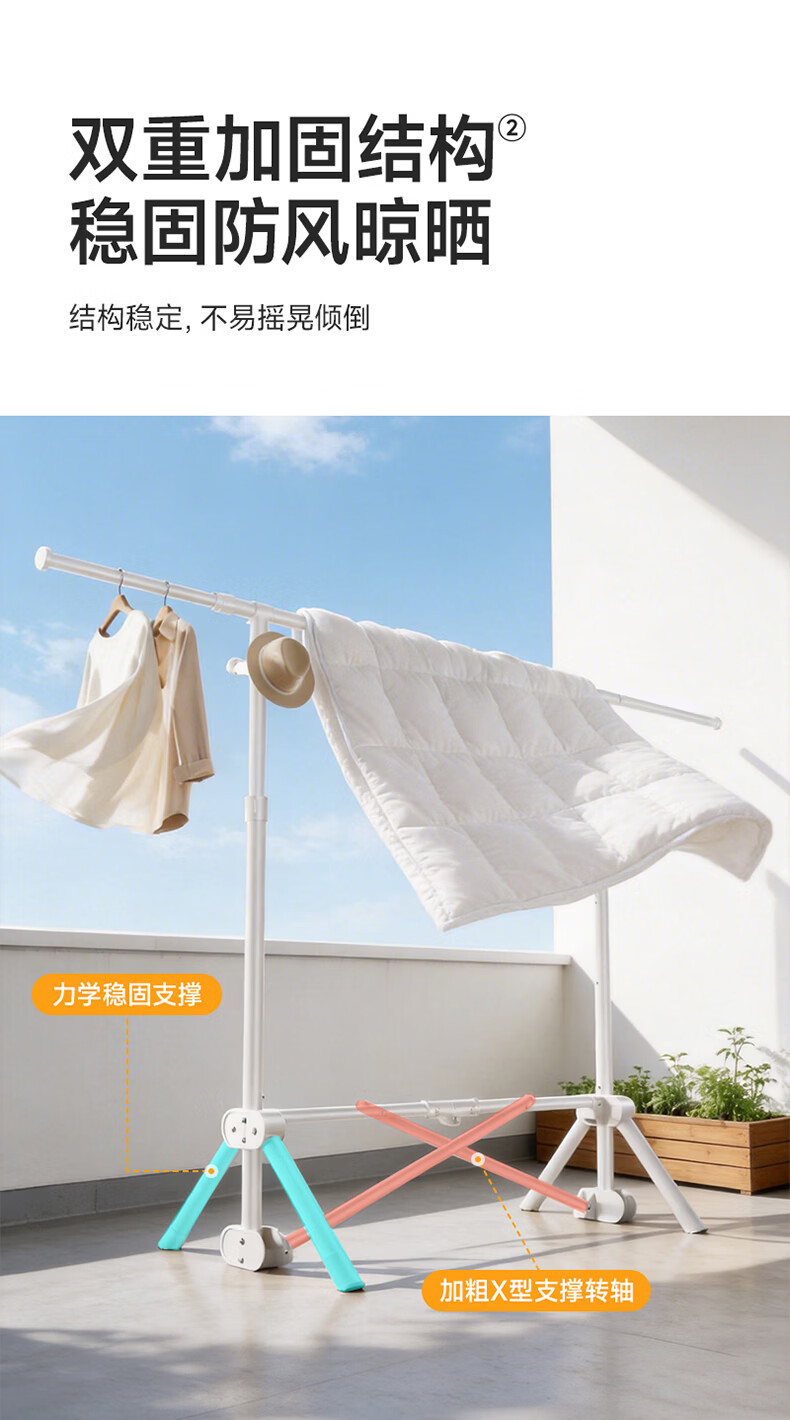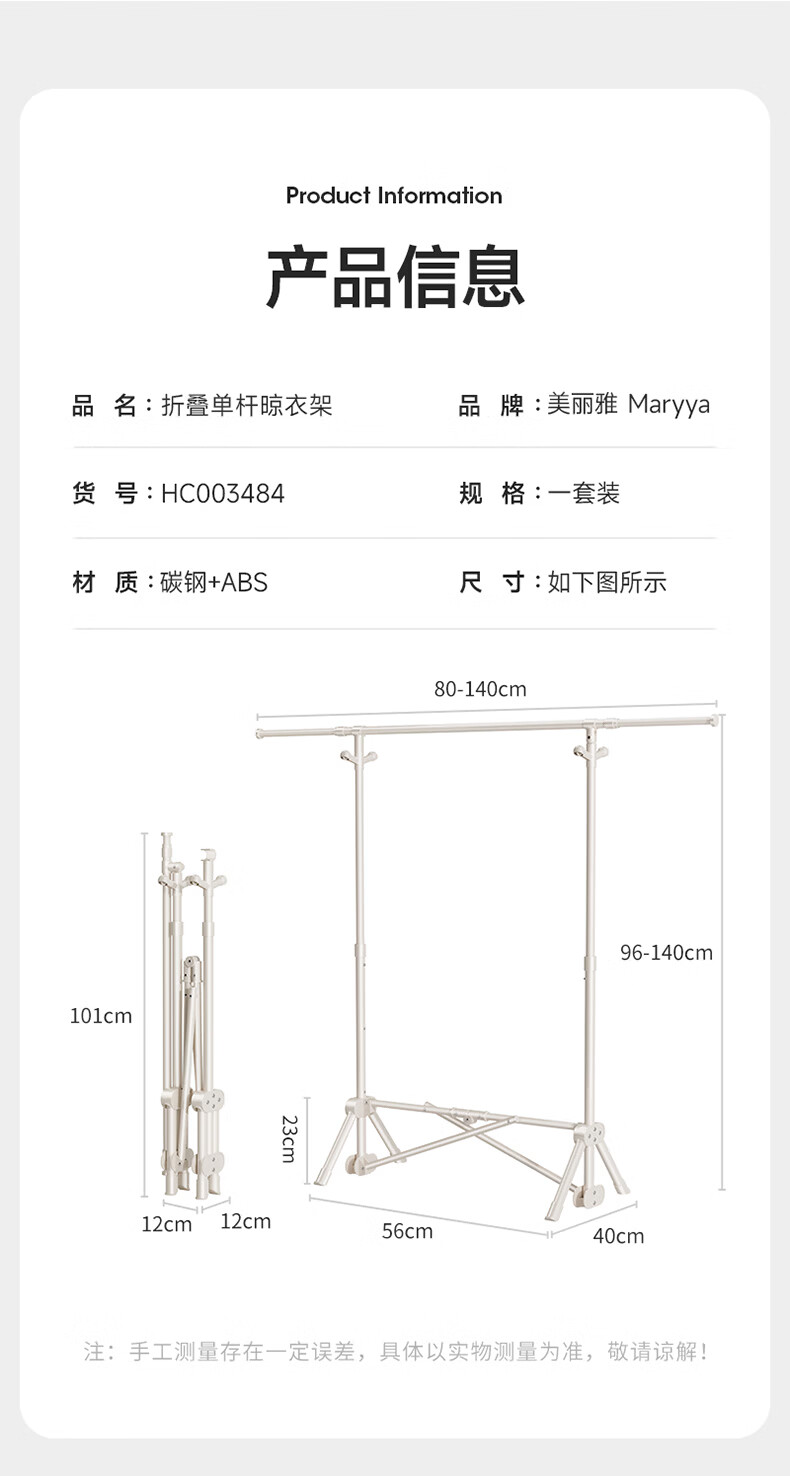 美丽雅晾衣架折叠落地免安装伸缩晾衣杆室内阳台立式小户型挂衣架1.4米