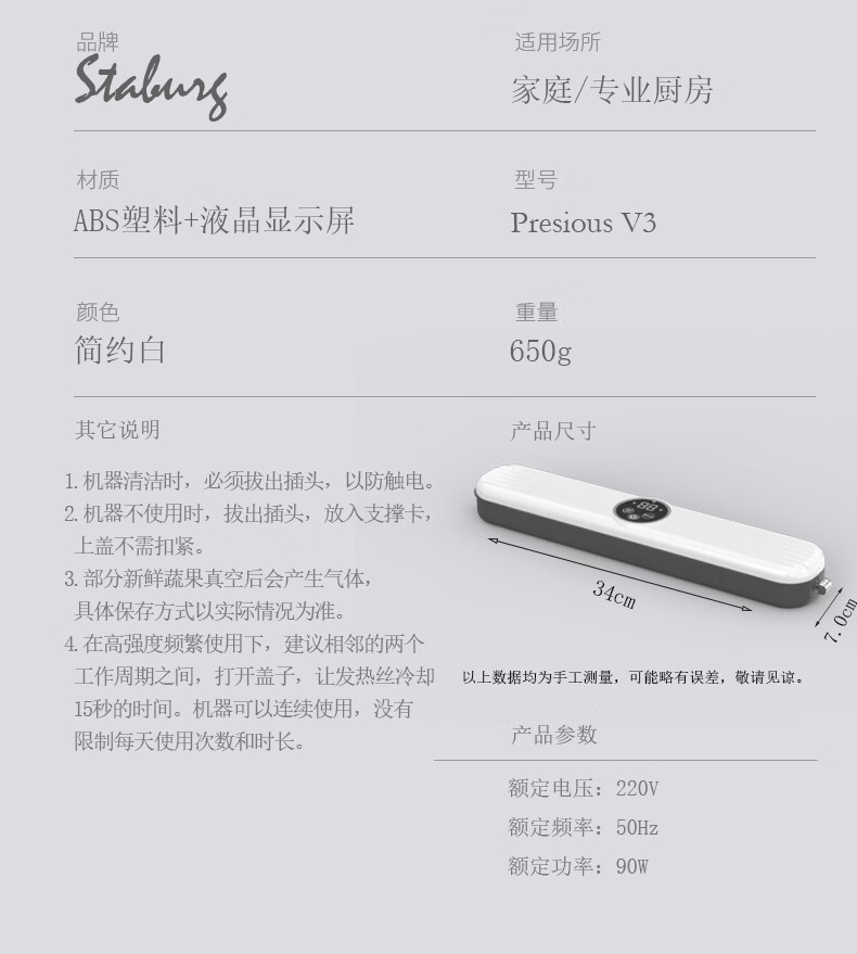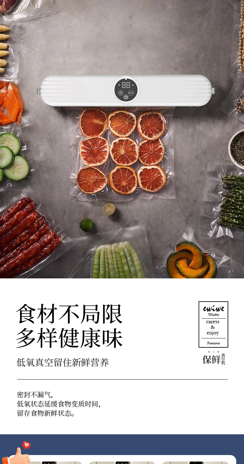 STABURG真空封口机干湿两用食品保鲜包装机家用小型自动抽空真空密封神器 智能大屏/高效密封/不漏气/送10只真空袋