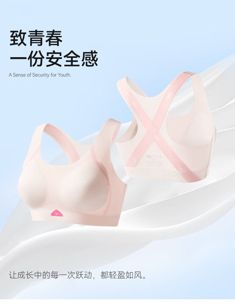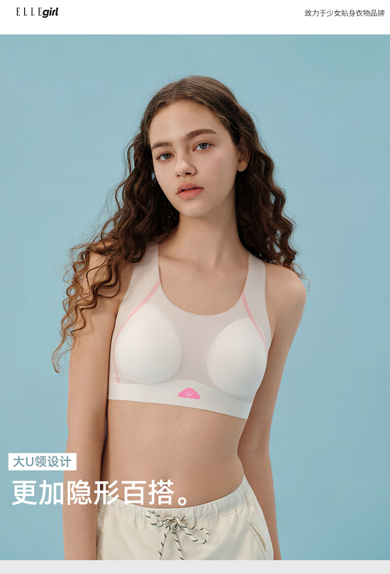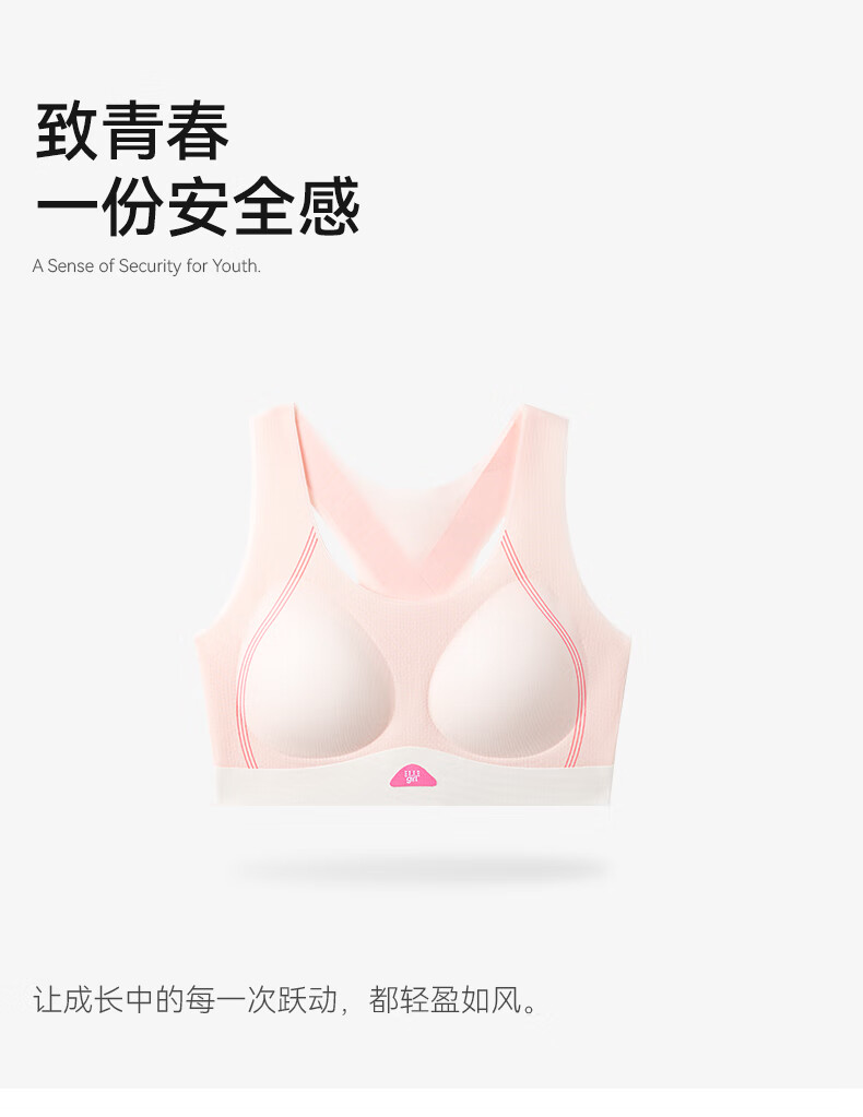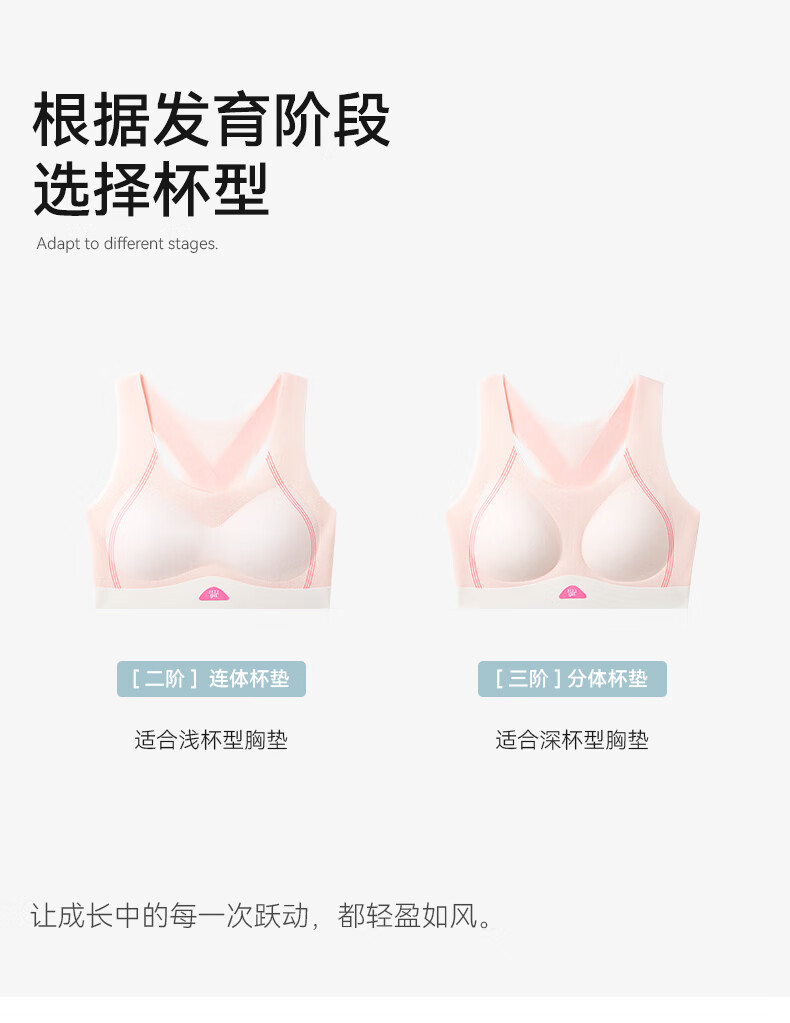 ELLE girl少女文胸青少年发育期三阶段内衣初中高中学生运动背心女两件装 2件超值装|三阶段|云朵白+樱花粉 L 体重:80-100斤