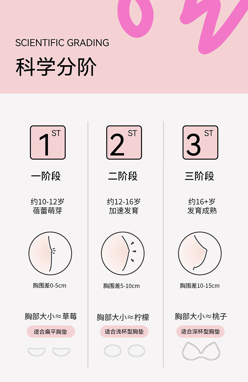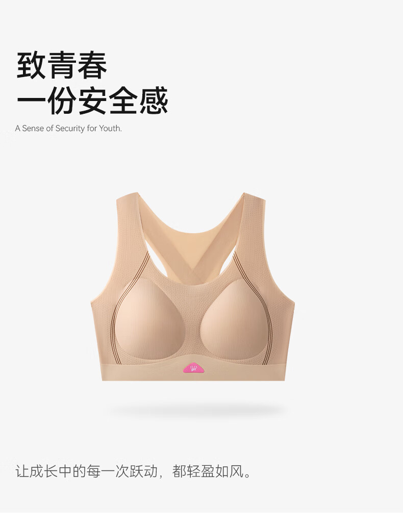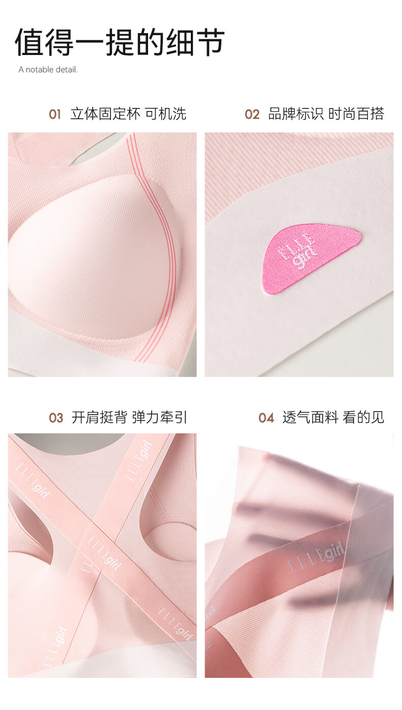 ELLE girl少女文胸青少年发育期三阶段内衣初中高中学生运动背心女两件装 2件超值装|三阶段|云朵白+樱花粉 L 体重:80-100斤