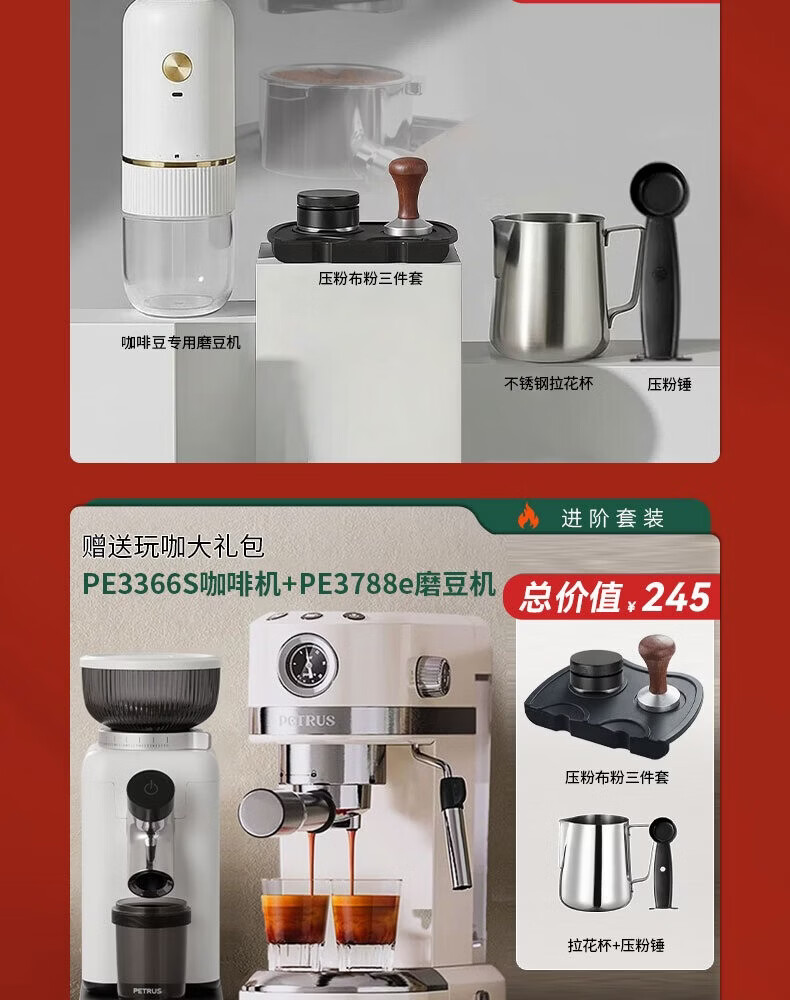 柏翠petrus咖啡机3366小白醒醒Pro升级款意式半自动全自动小型家用办公使用送礼礼物 PE3366S 小白醒醒pro升级款PE3366S+PE3788e
