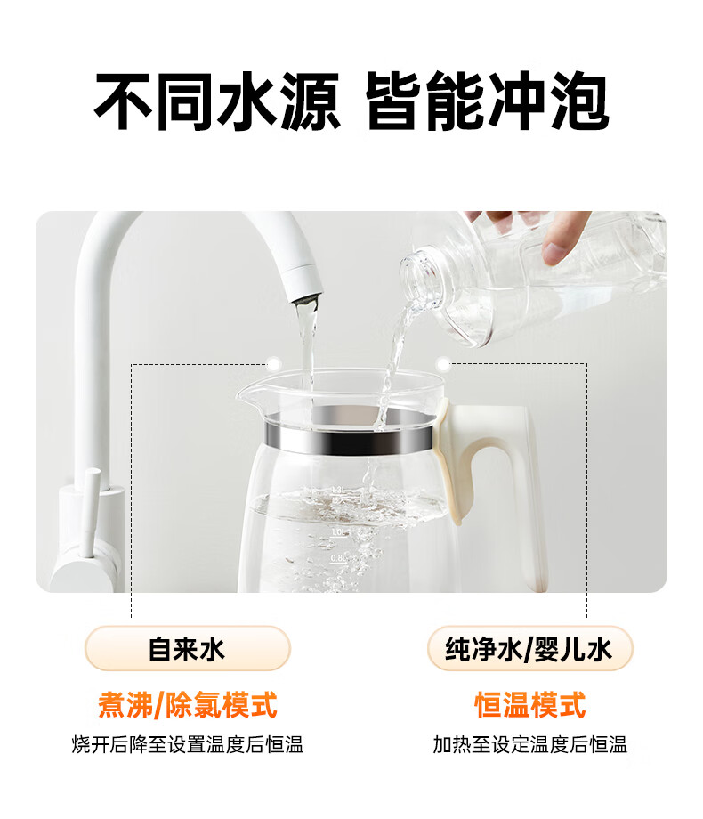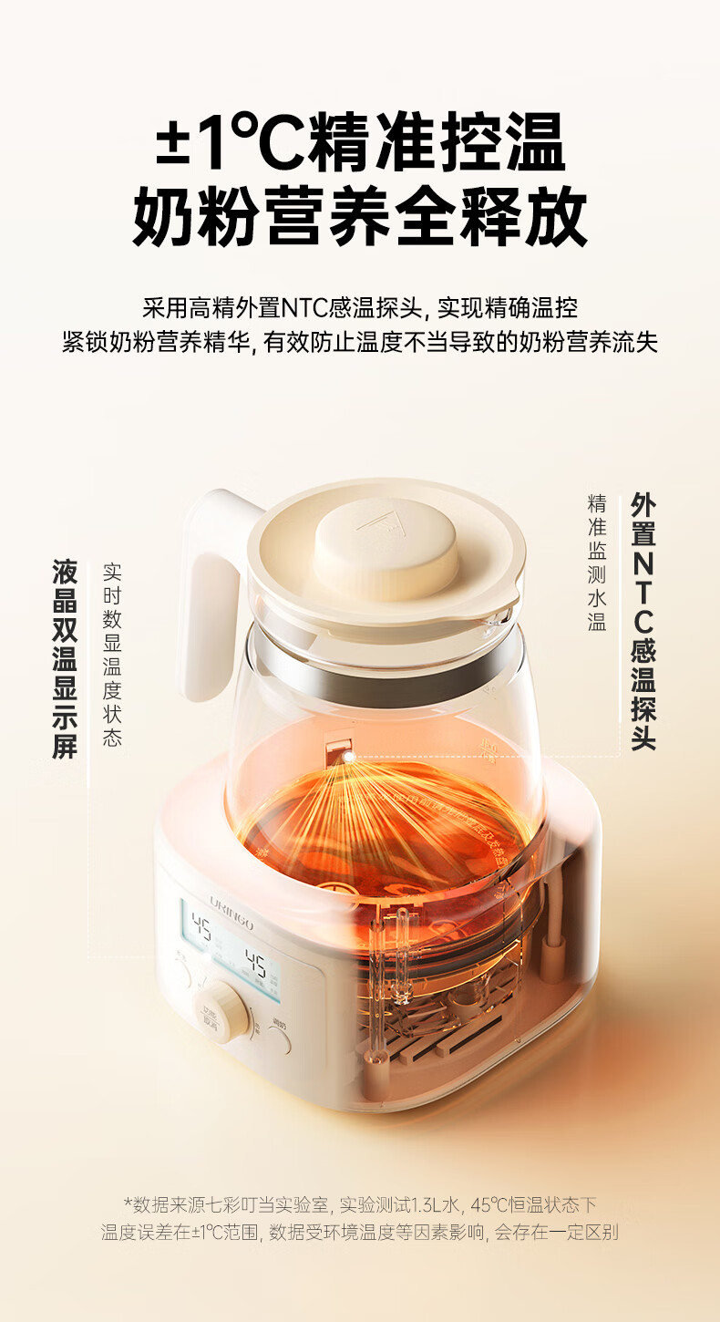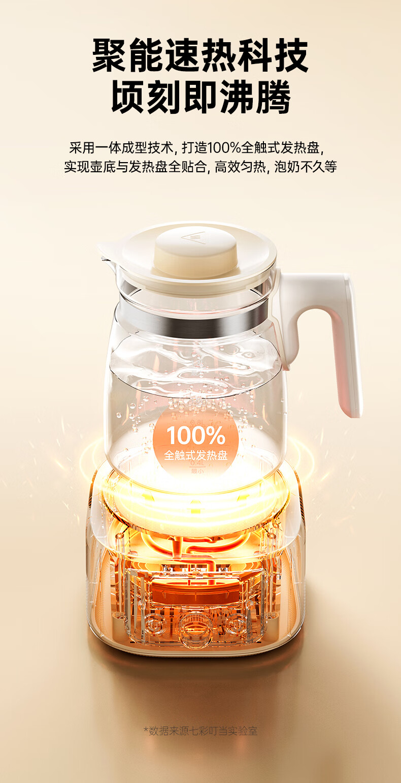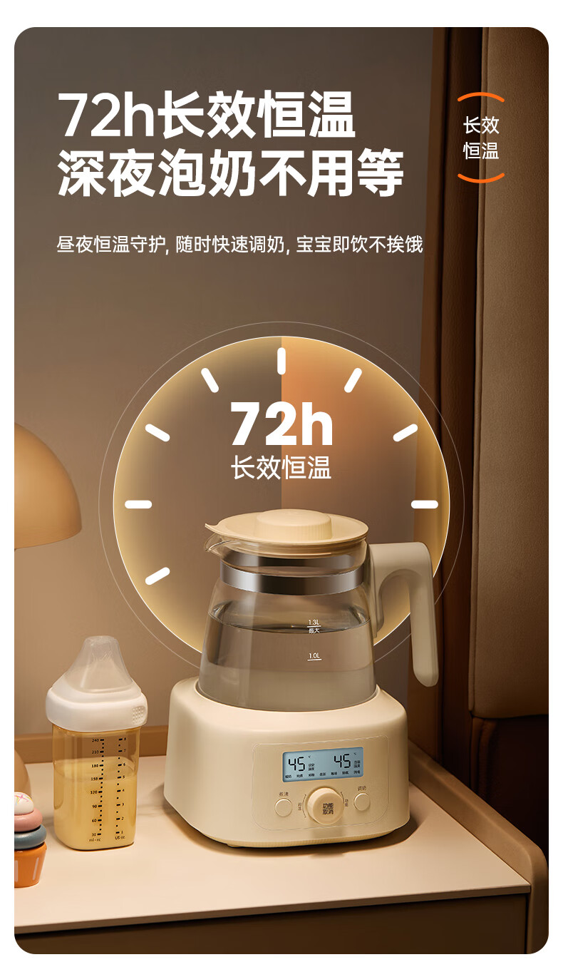 七彩叮当全玻璃恒温热水壶婴儿专用智能冲泡奶家用烧水壶暖奶器调奶器 皓月白 1.3L