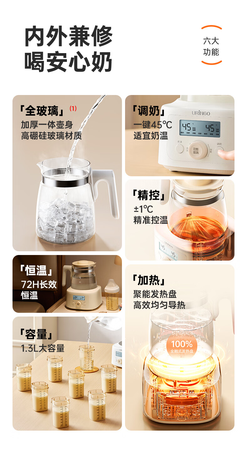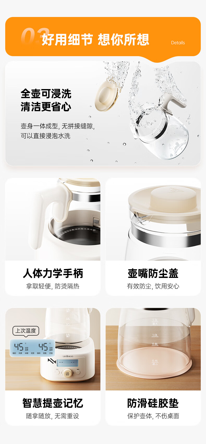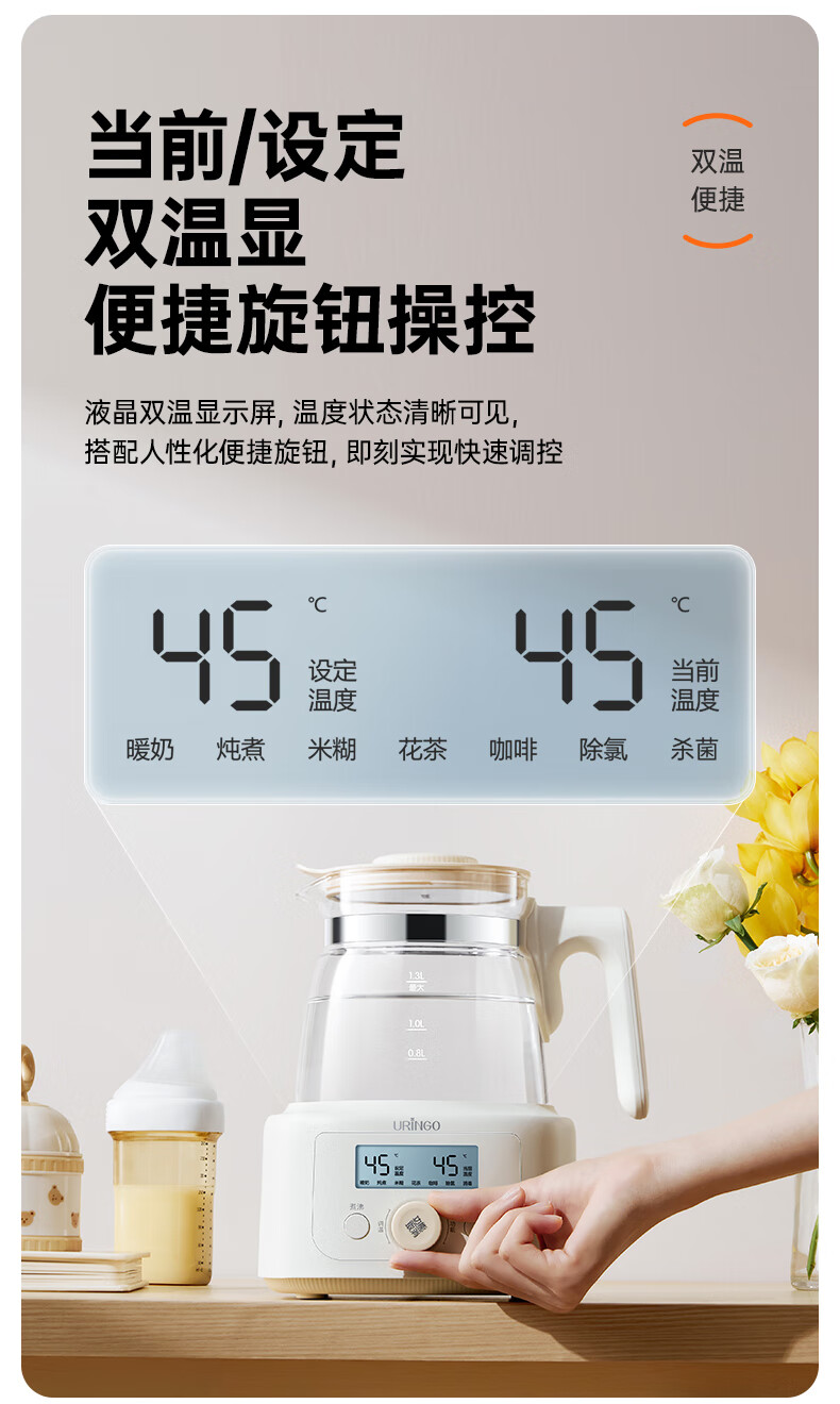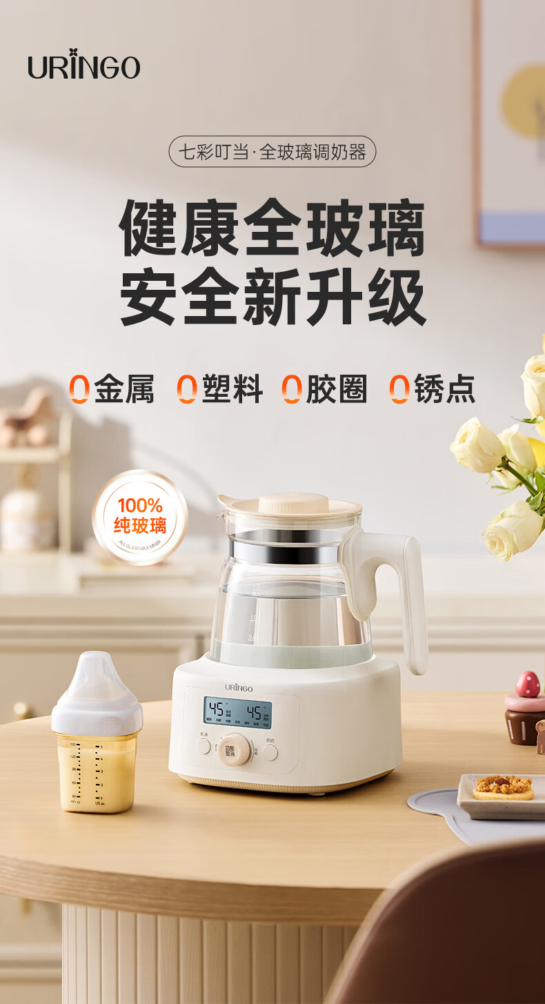 七彩叮当全玻璃恒温热水壶婴儿专用智能冲泡奶家用烧水壶暖奶器调奶器 皓月白 1.3L