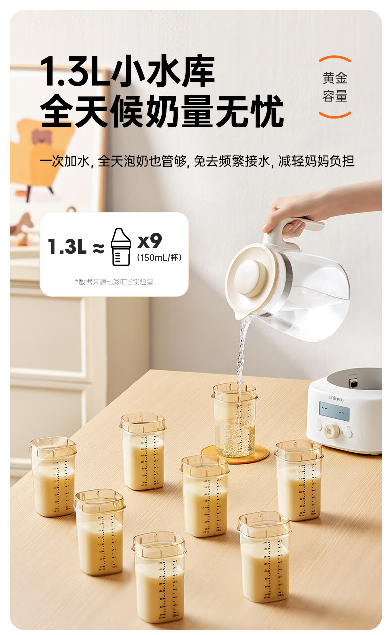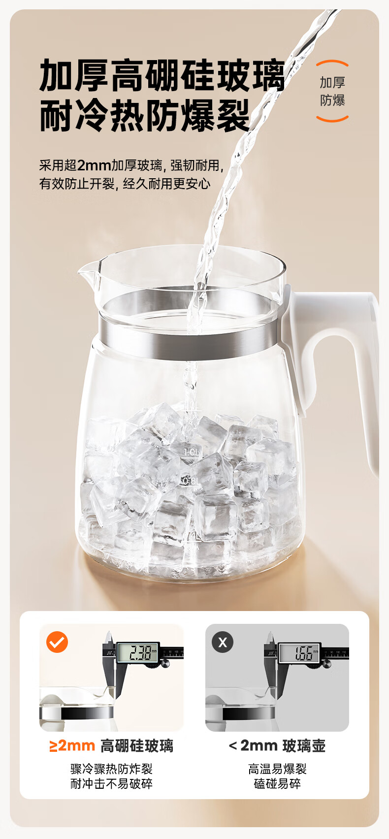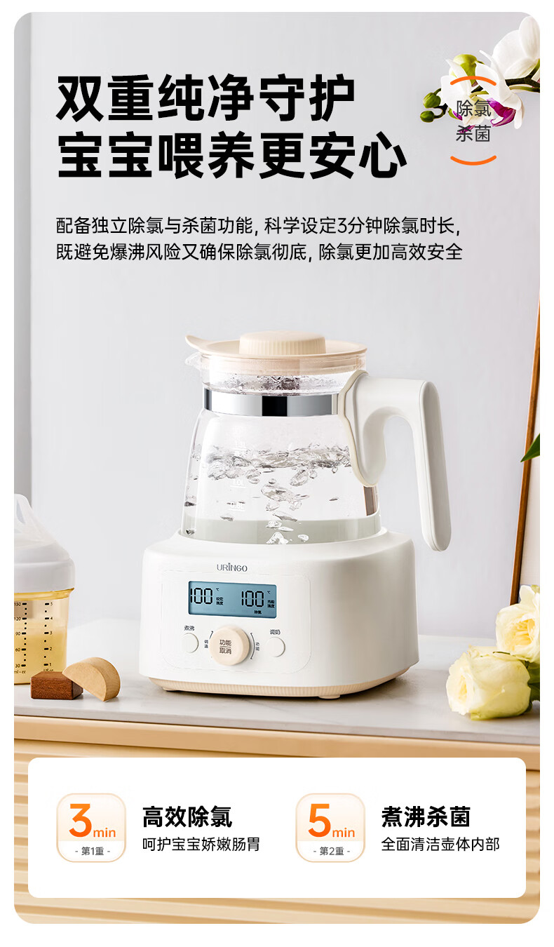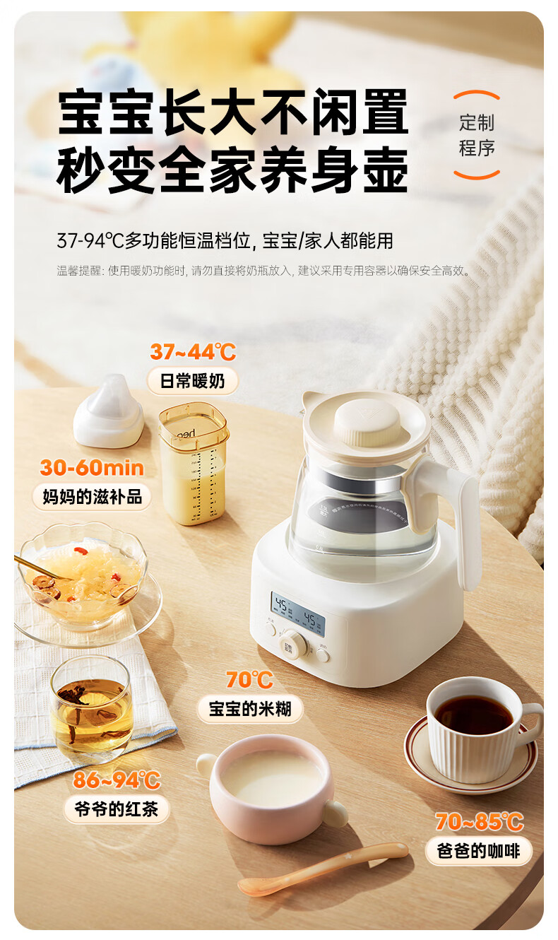 七彩叮当全玻璃恒温热水壶婴儿专用智能冲泡奶家用烧水壶暖奶器调奶器 皓月白 1.3L