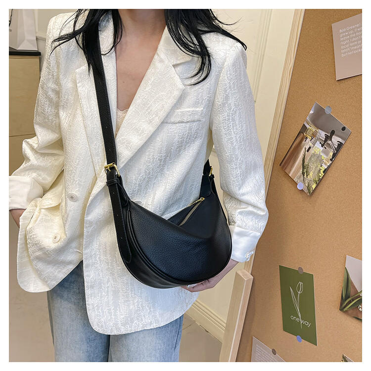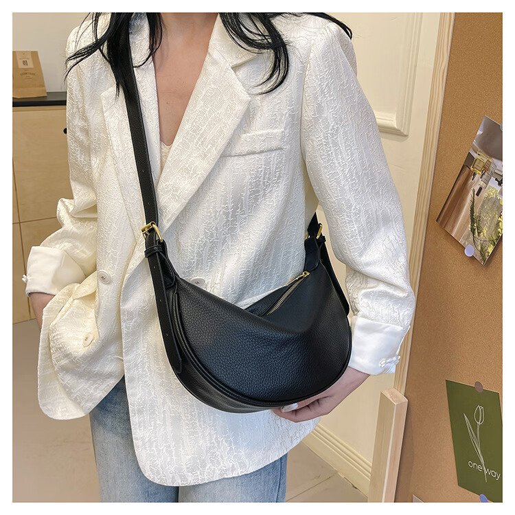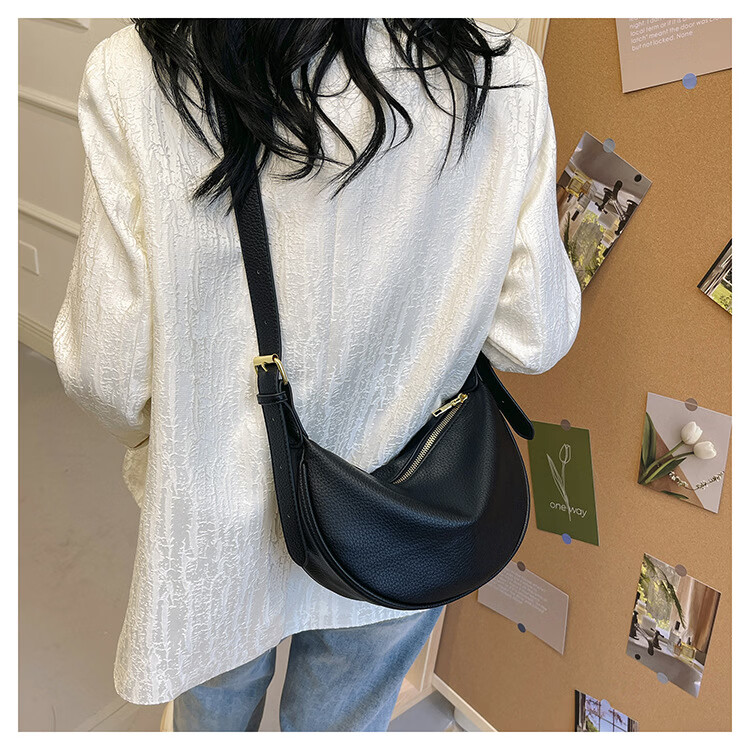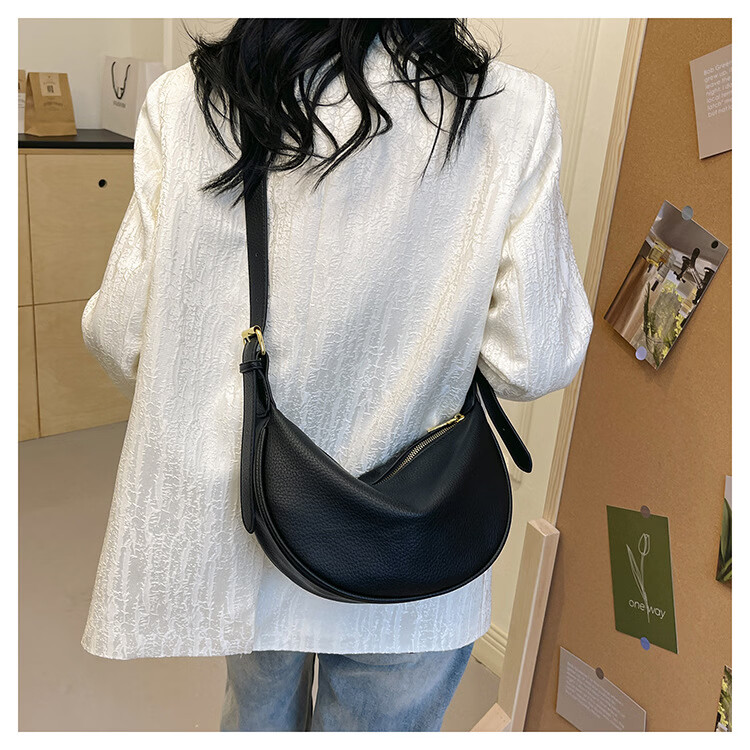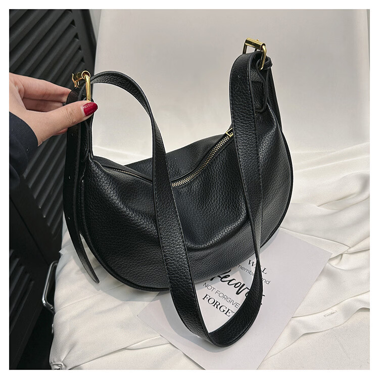 【厂家直供】软皮大容量腋下包包女2025新款休闲百搭单肩斜挎包复 黑色
