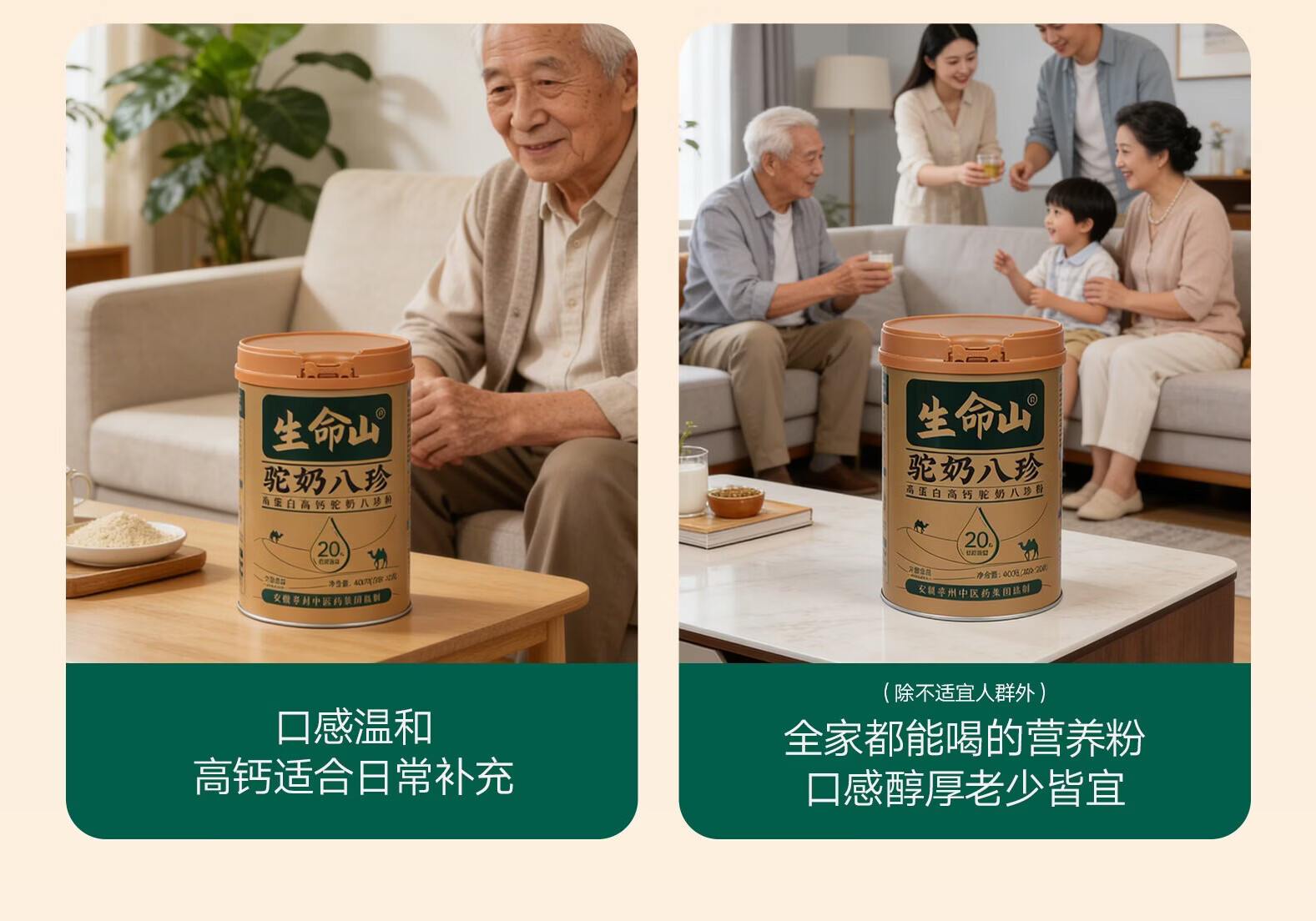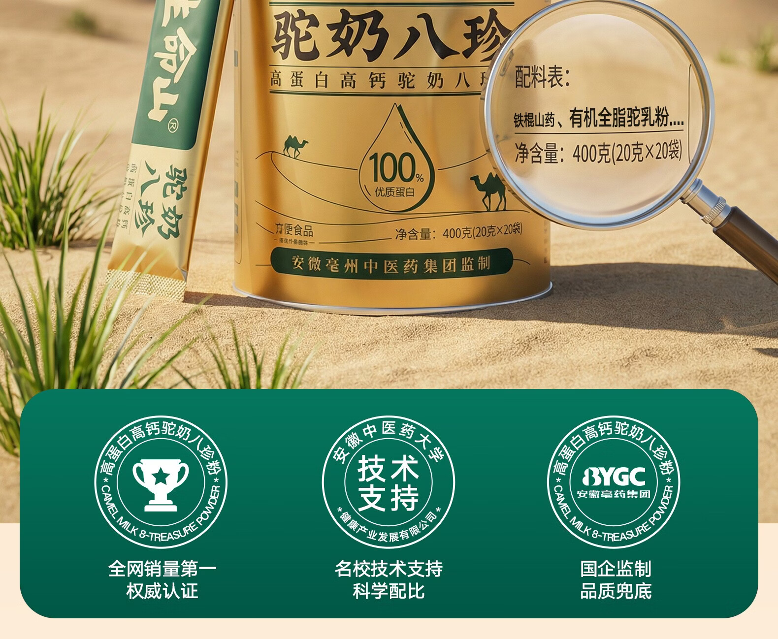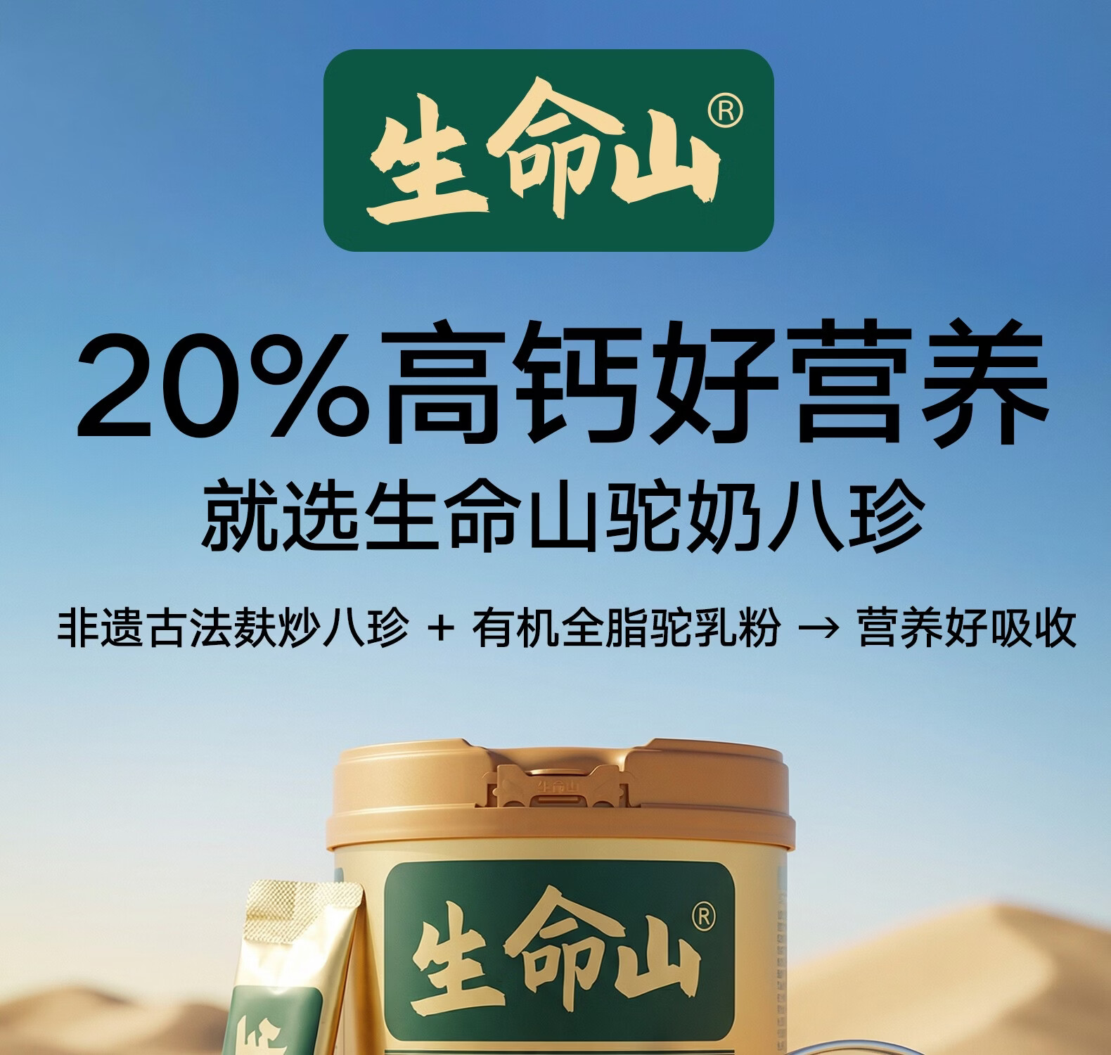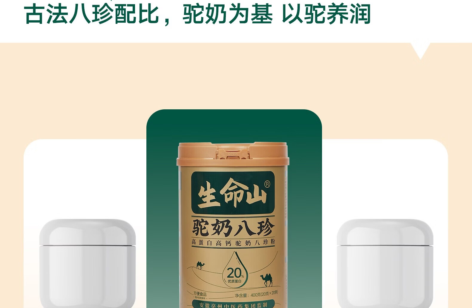 生命山【复合营养粉】生命山驼奶八珍粉新疆正品3罐1200g无蔗糖奶粉年礼 【囤货周期装】 400g*3罐 +试吃条*2
