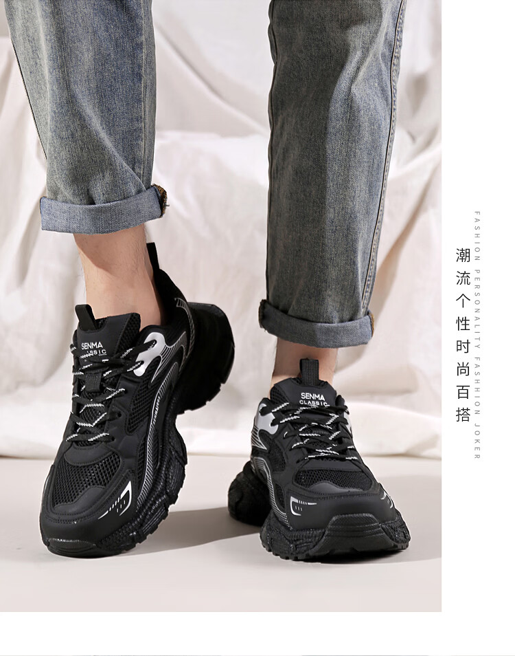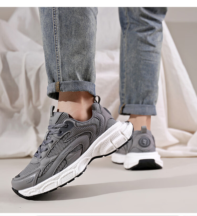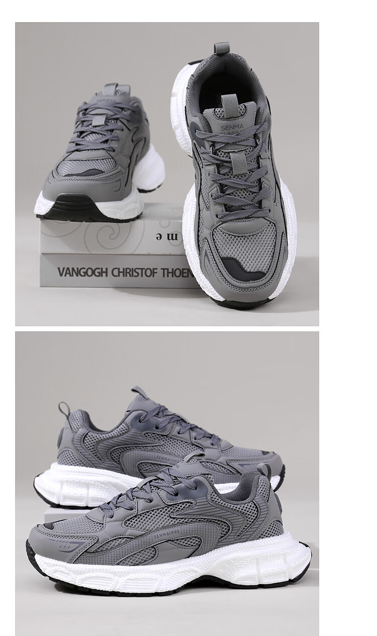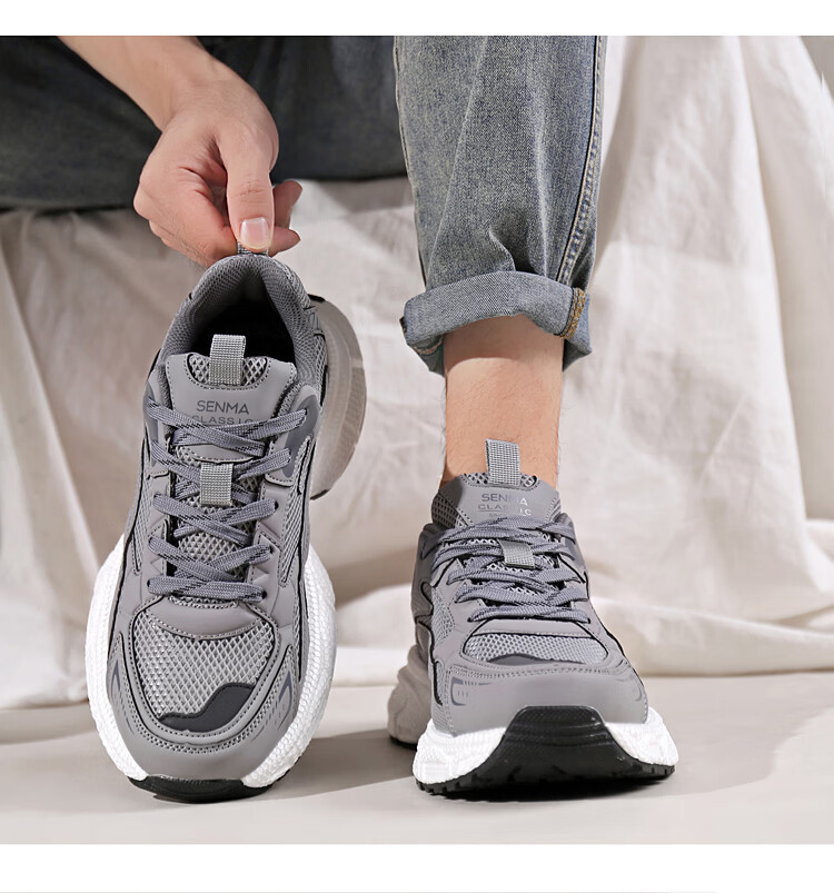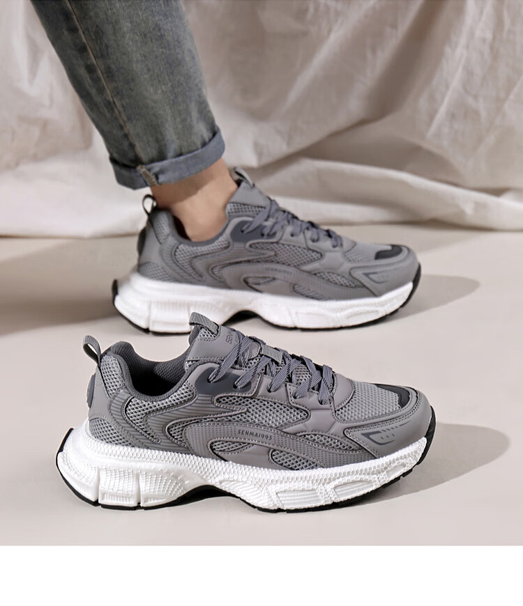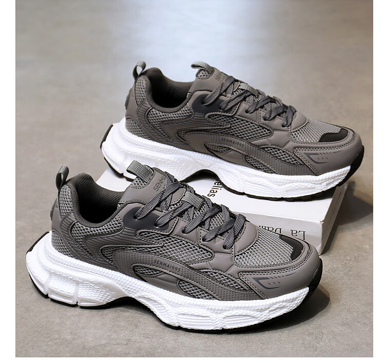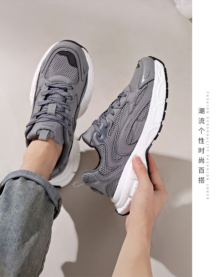 森馬(senma)森马透气网面跑步鞋情侣款老爹鞋轻便厚底运动鞋男士旅游鞋休闲鞋 深灰色 40