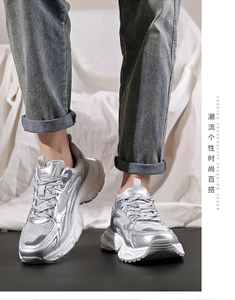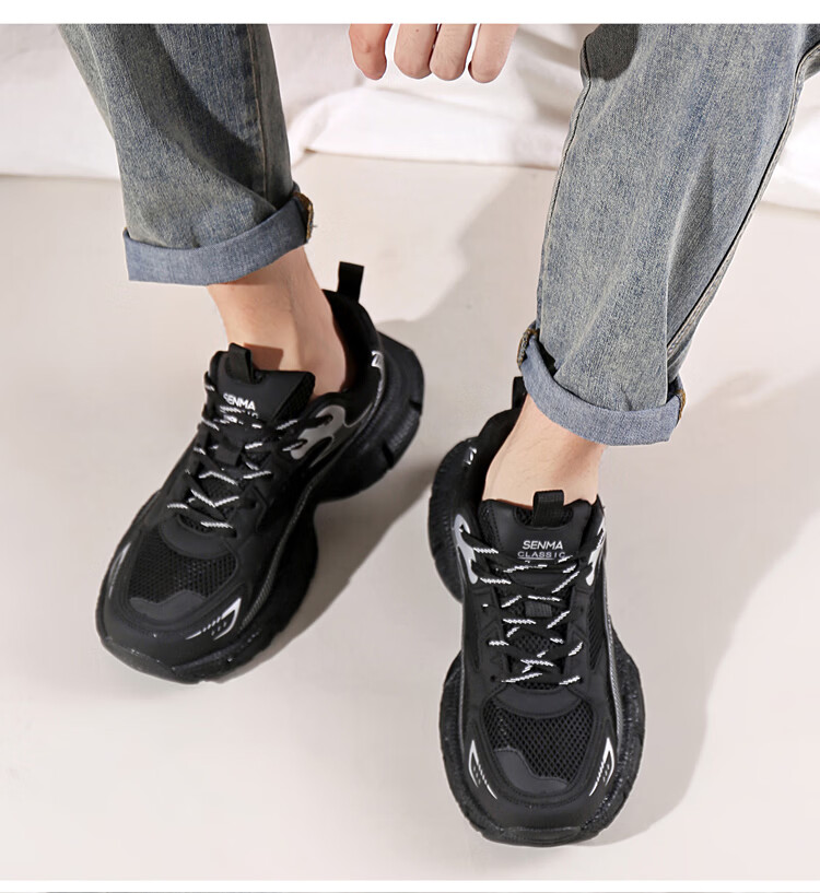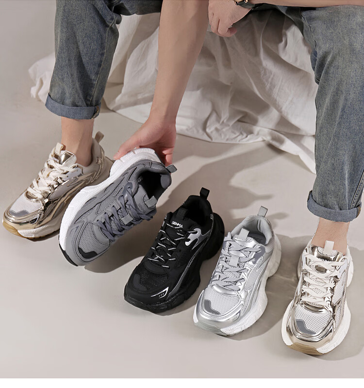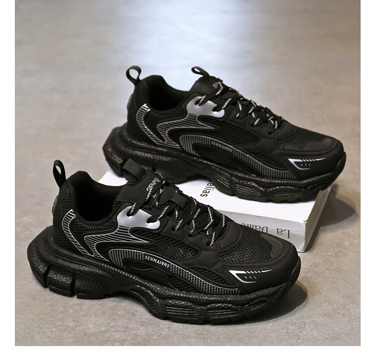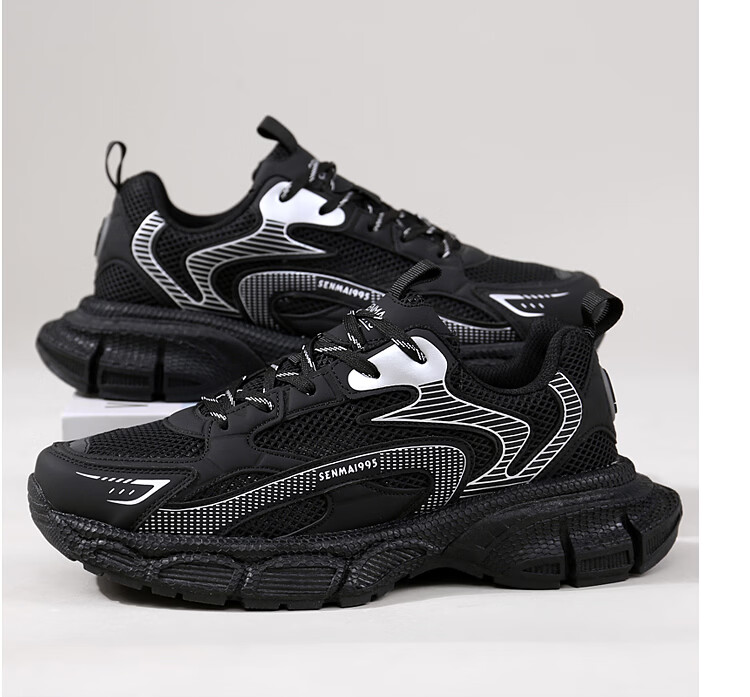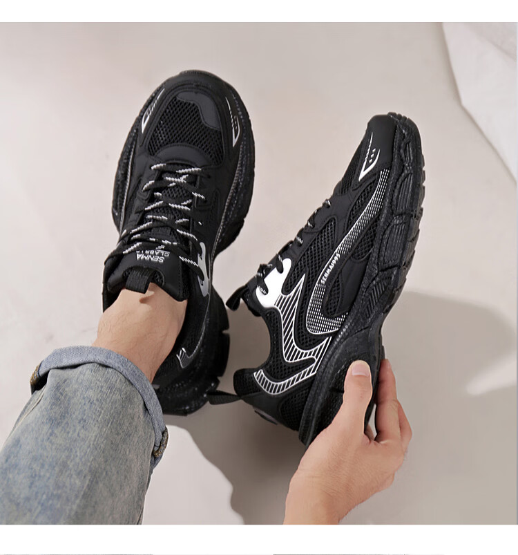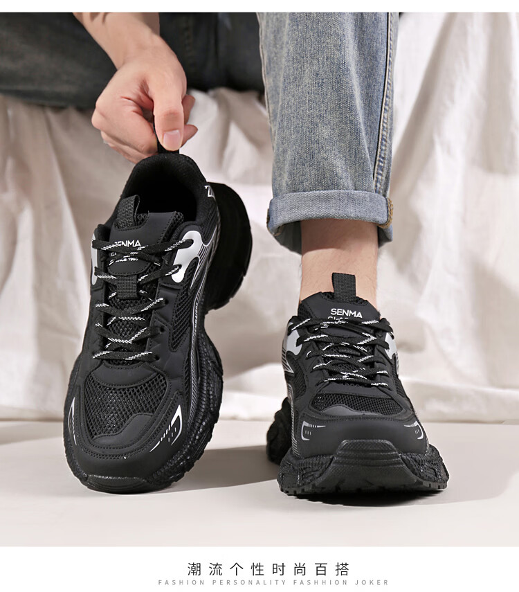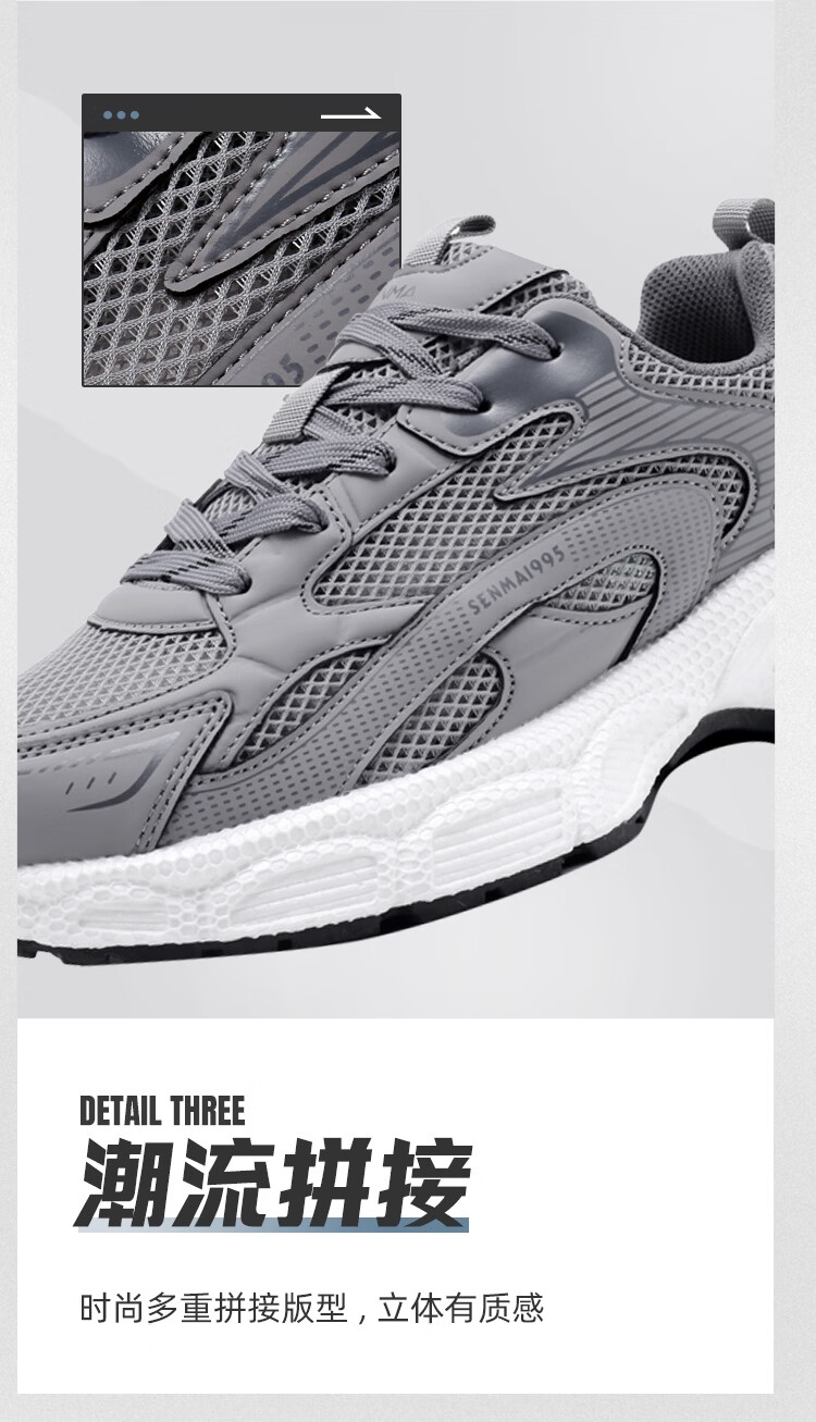 森馬(senma)森马透气网面跑步鞋情侣款老爹鞋轻便厚底运动鞋男士旅游鞋休闲鞋 深灰色 40