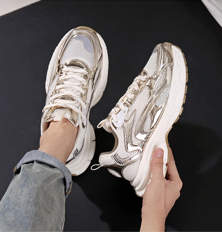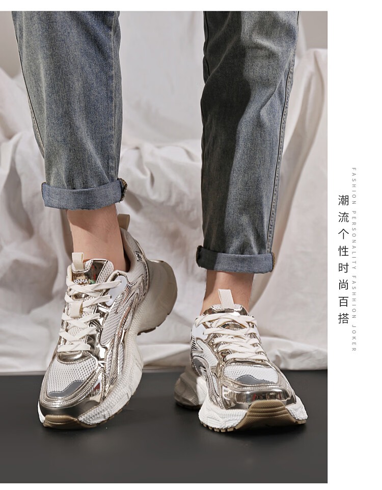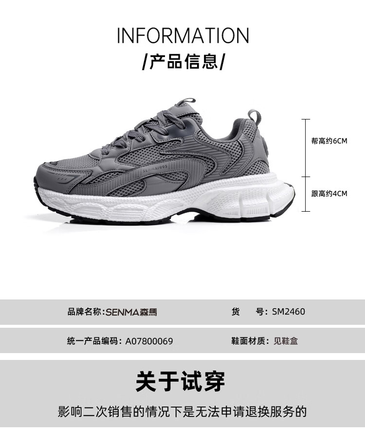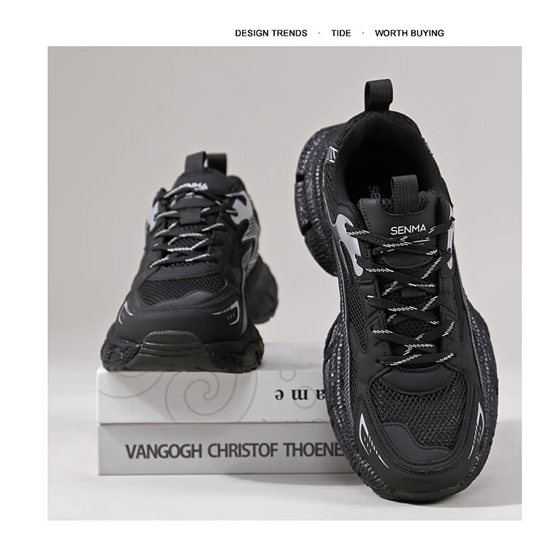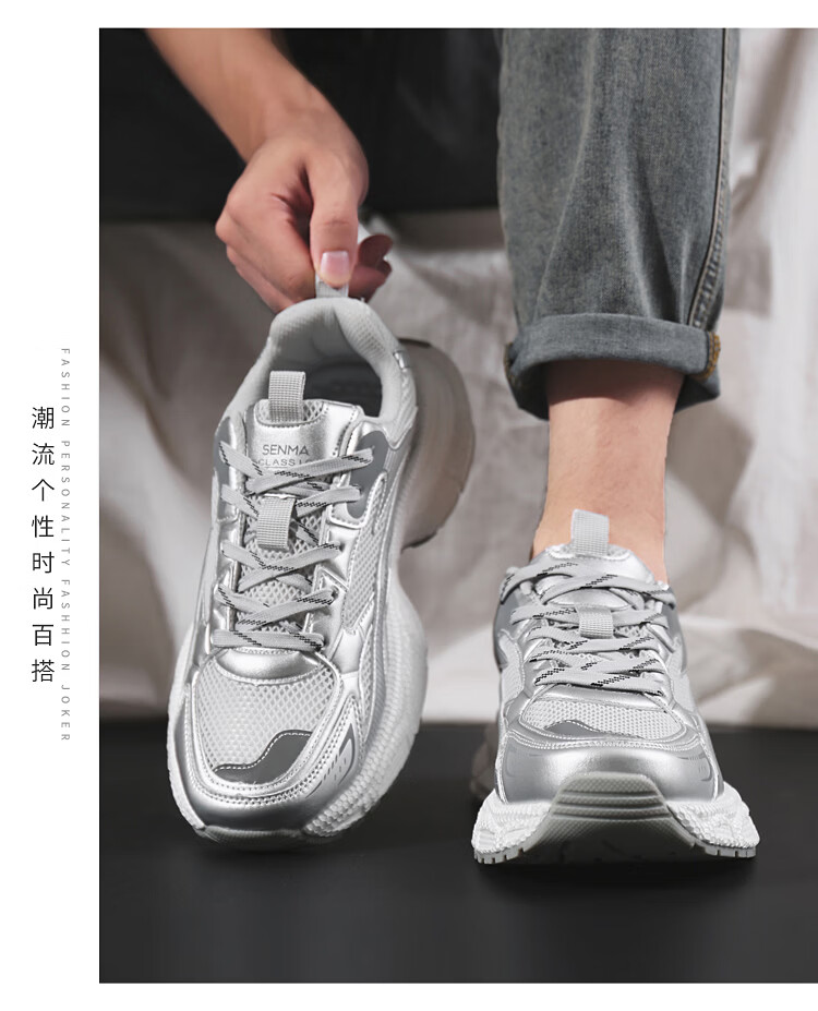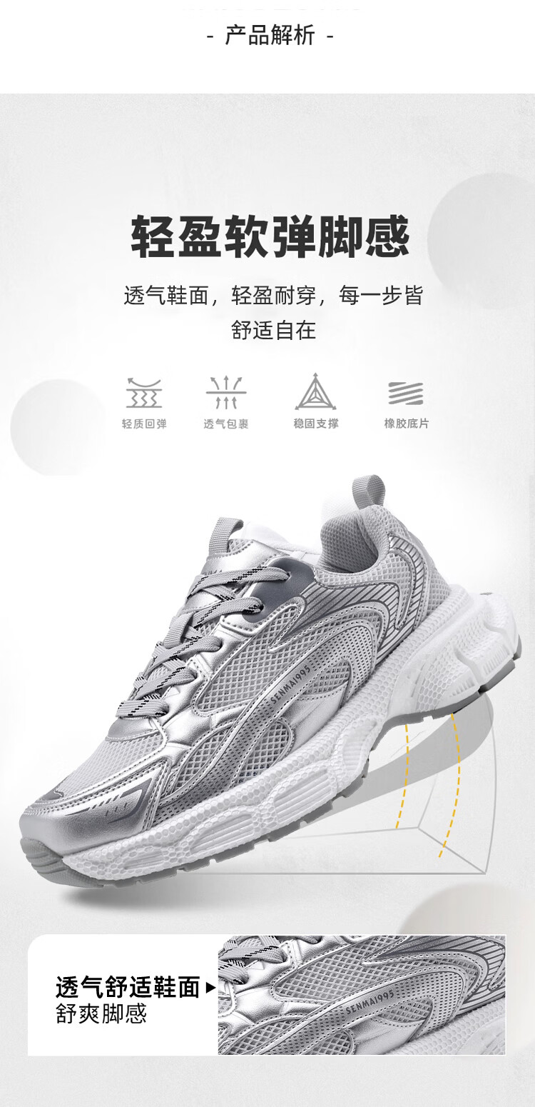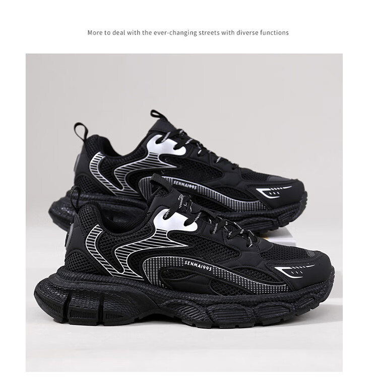 森馬(senma)森马透气网面跑步鞋情侣款老爹鞋轻便厚底运动鞋男士旅游鞋休闲鞋 深灰色 40