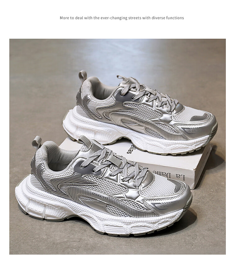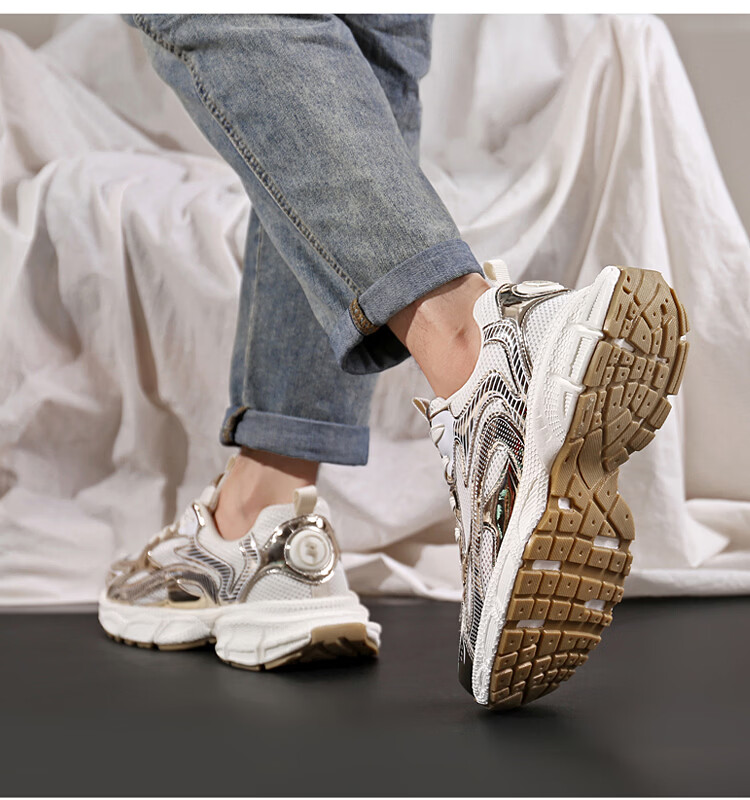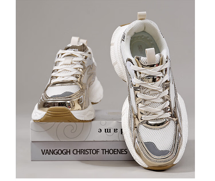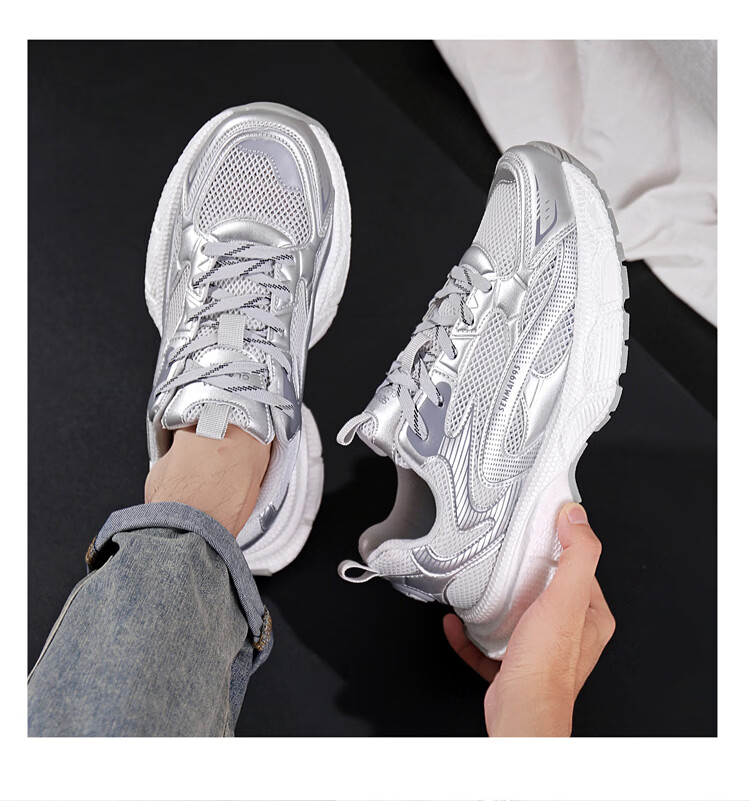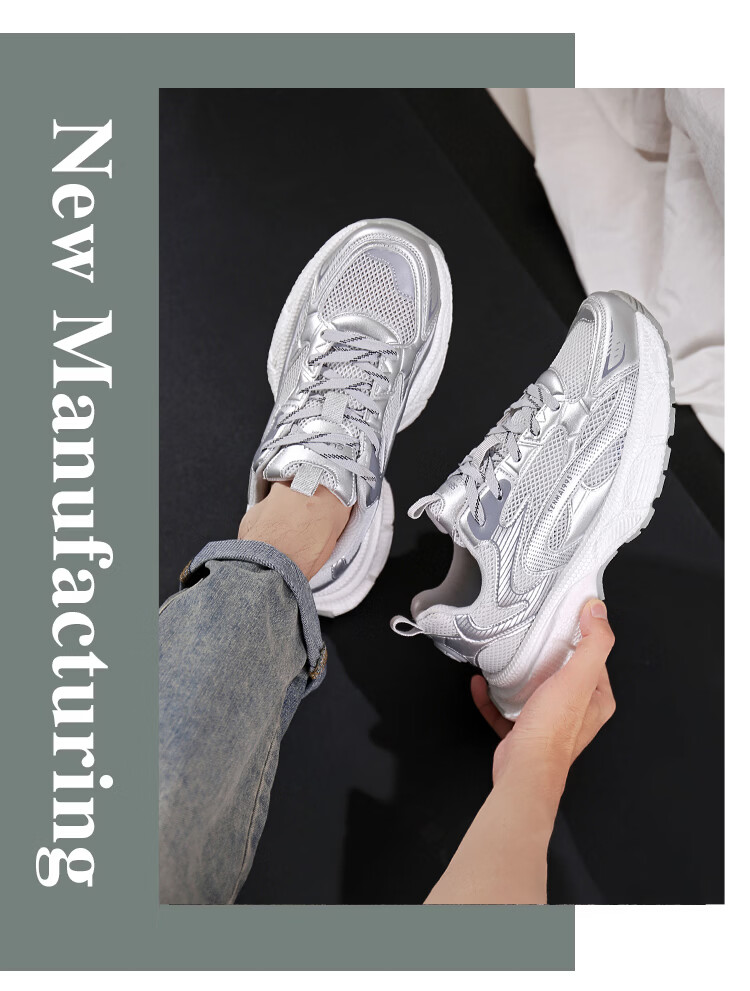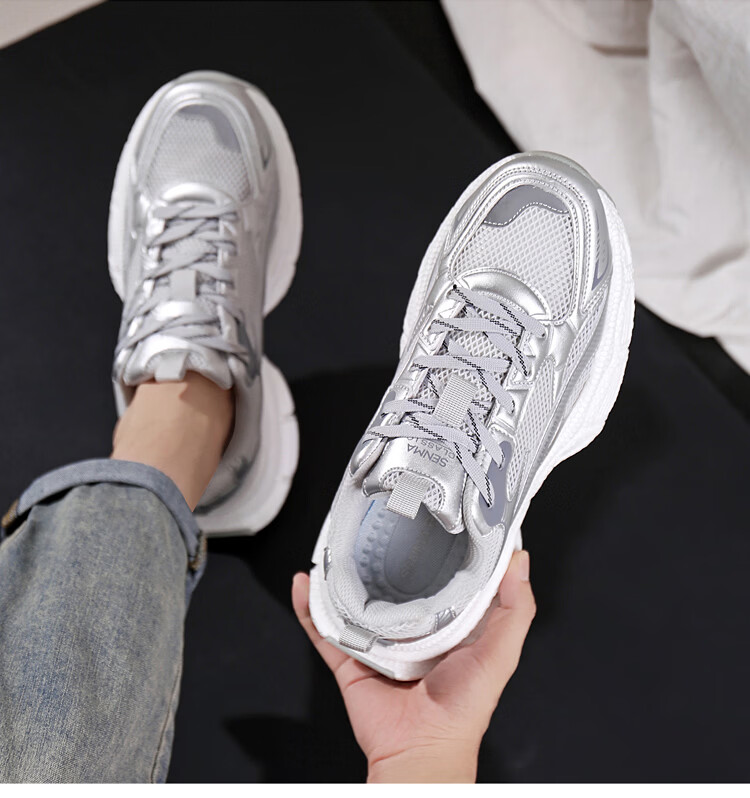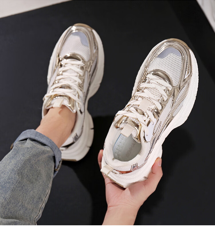 鸿星品牌断码清仓真皮运动鞋女春秋季2026新款透气网面跑步鞋休闲老爹鞋 白黑8901(皮面款) 40