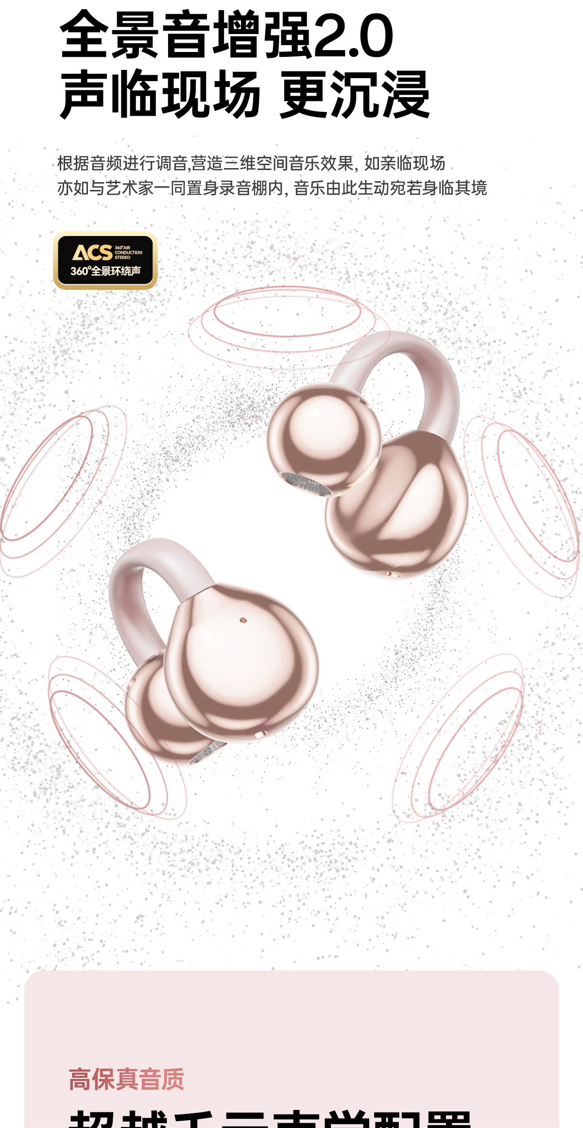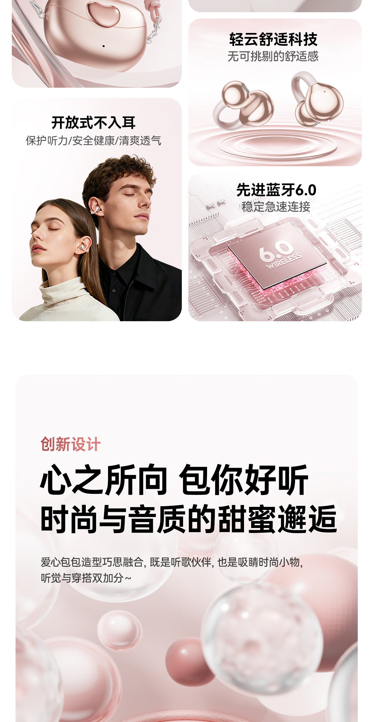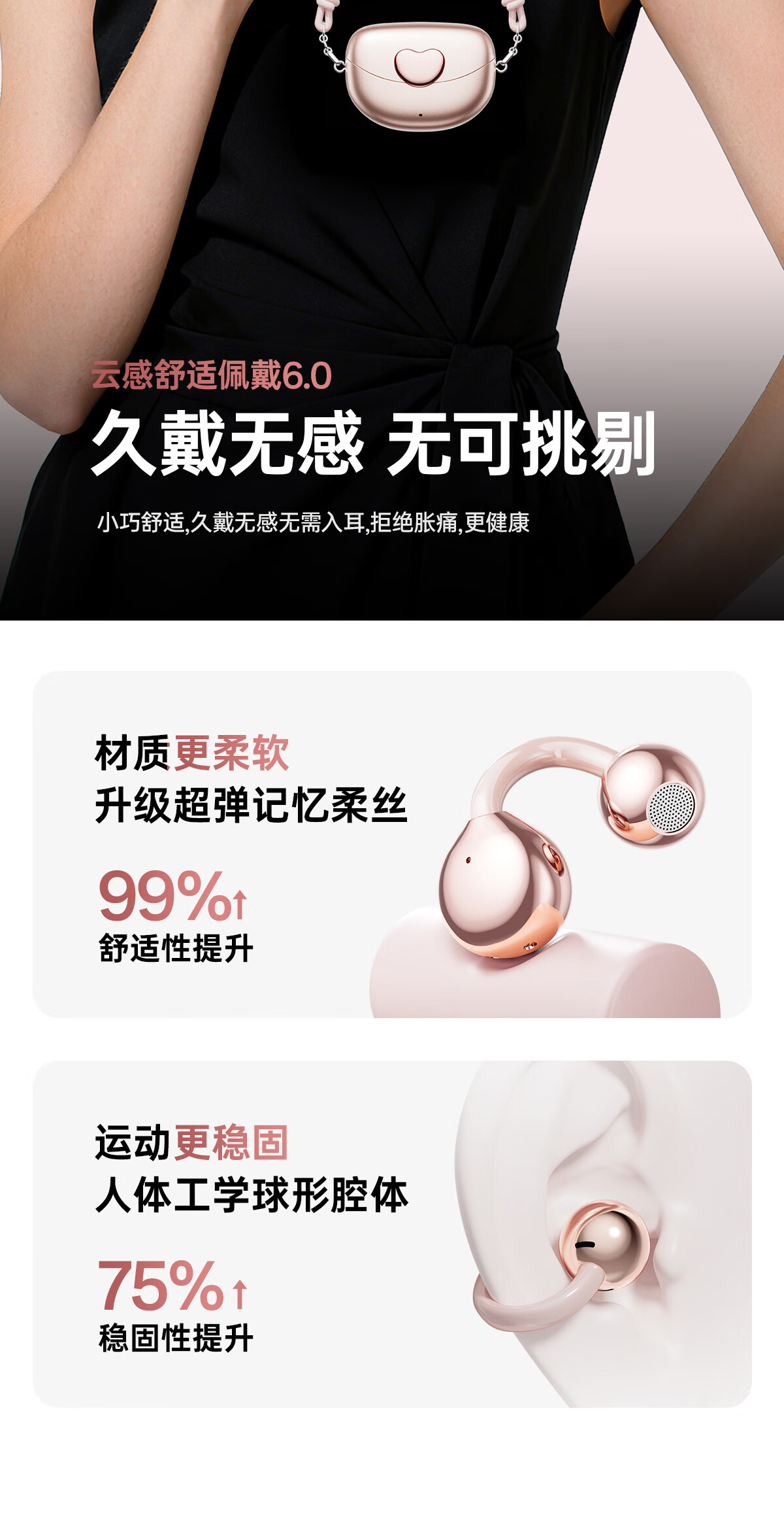 柏耕鸟运动骨传导蓝牙耳机无线不入耳夹耳tws耳机跑步骑行 粉红色【吊坠款】 I113