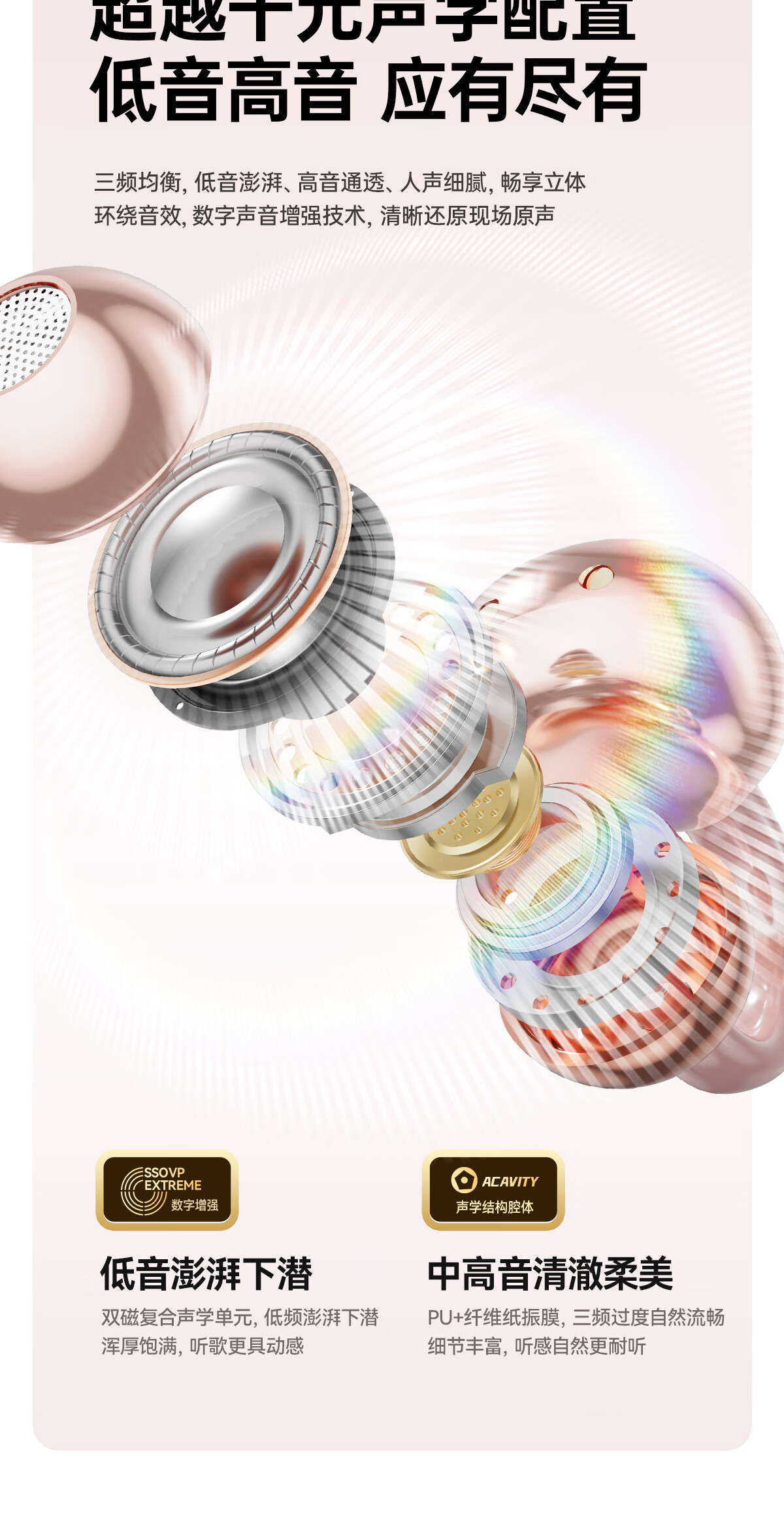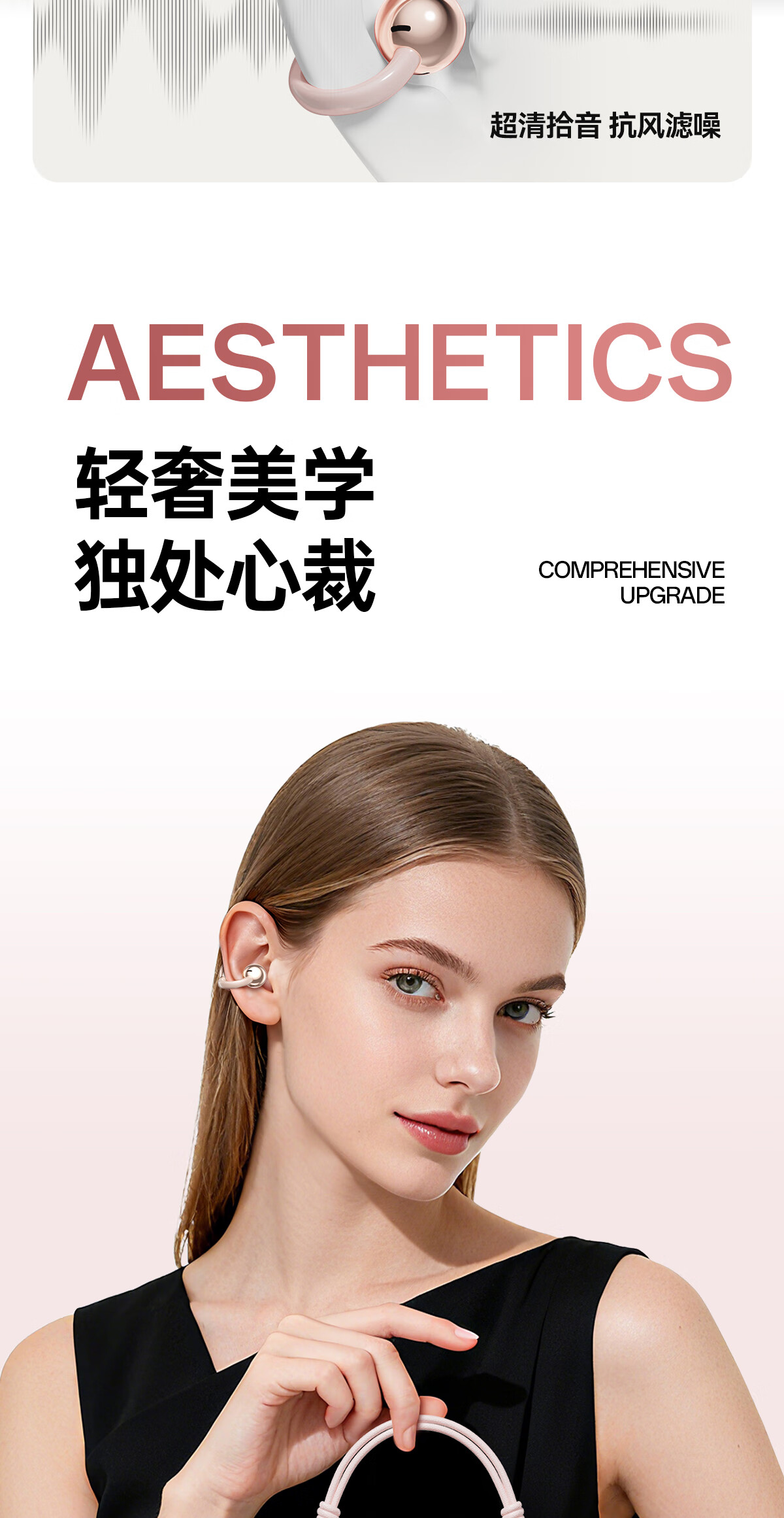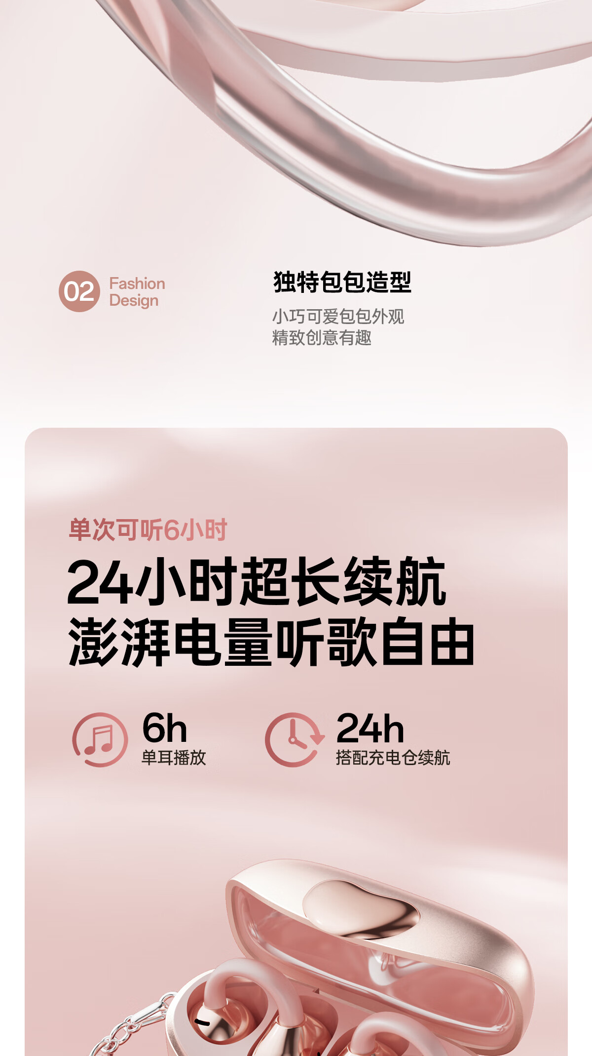 柏耕鸟运动骨传导蓝牙耳机无线不入耳夹耳tws耳机跑步骑行 粉红色【吊坠款】 I113