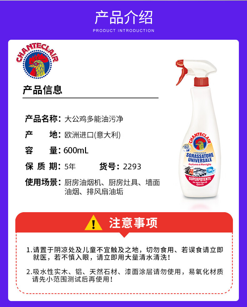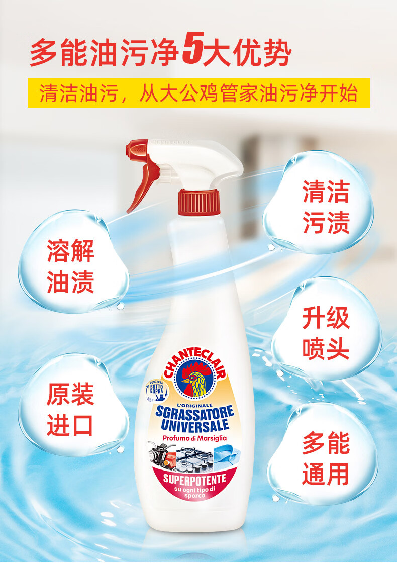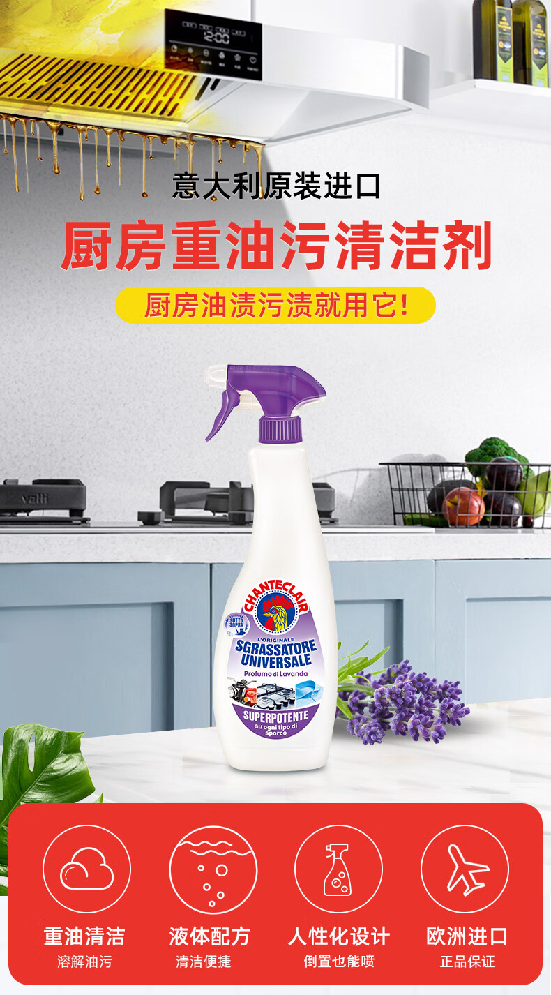 大公鸡管家意大利进口大公鸡厨房油烟机清洗剂 多功能清洁剂 薰衣草香600ml