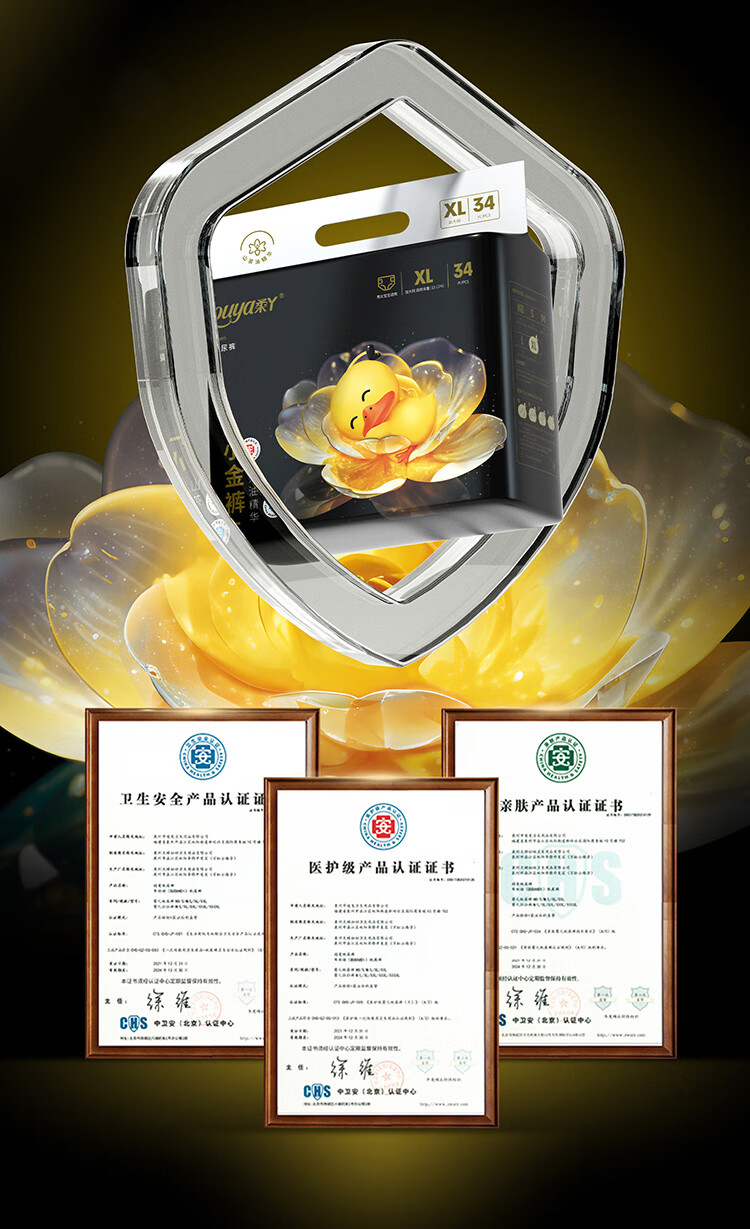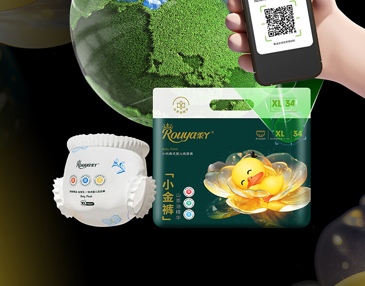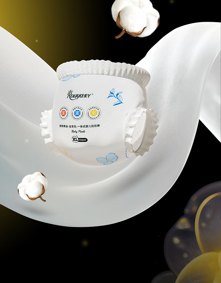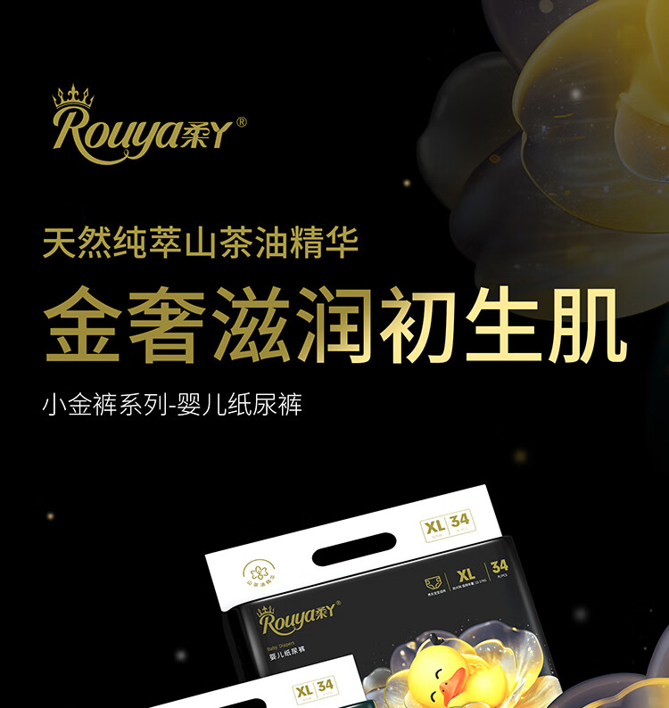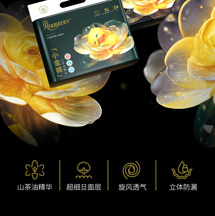 柔丫山茶油小金裤拉拉裤超薄透气纸尿裤婴儿男女一体裤宝宝尿不湿 2XL 1包 32片 【拉拉裤30斤以上】 *加量山茶油润肤