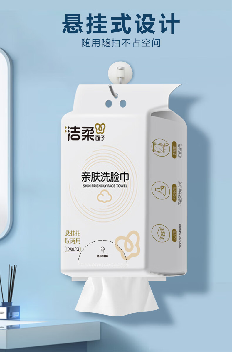 洁柔一次性洗脸巾挂抽两用柔软平纹母婴两用卸妆洁面擦脸巾 【经典平纹】100抽*3包
