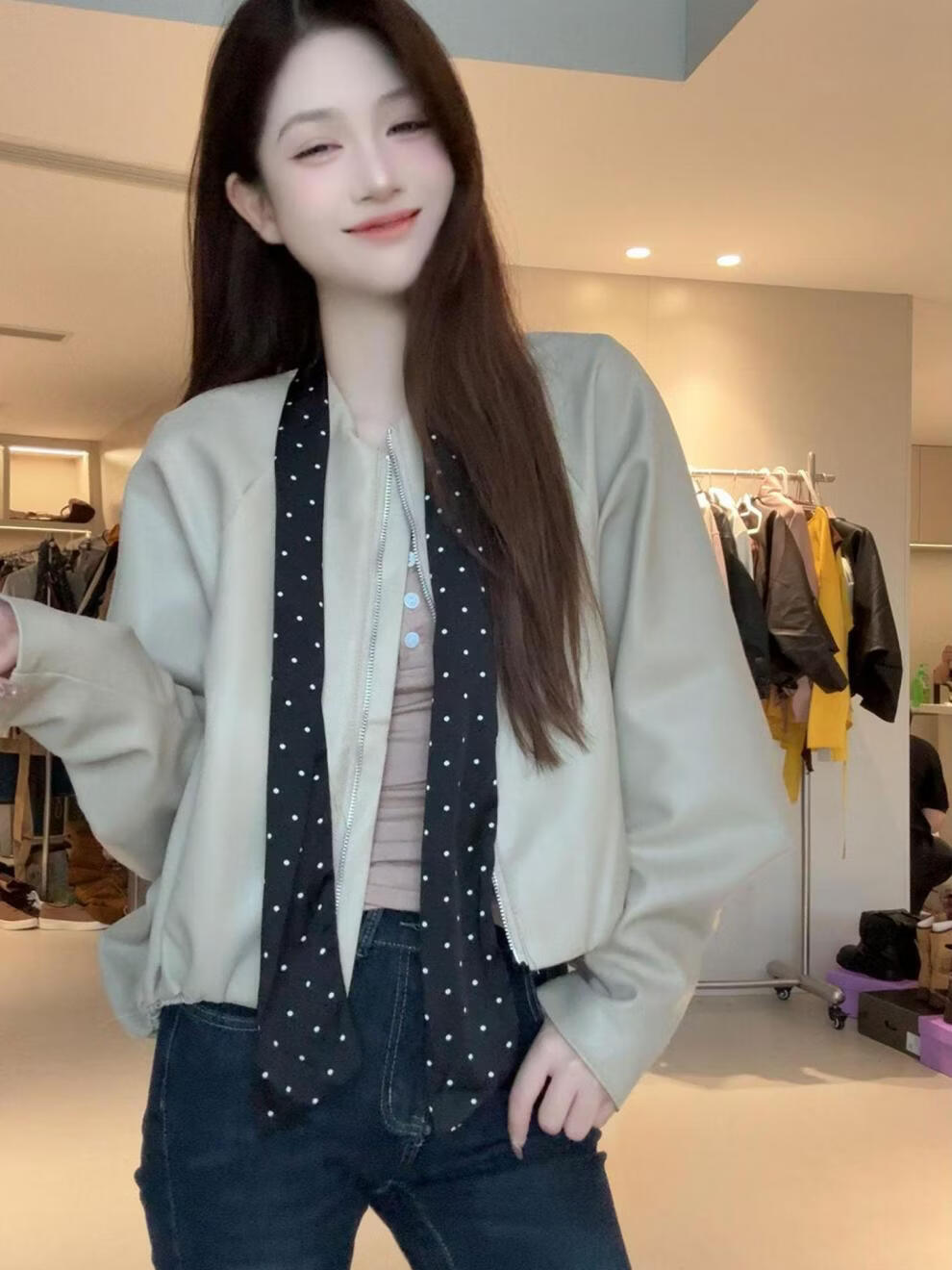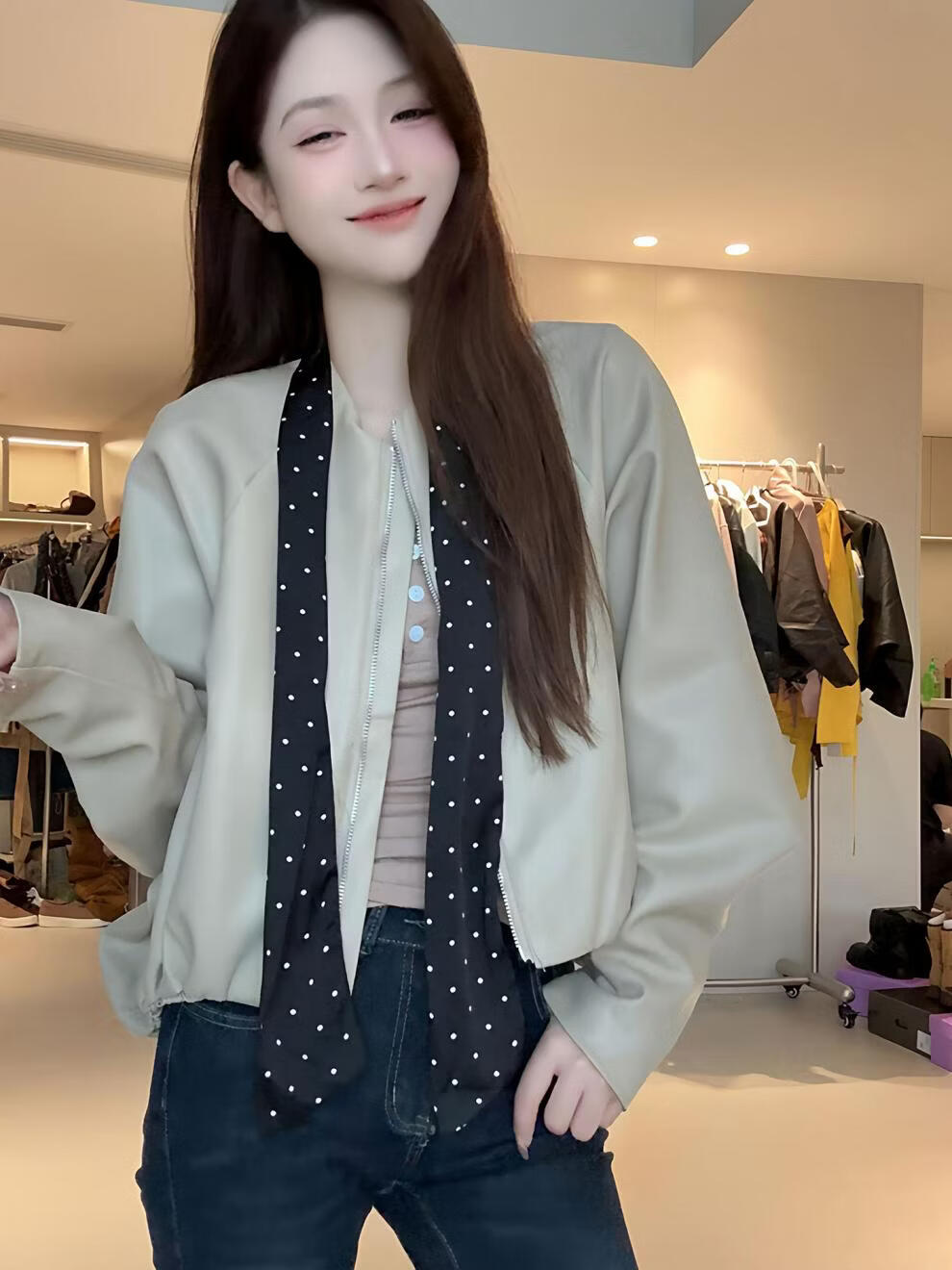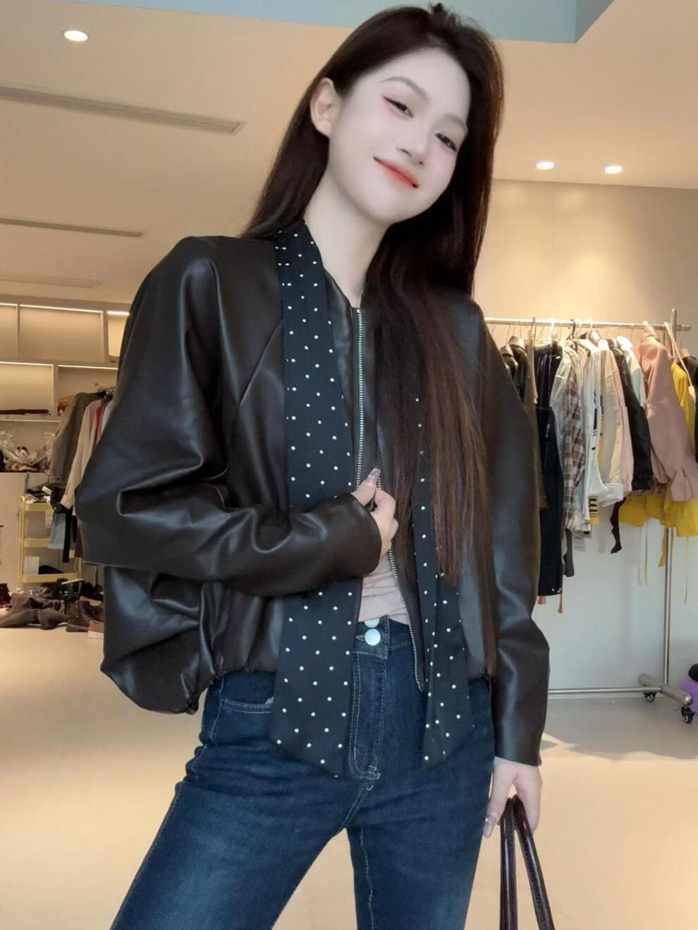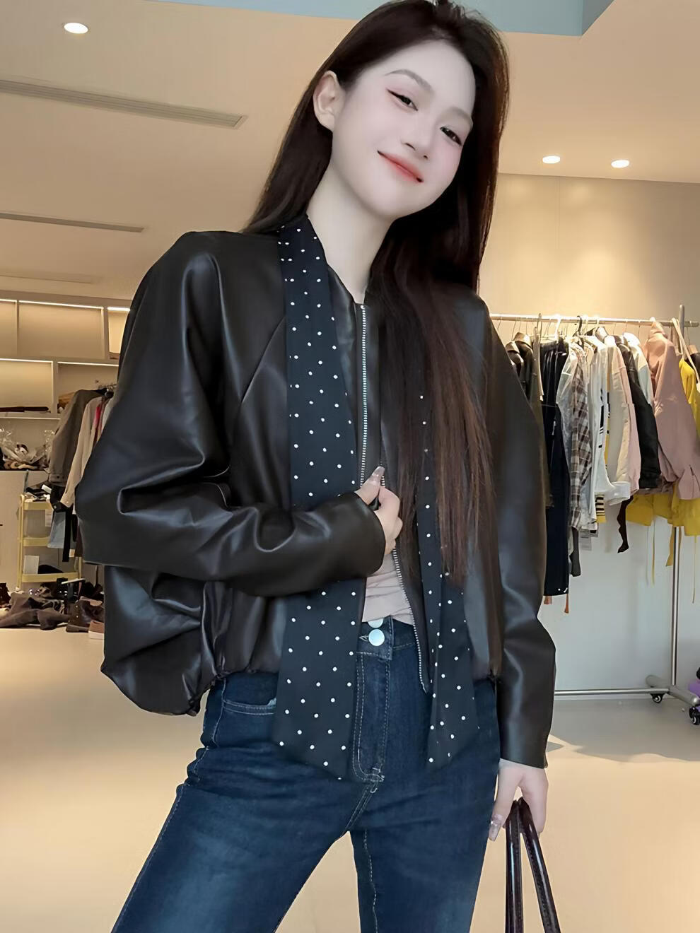 MODX2026年秋季新款韩系复古酷飒气质外套女设计感波点飘带小个子外套 棕红色 【原版】 M 95-110斤