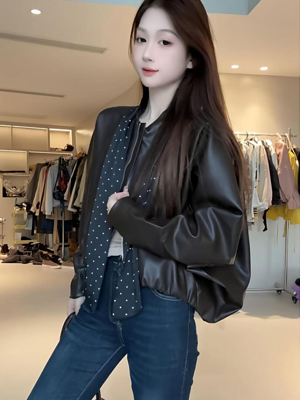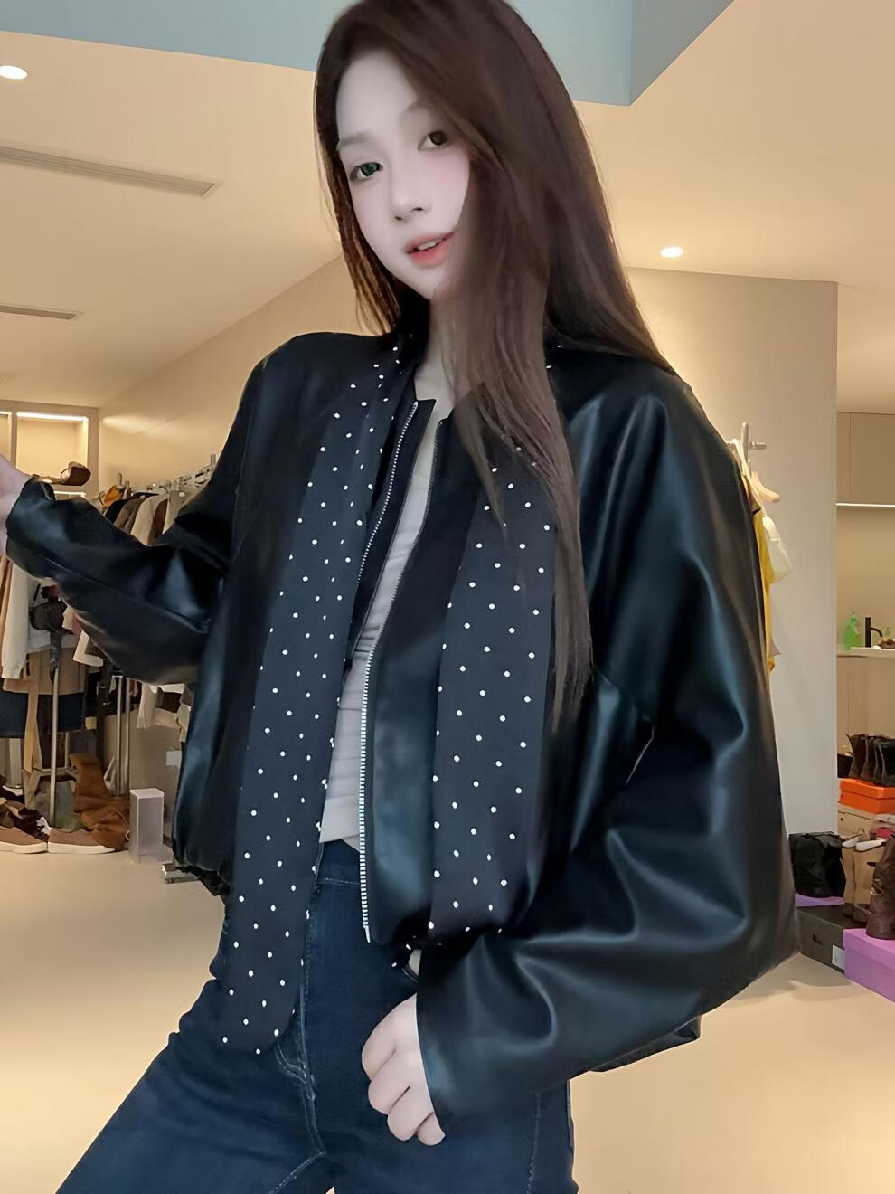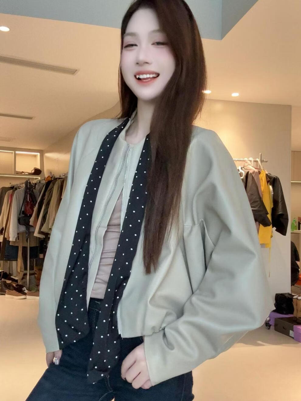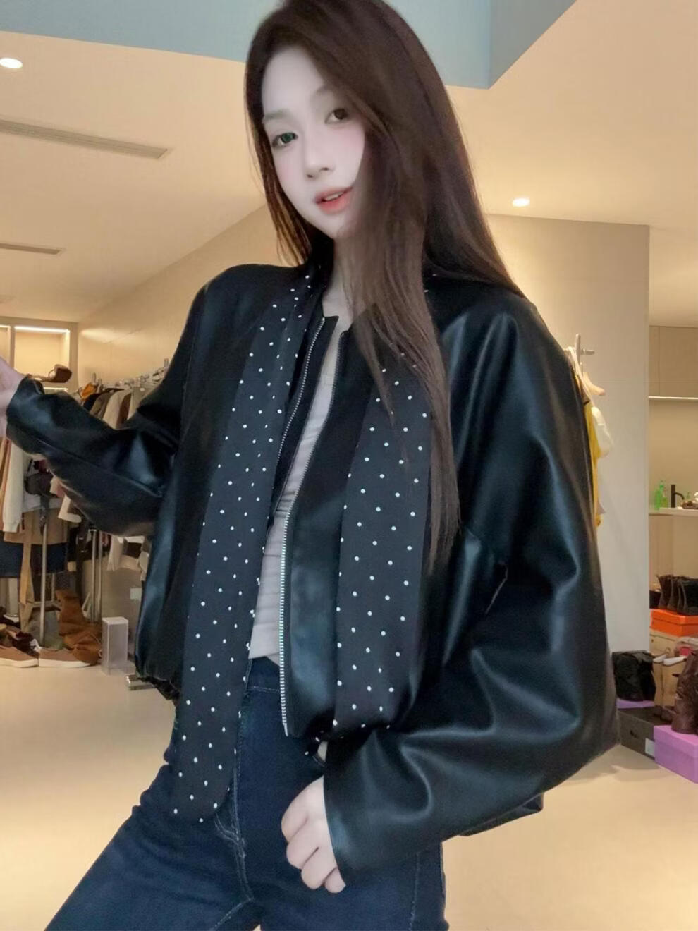 MODX2026年秋季新款韩系复古酷飒气质外套女设计感波点飘带小个子外套 棕红色 【原版】 M 95-110斤