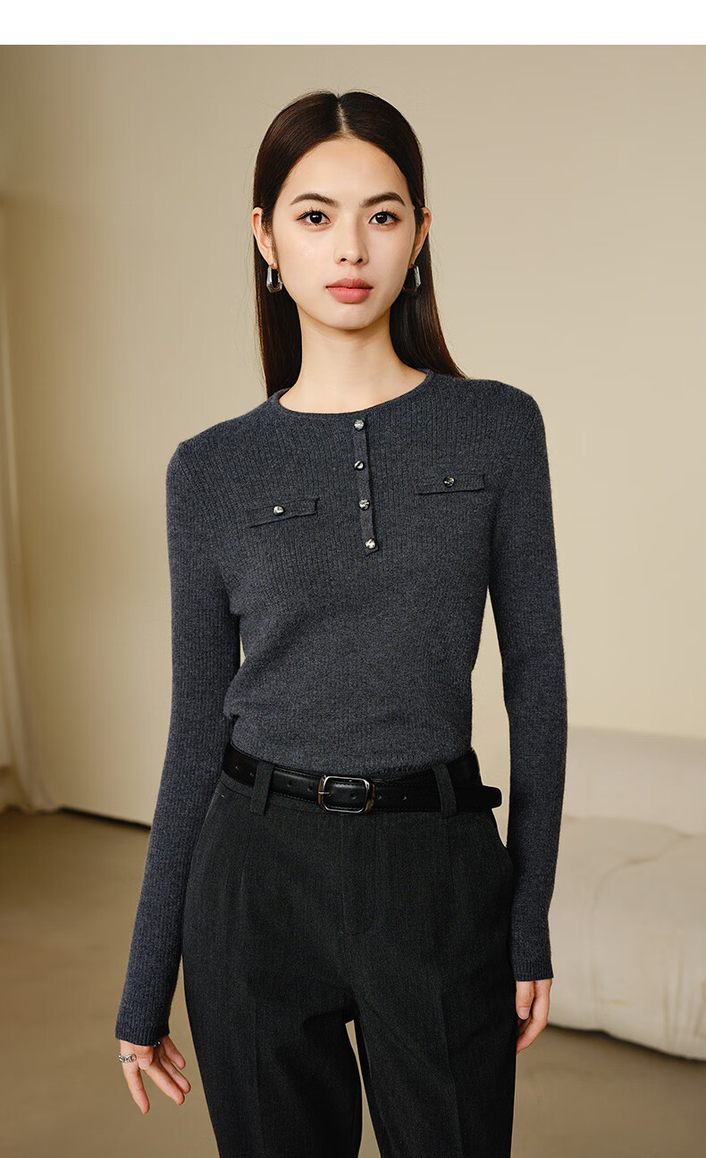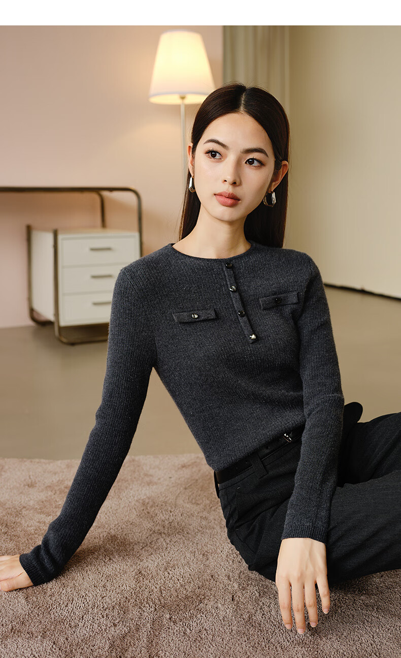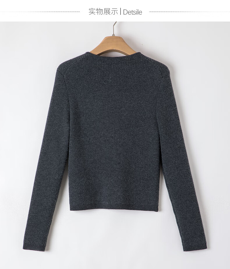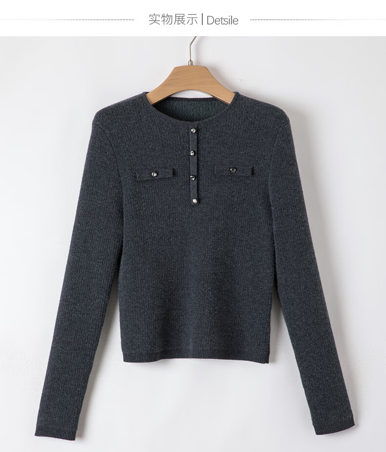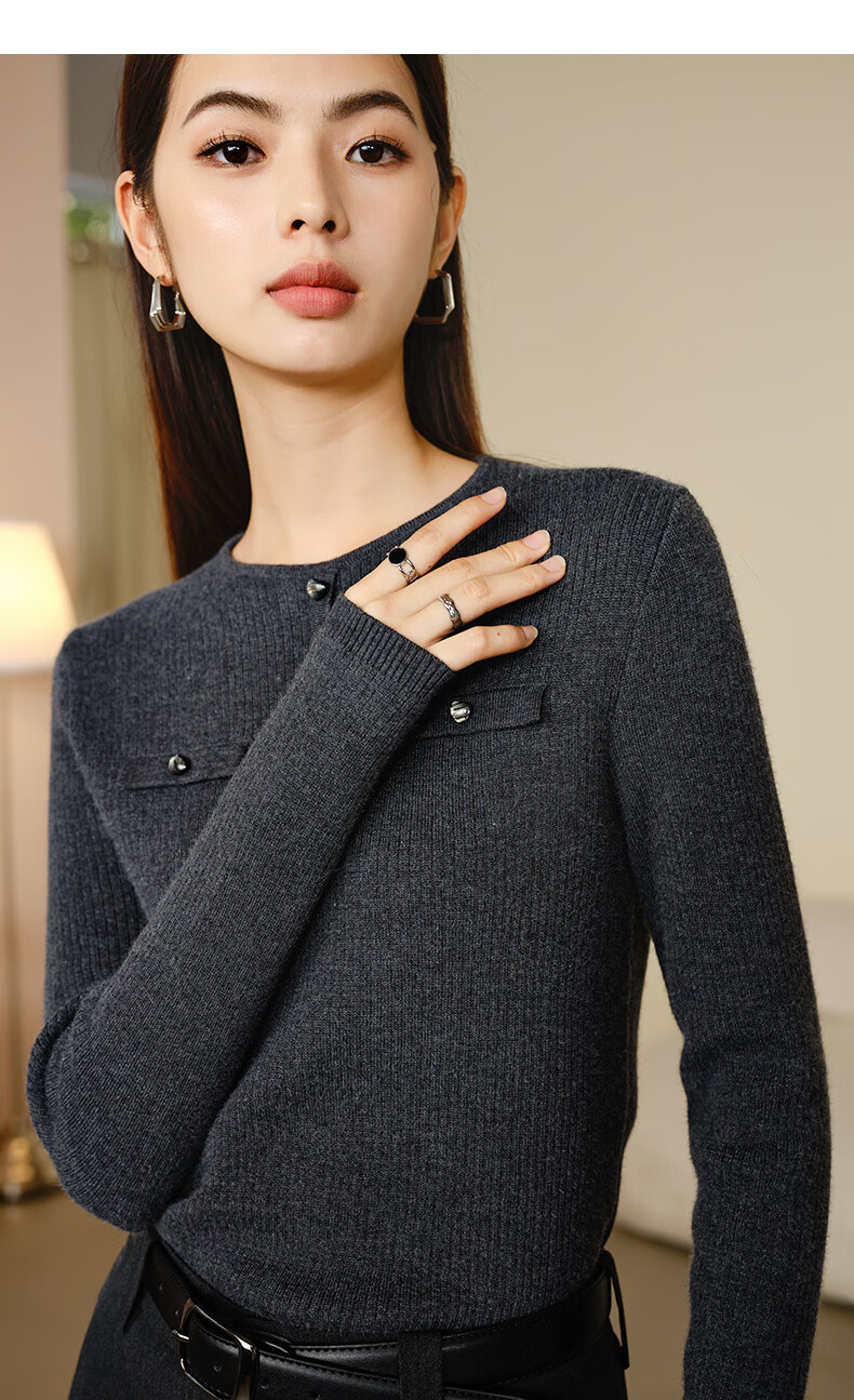 晚白【新品】加绒加厚格雷灰毛衣冬季时尚简约百搭圆领套头针织衫女 灰色 L