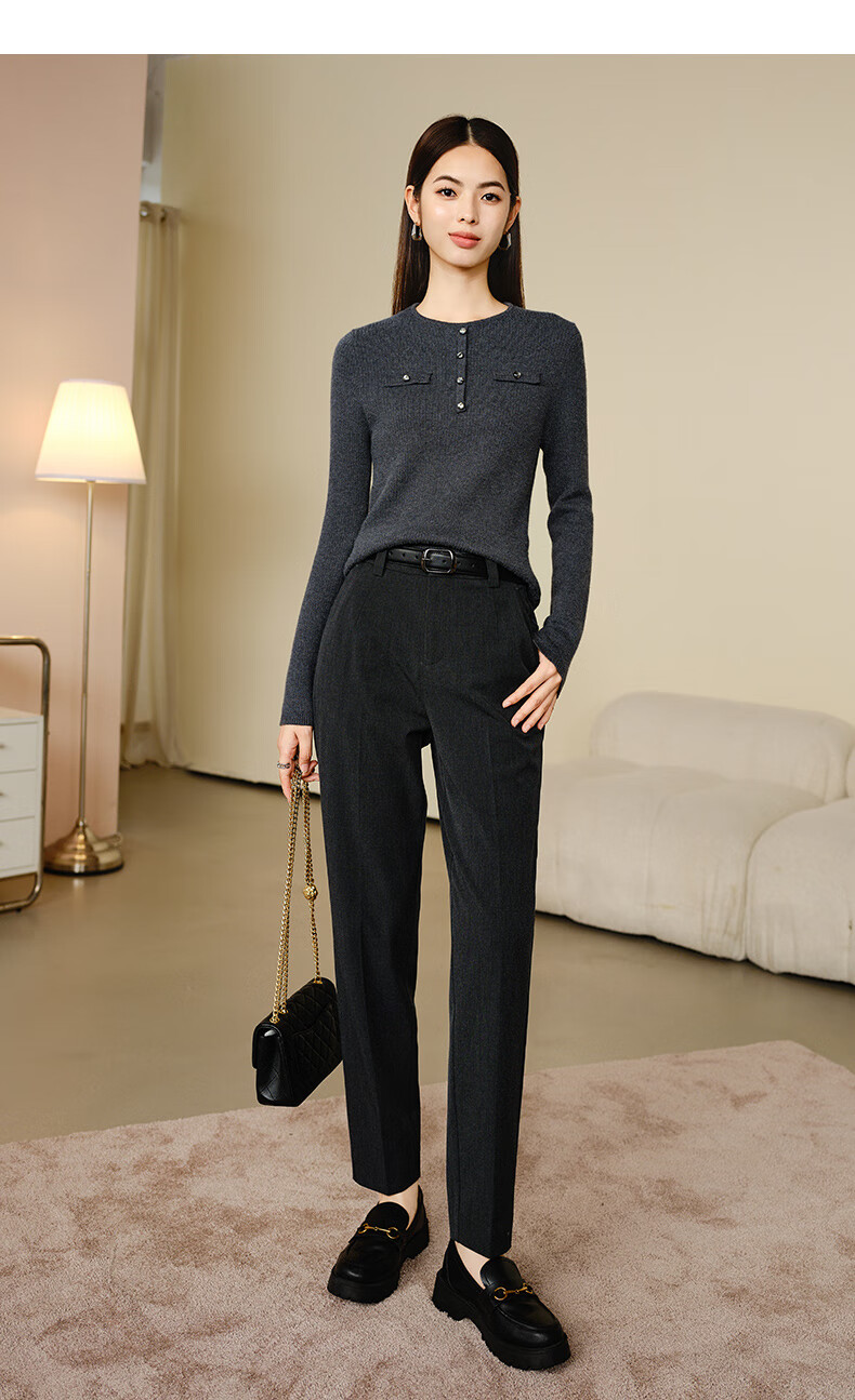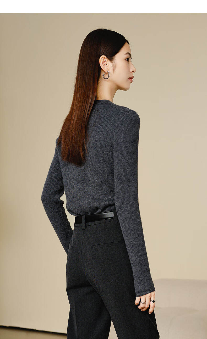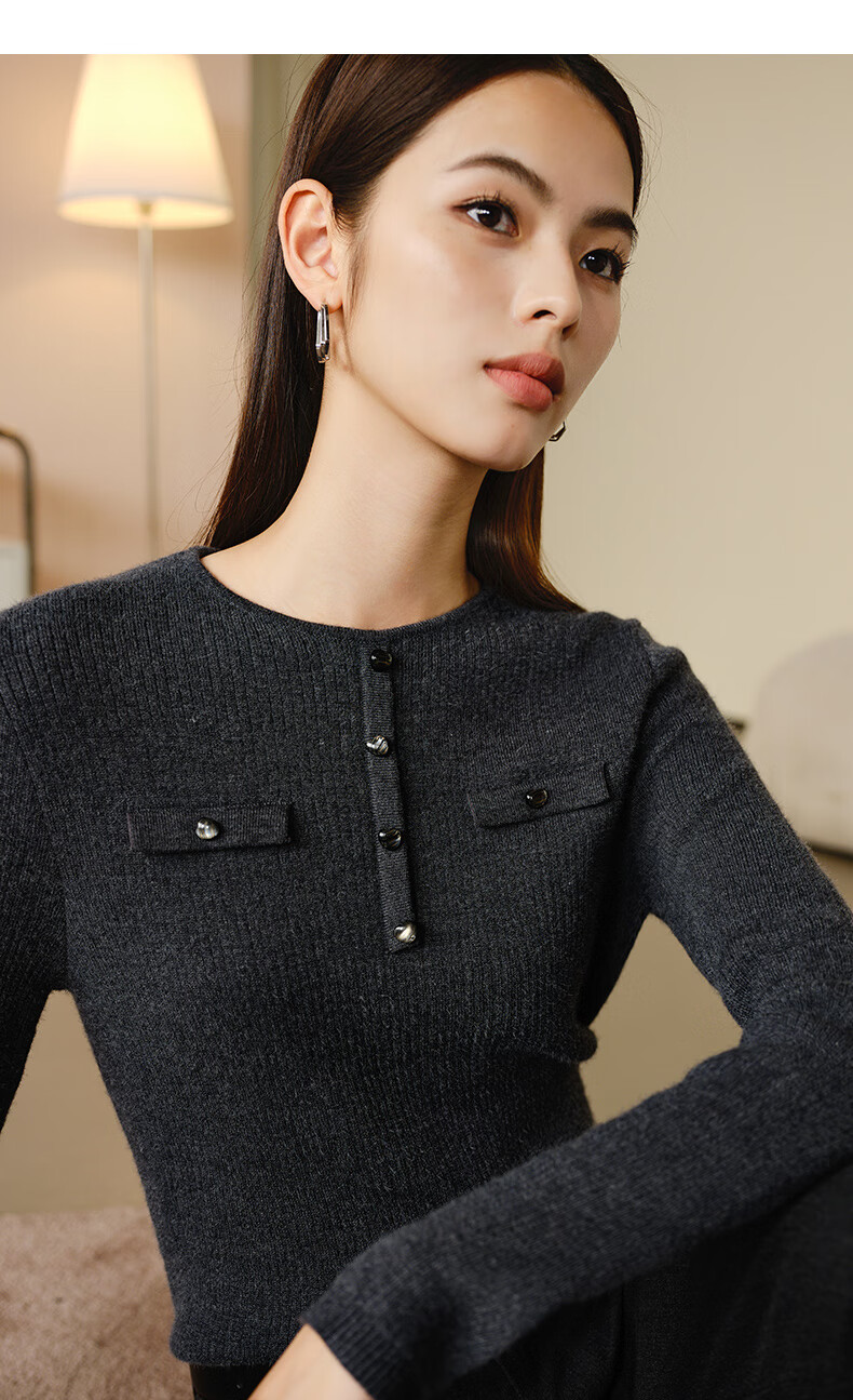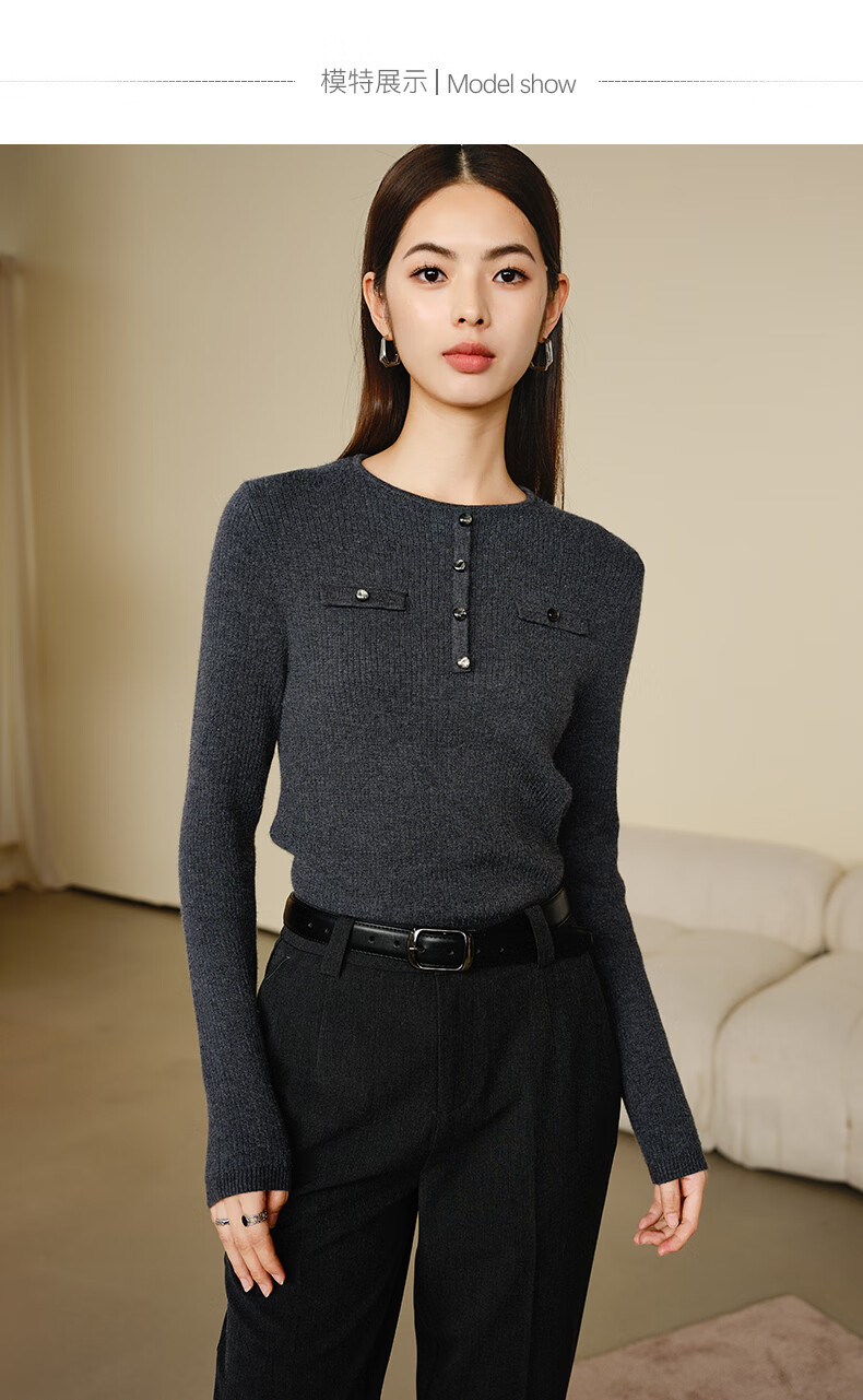 晚白【新品】加绒加厚格雷灰毛衣冬季时尚简约百搭圆领套头针织衫女 灰色 L