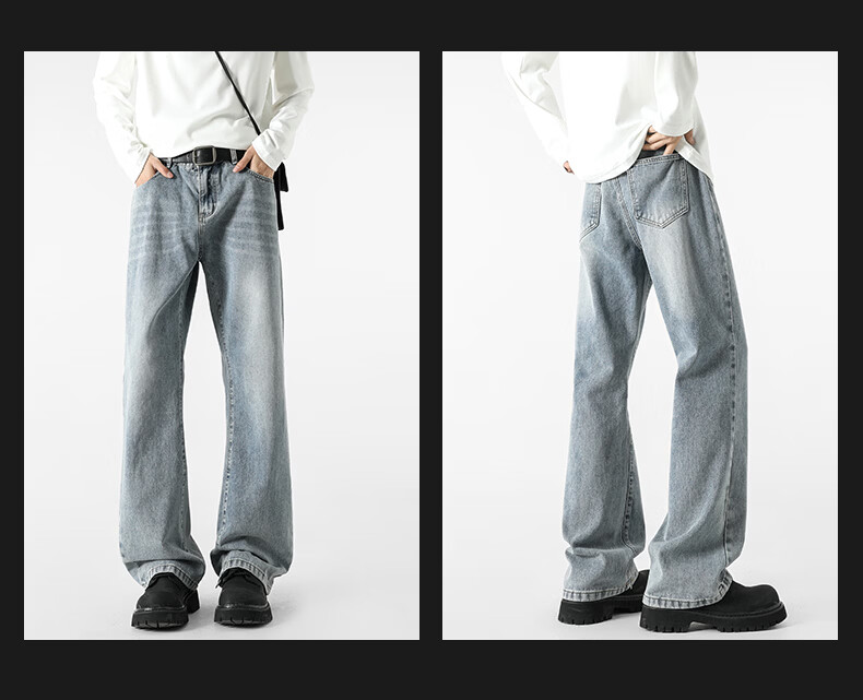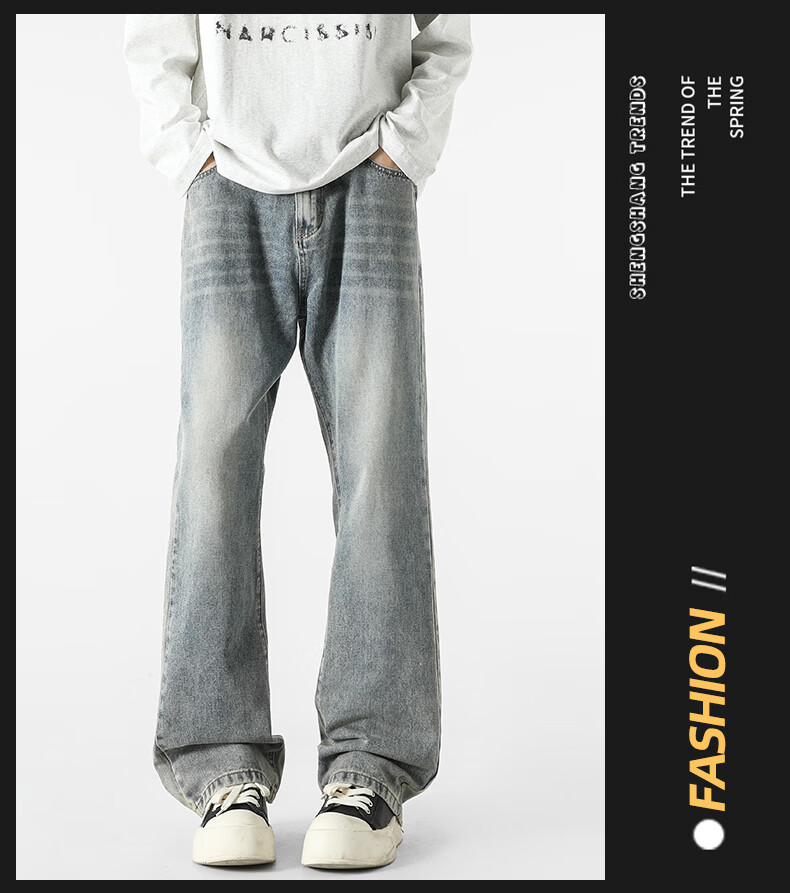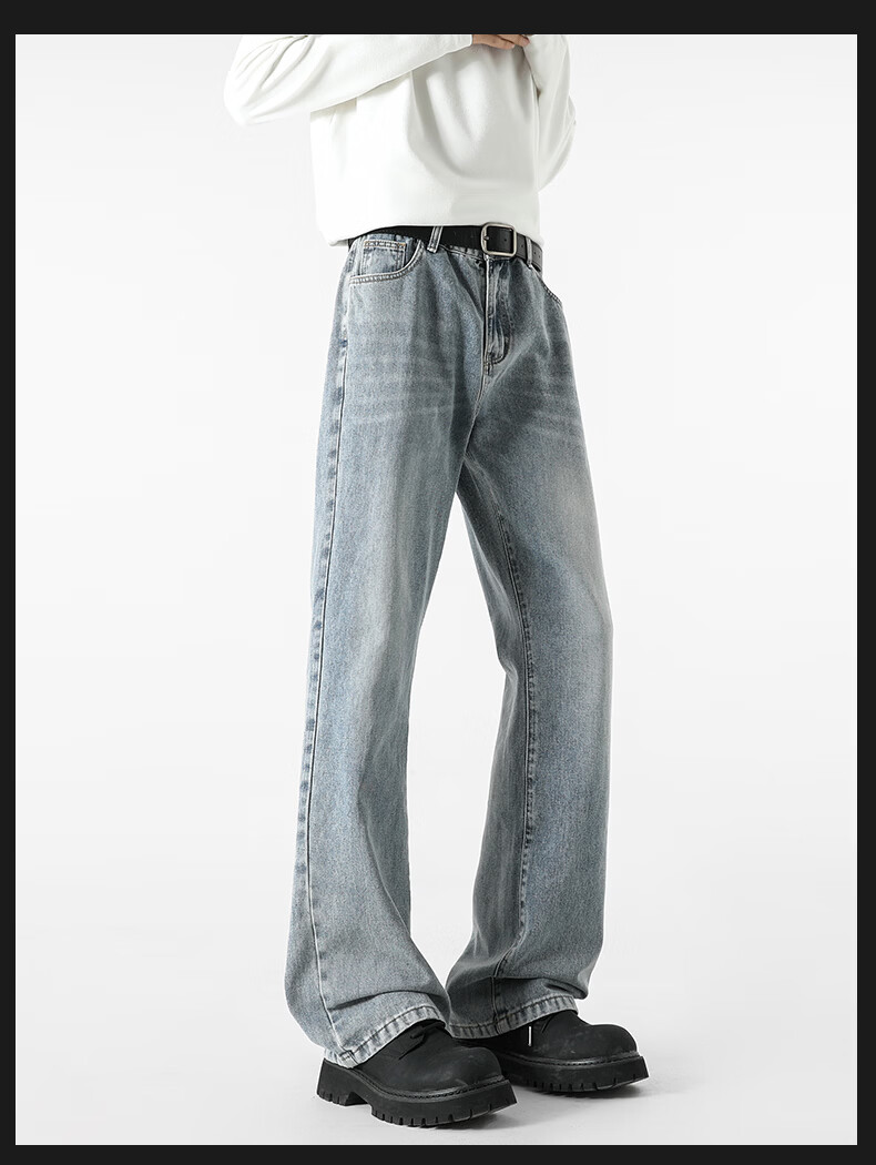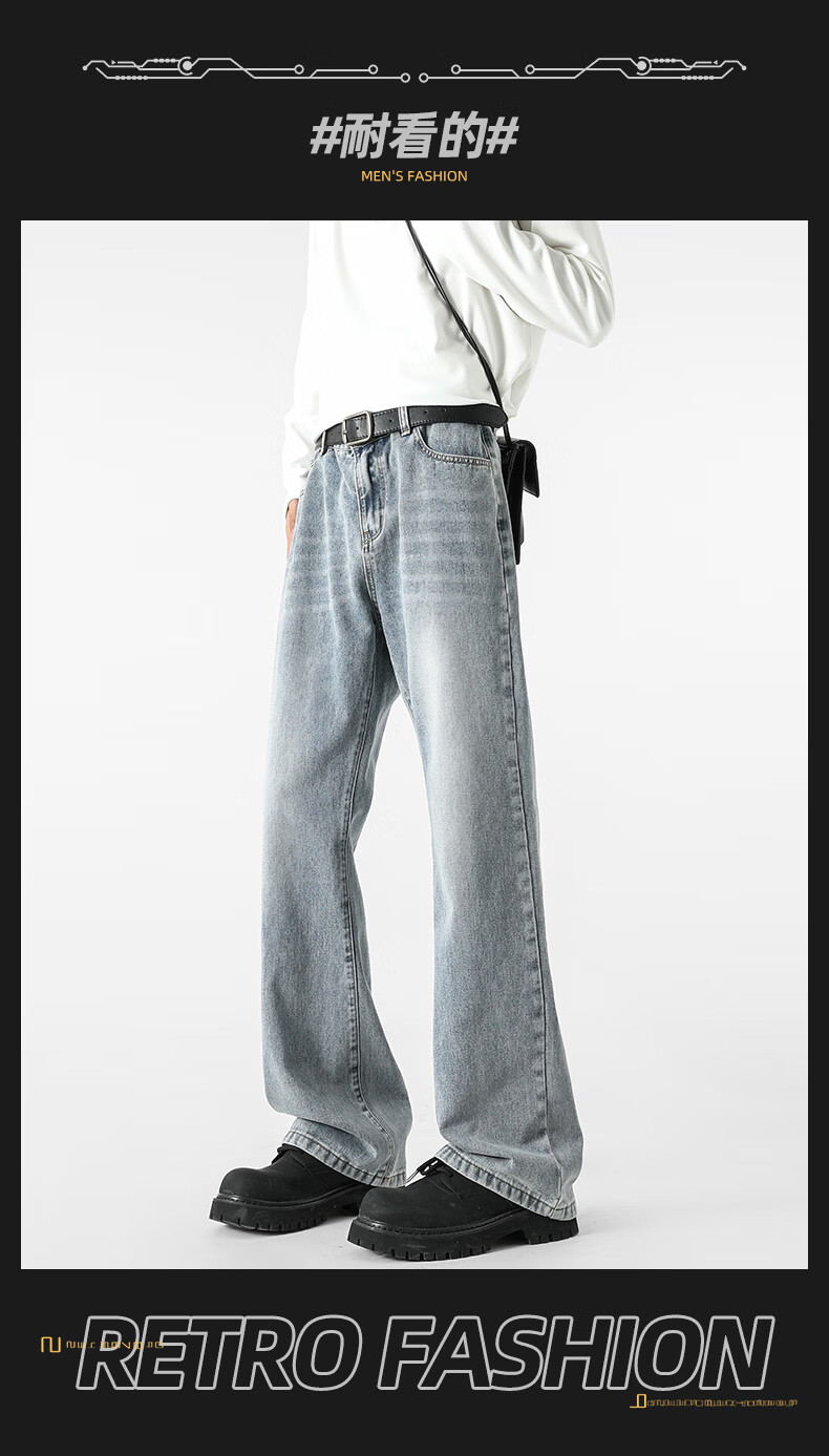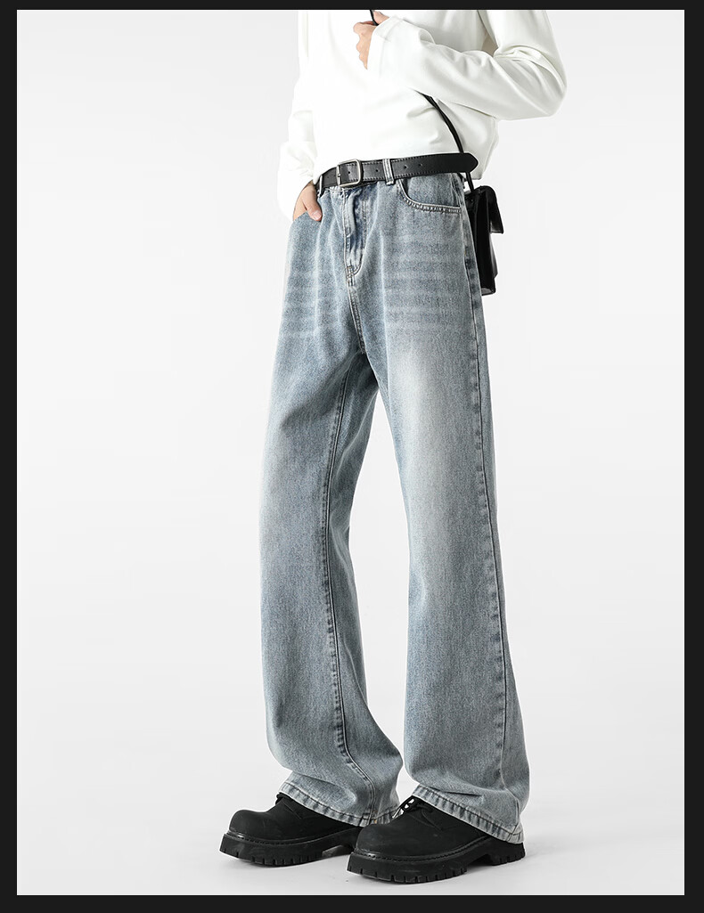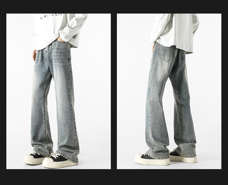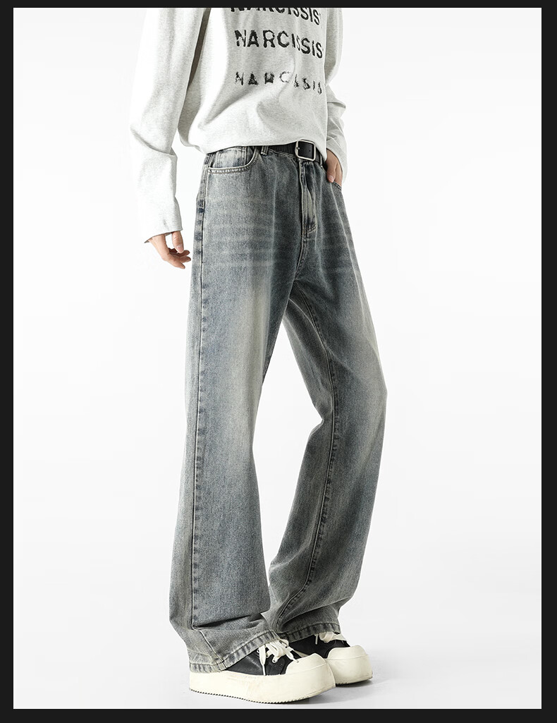 真维斯牛仔裤男春夏季美式宽松微喇裤男新款潮牌复古水洗显瘦长裤子男 烟灰色 S