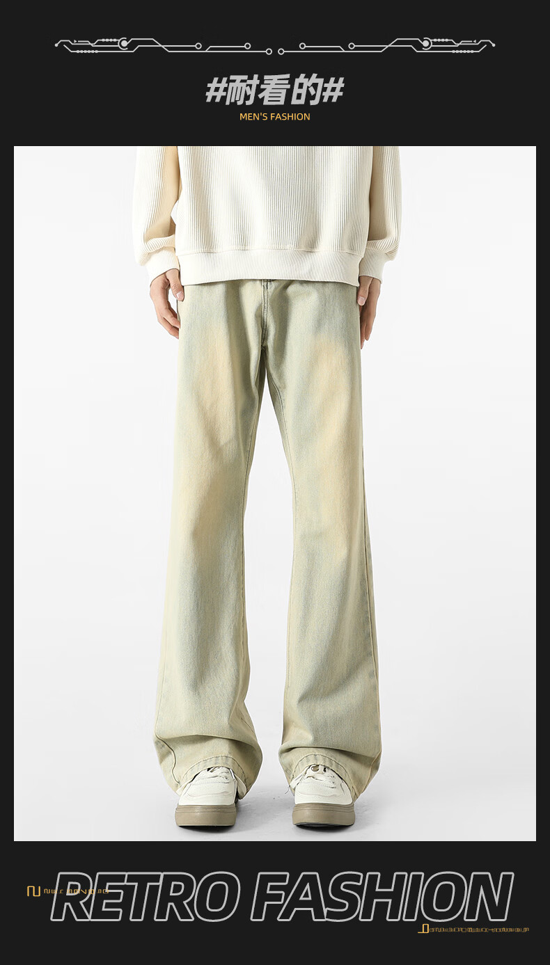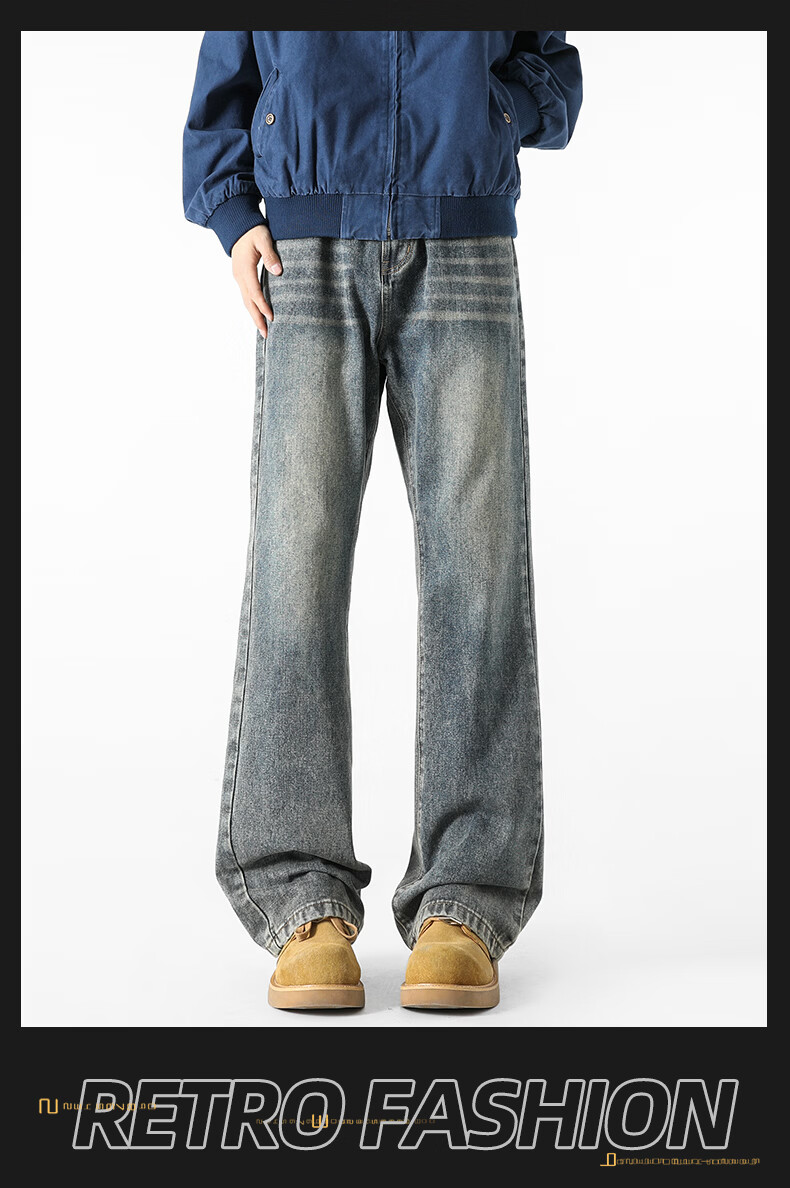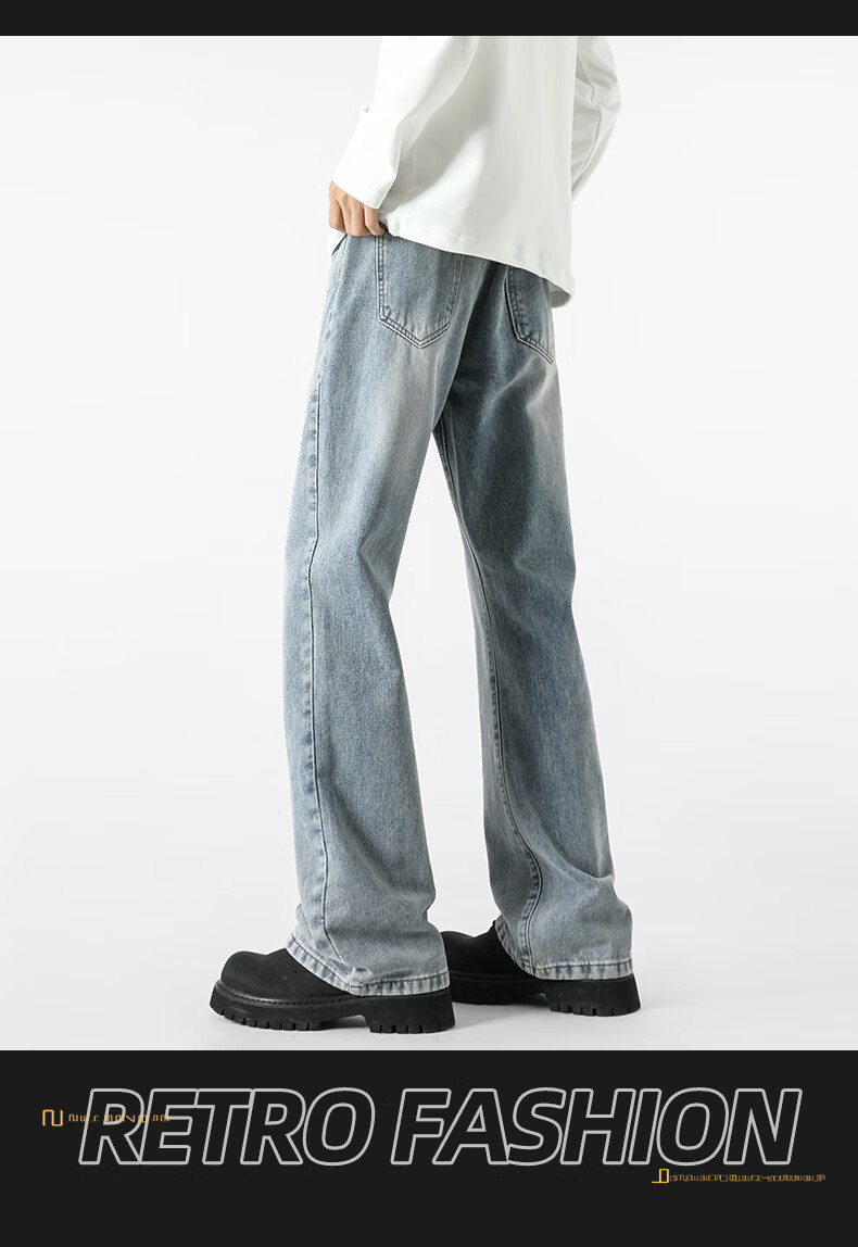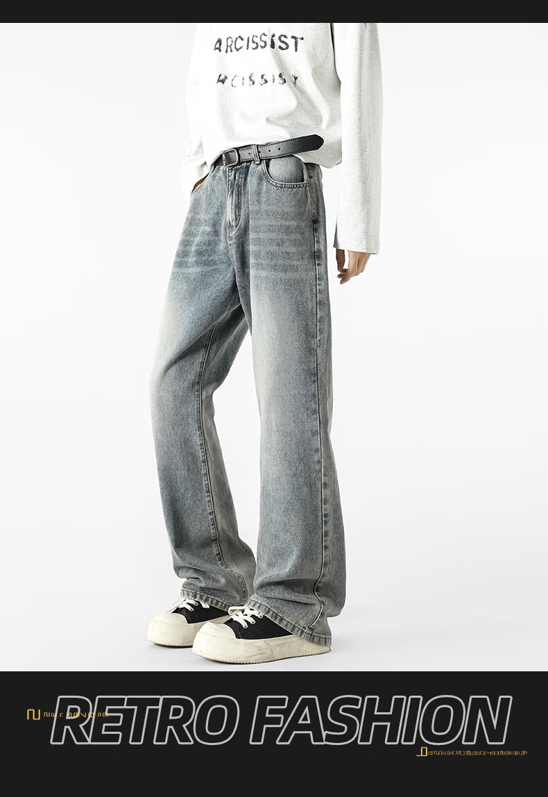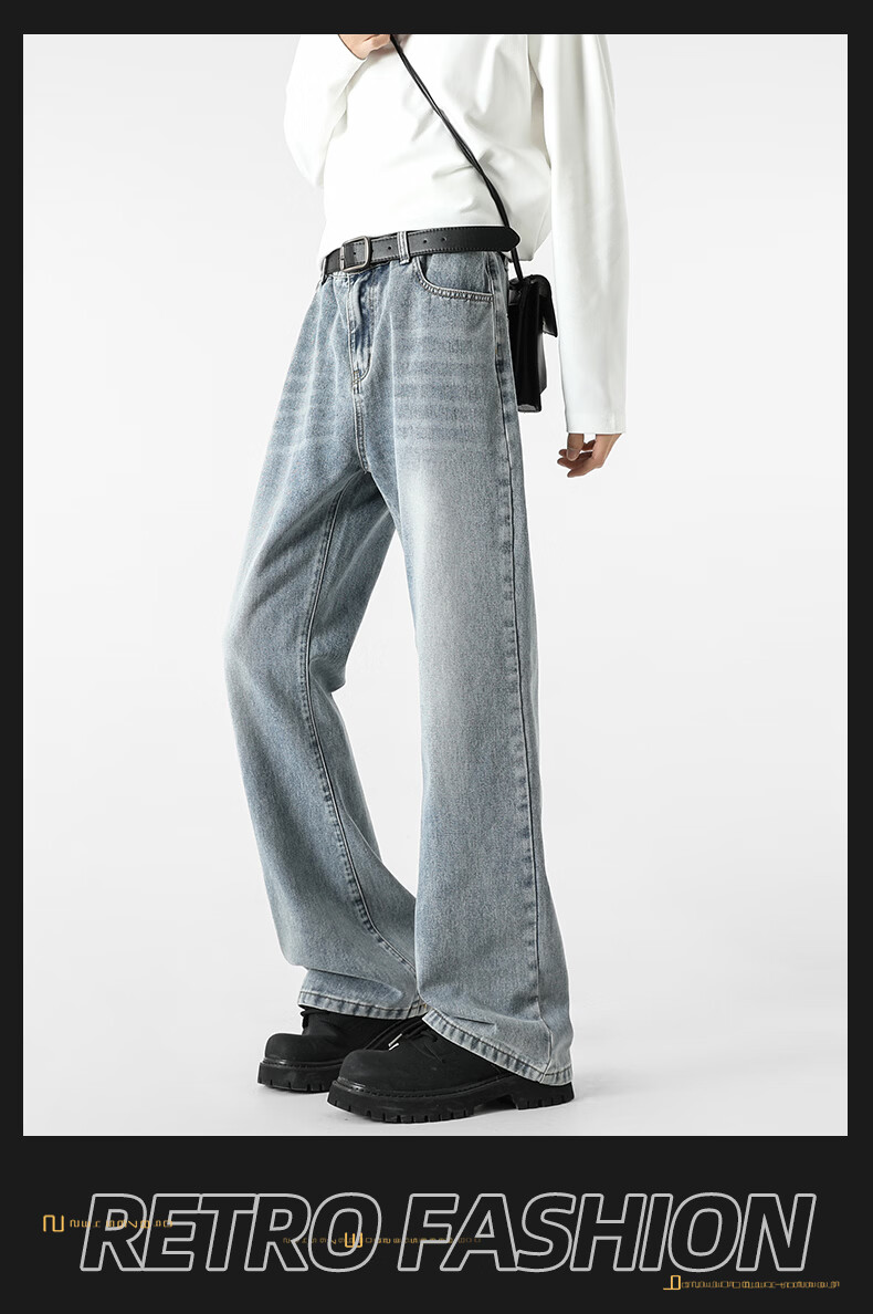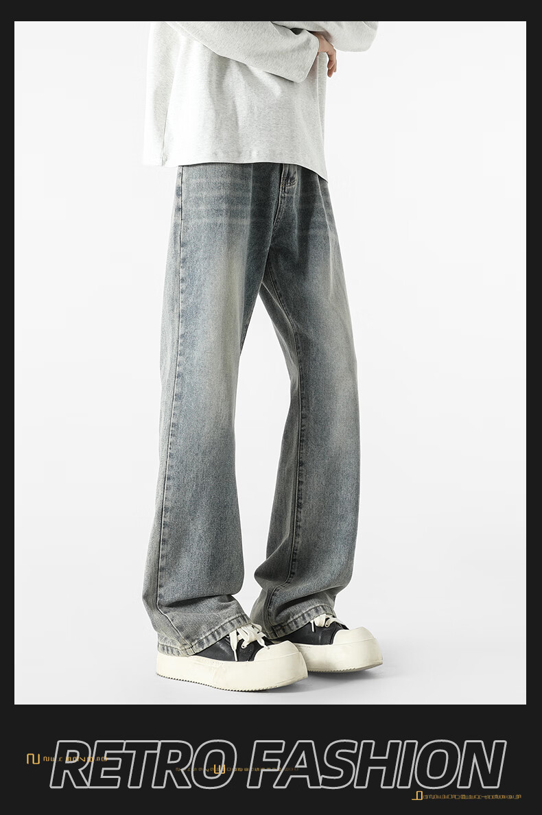 真维斯牛仔裤男春夏季美式宽松微喇裤男新款潮牌复古水洗显瘦长裤子男 烟灰色 S