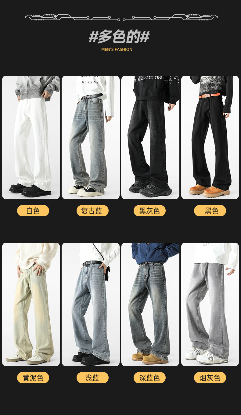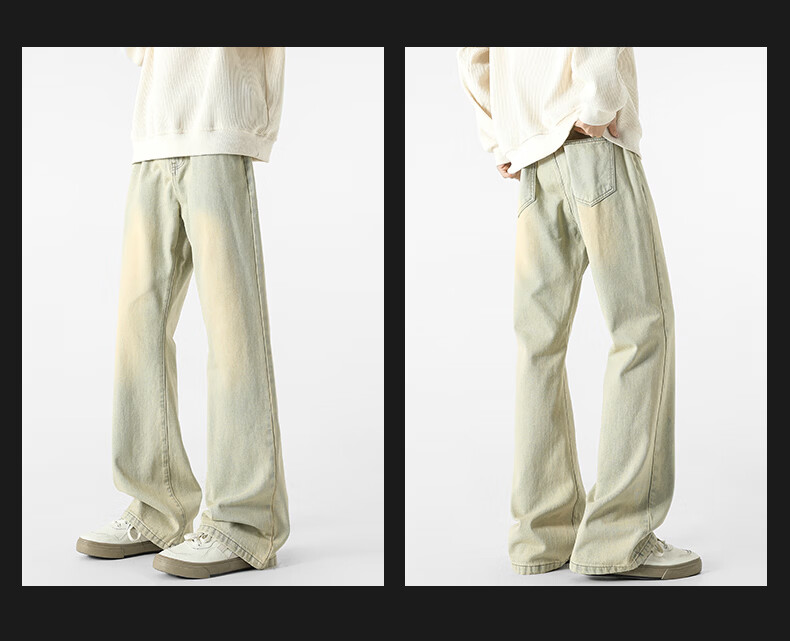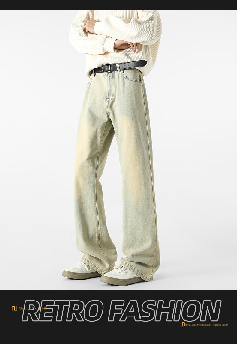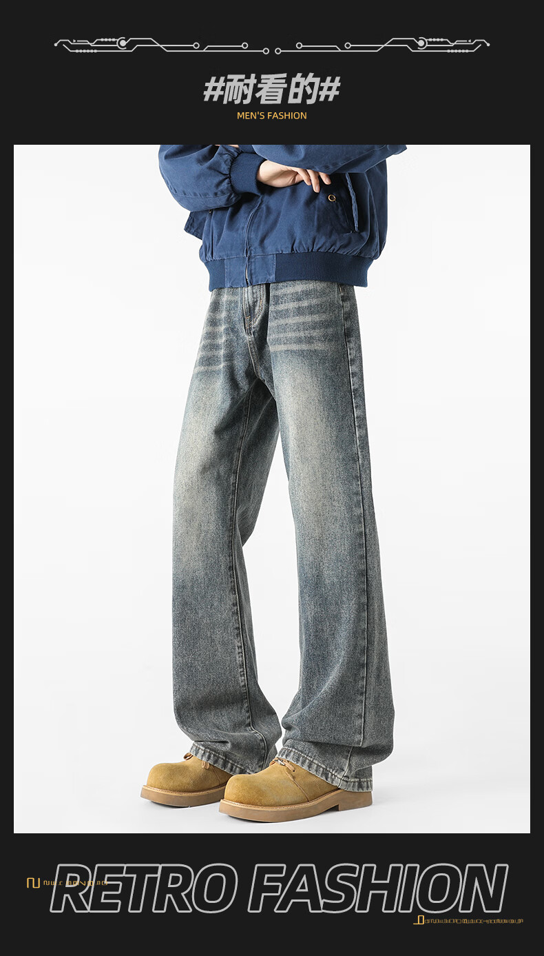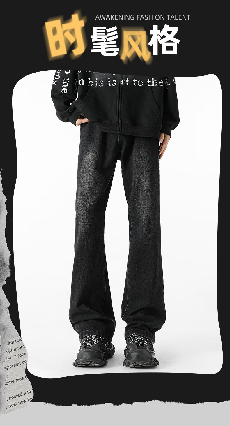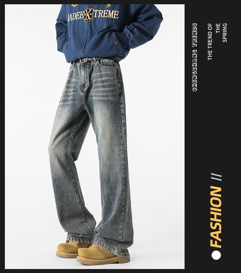 真维斯牛仔裤男春夏季美式宽松微喇裤男新款潮牌复古水洗显瘦长裤子男 烟灰色 S