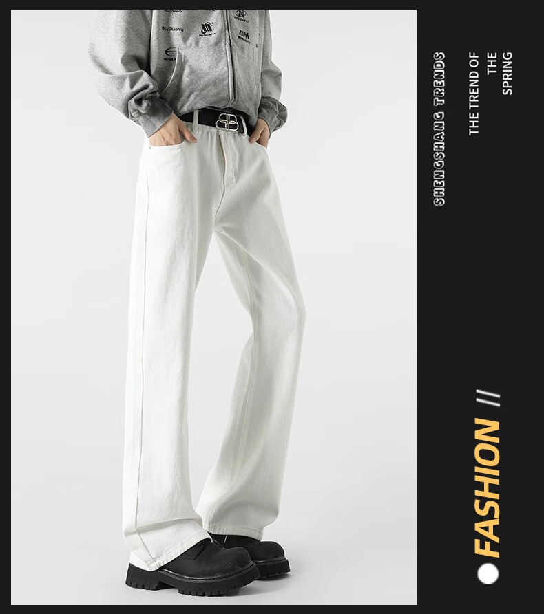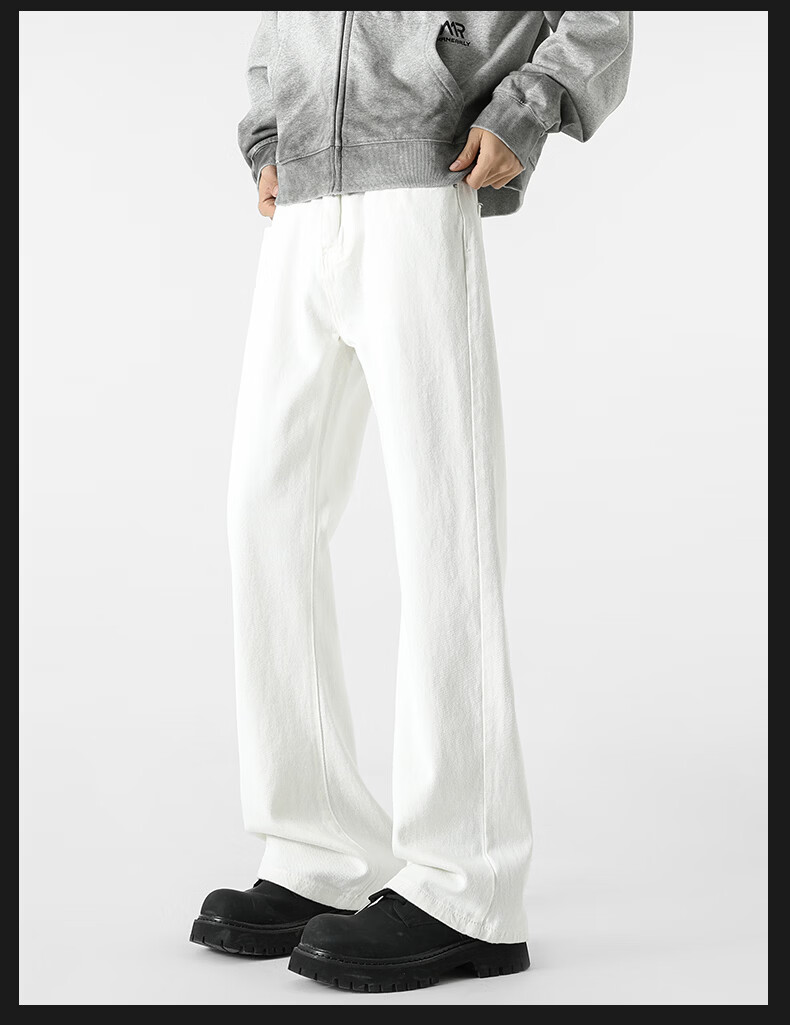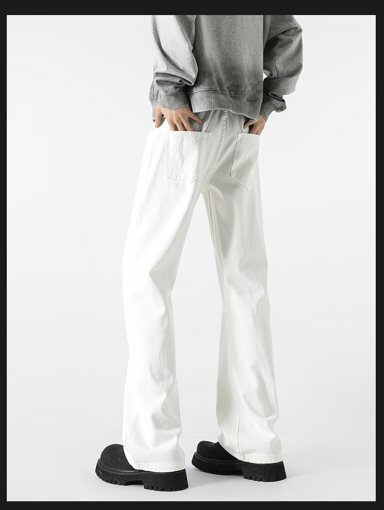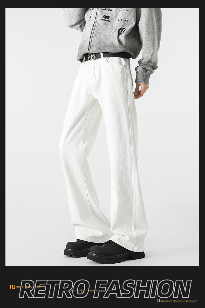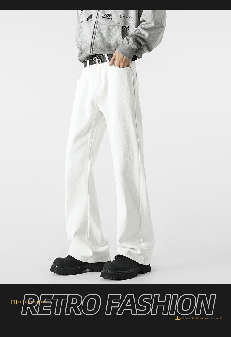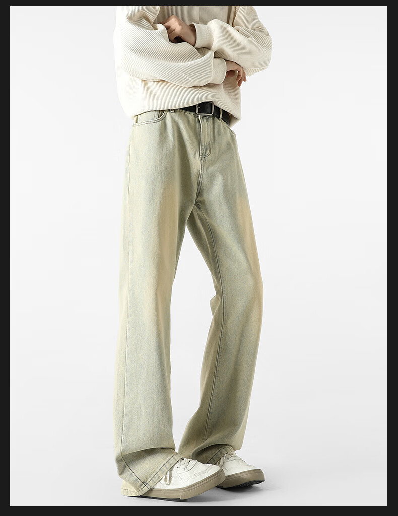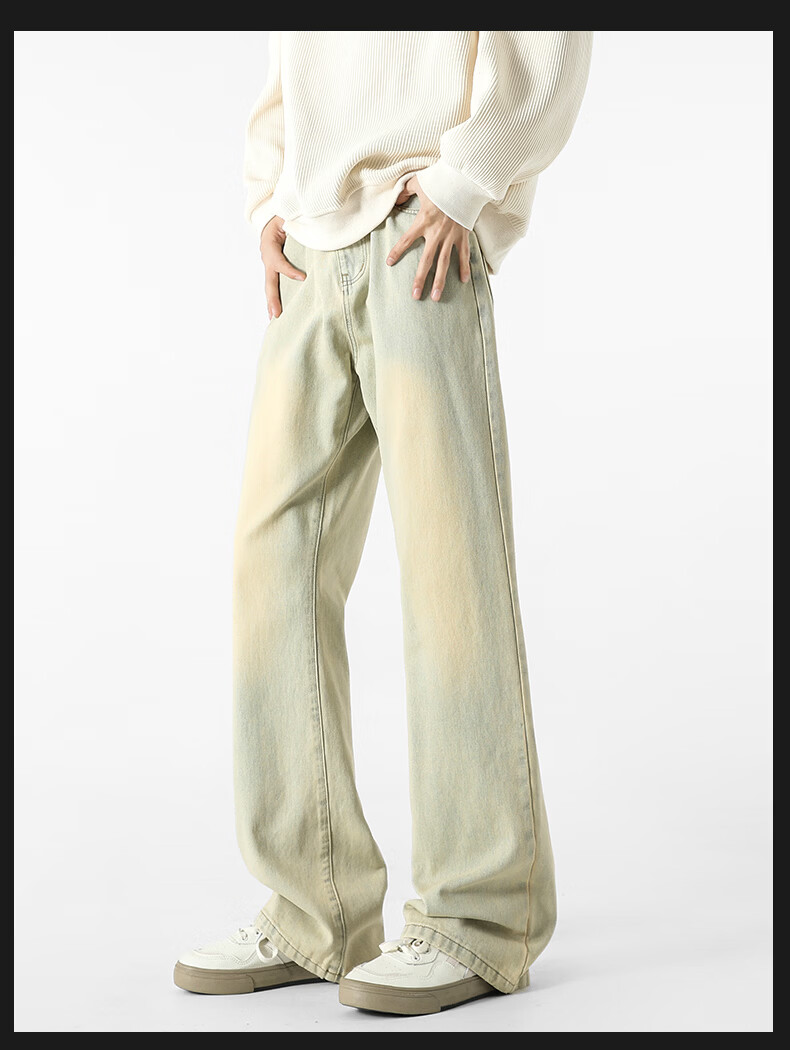 真维斯牛仔裤男春夏季美式宽松微喇裤男新款潮牌复古水洗显瘦长裤子男 烟灰色 S