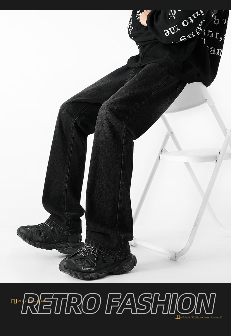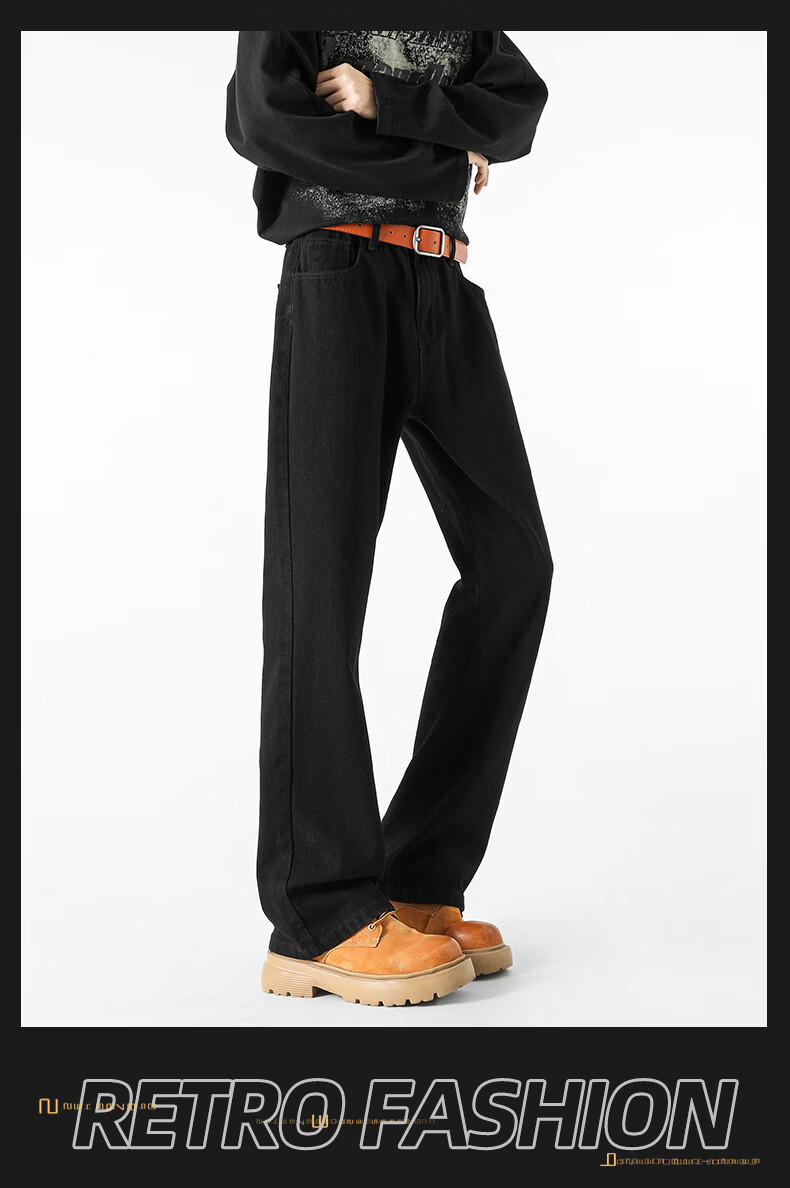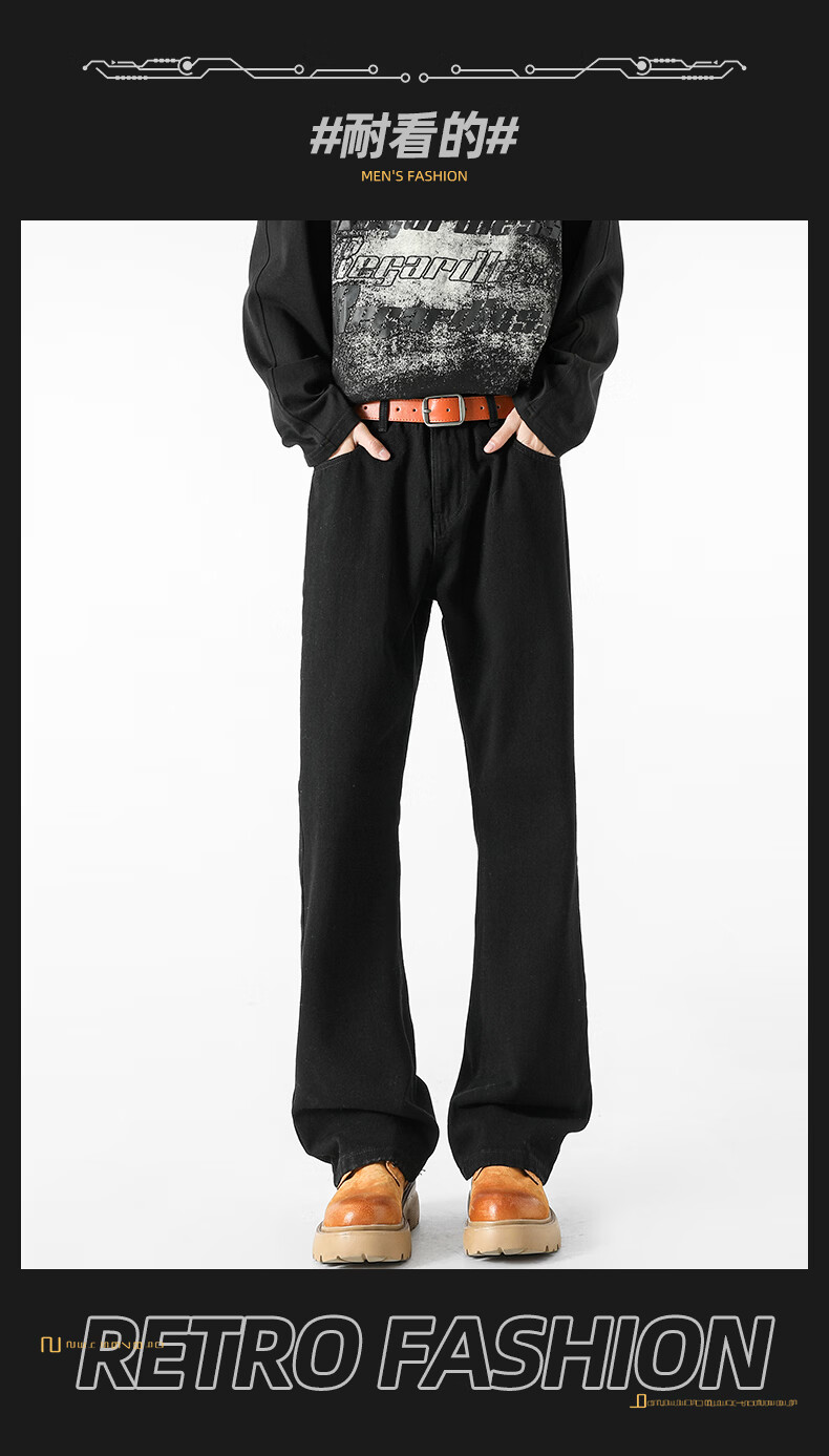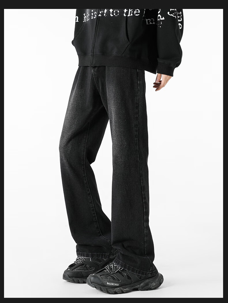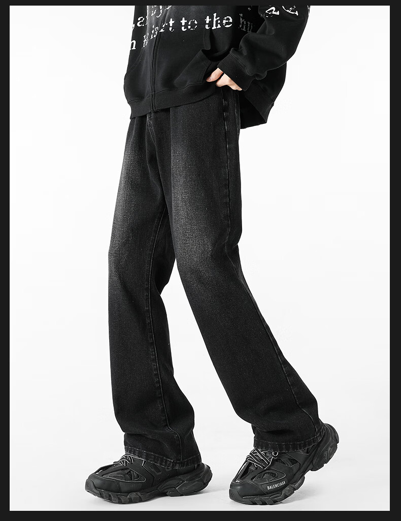 真维斯(Jeanswest)牛仔裤男潮牌新款男高街休闲裤男士2026春秋季百搭垂感直筒长裤男 黑色 纯色 31 (2尺4)