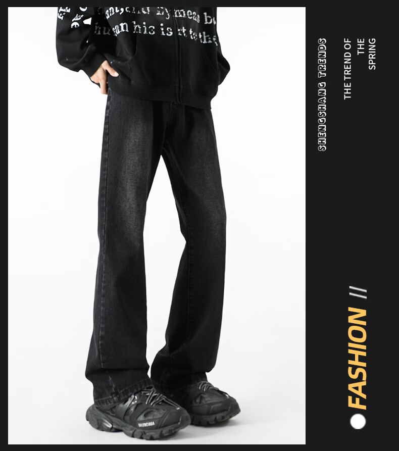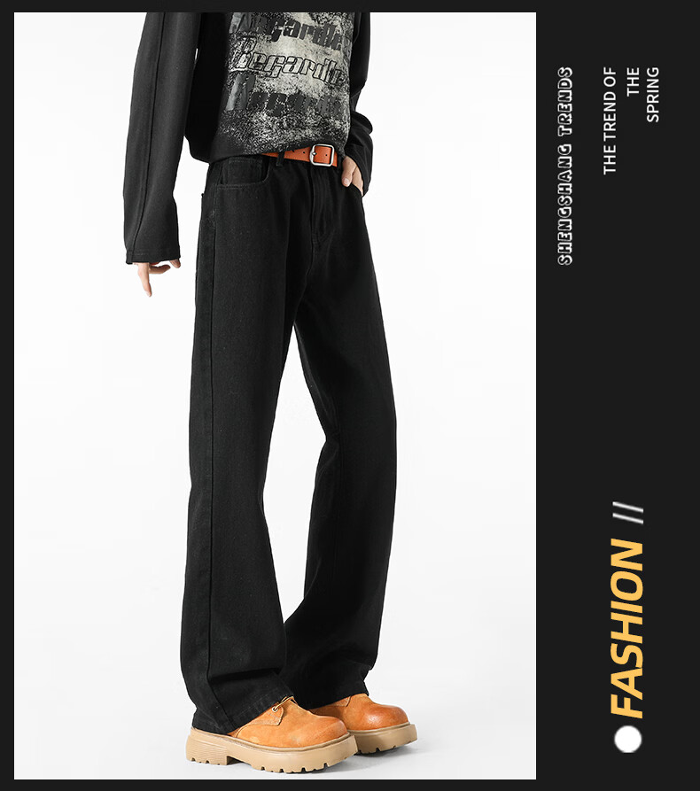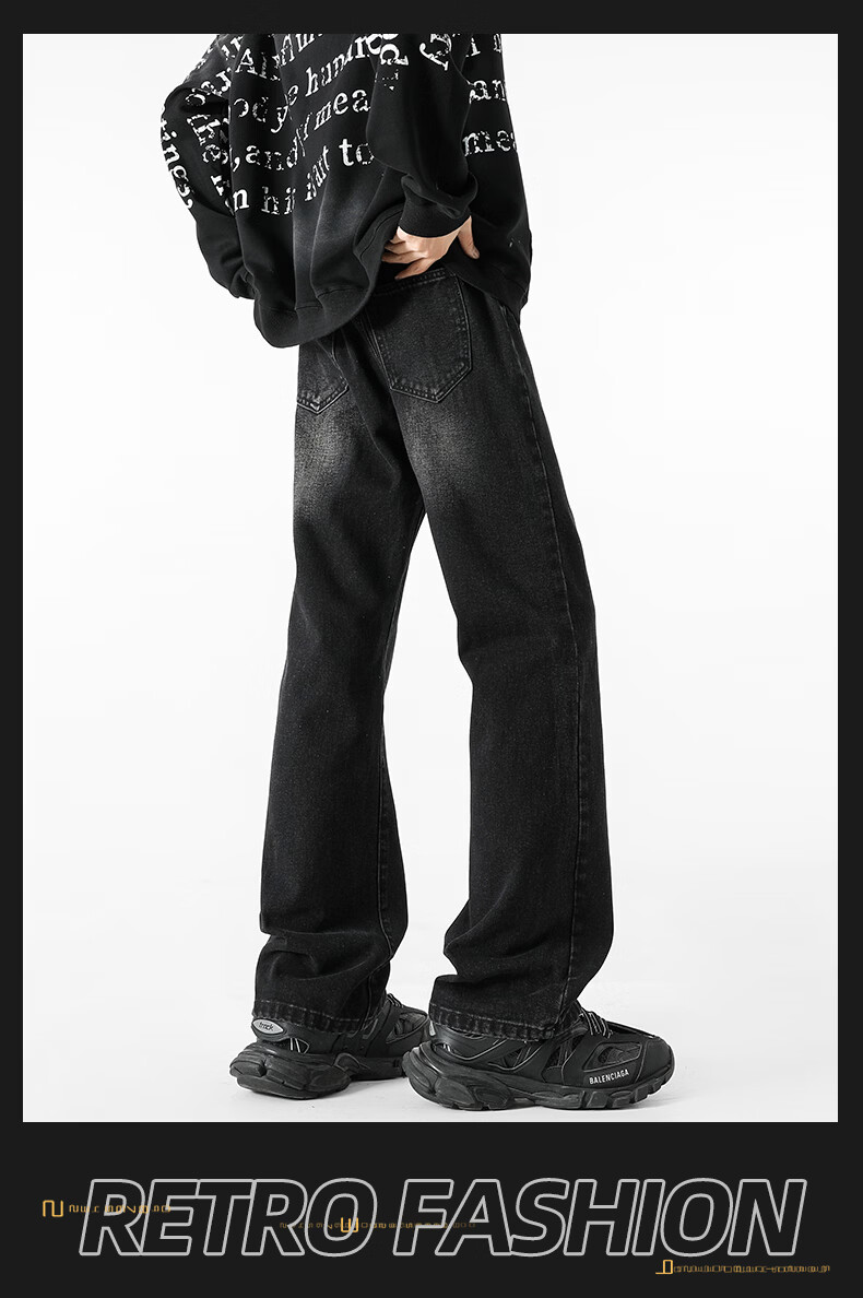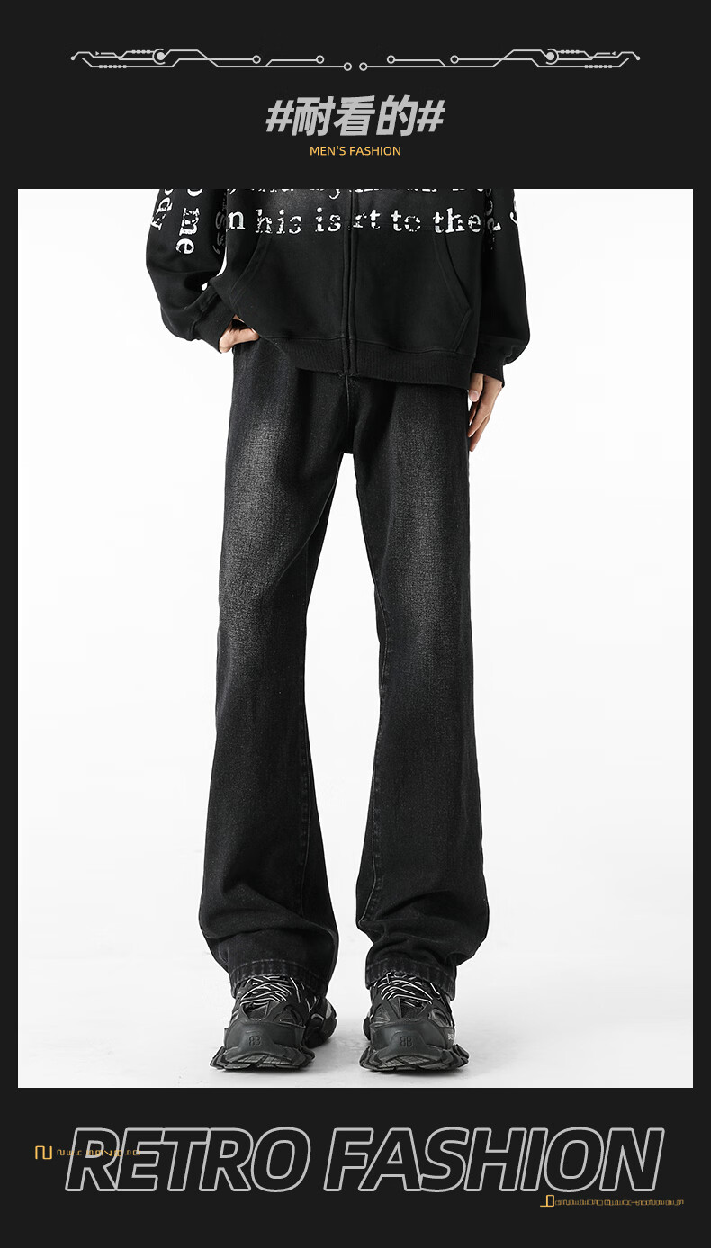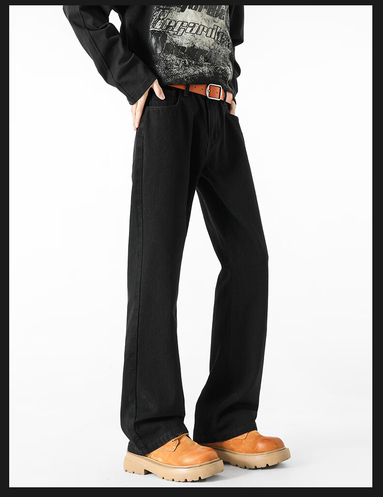 真维斯(Jeanswest)牛仔裤男潮牌新款男高街休闲裤男士2026春秋季百搭垂感直筒长裤男 黑色 纯色 31 (2尺4)