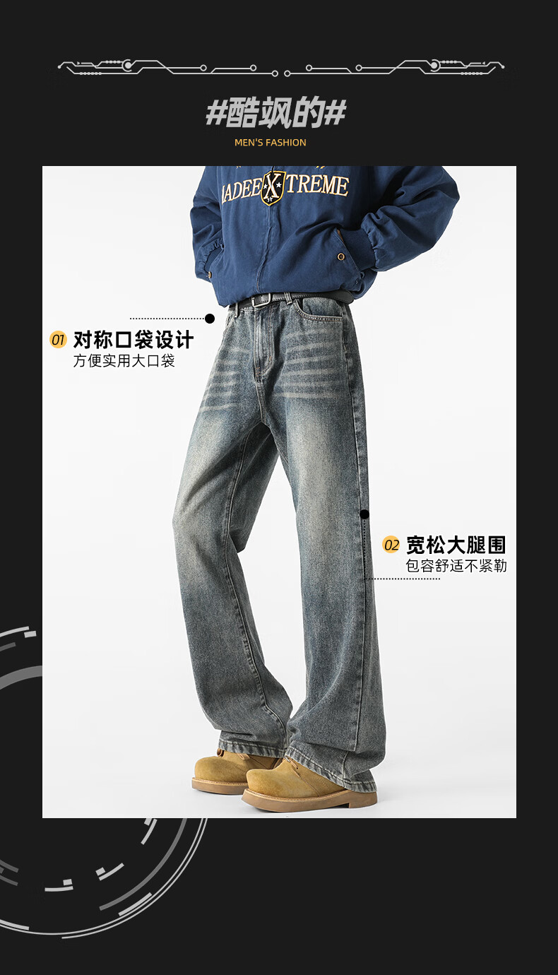 真维斯(Jeanswest)牛仔裤男潮牌新款男高街休闲裤男士2026春秋季百搭垂感直筒长裤男 深牛仔蓝 纯色 31 (2尺4)