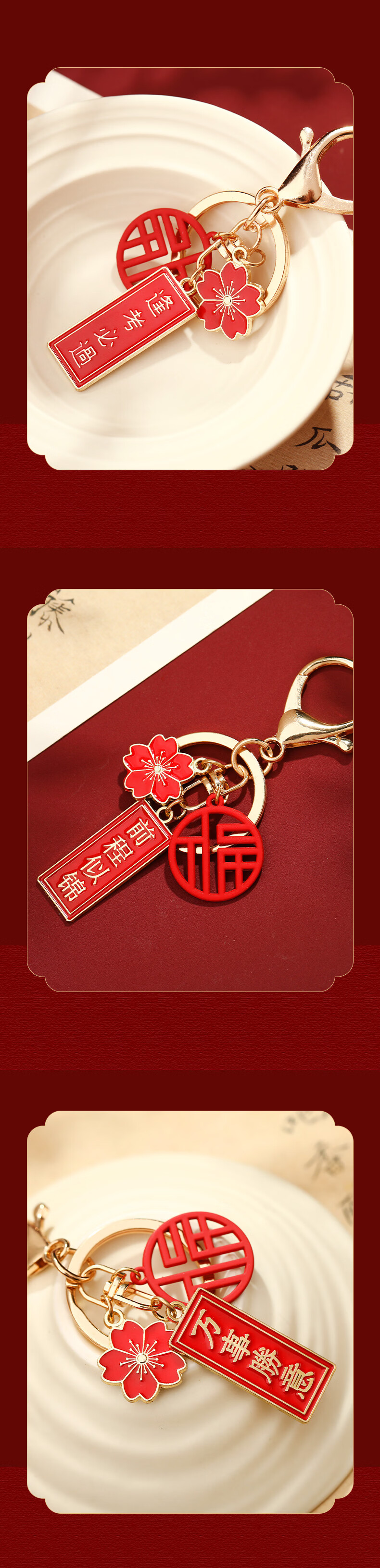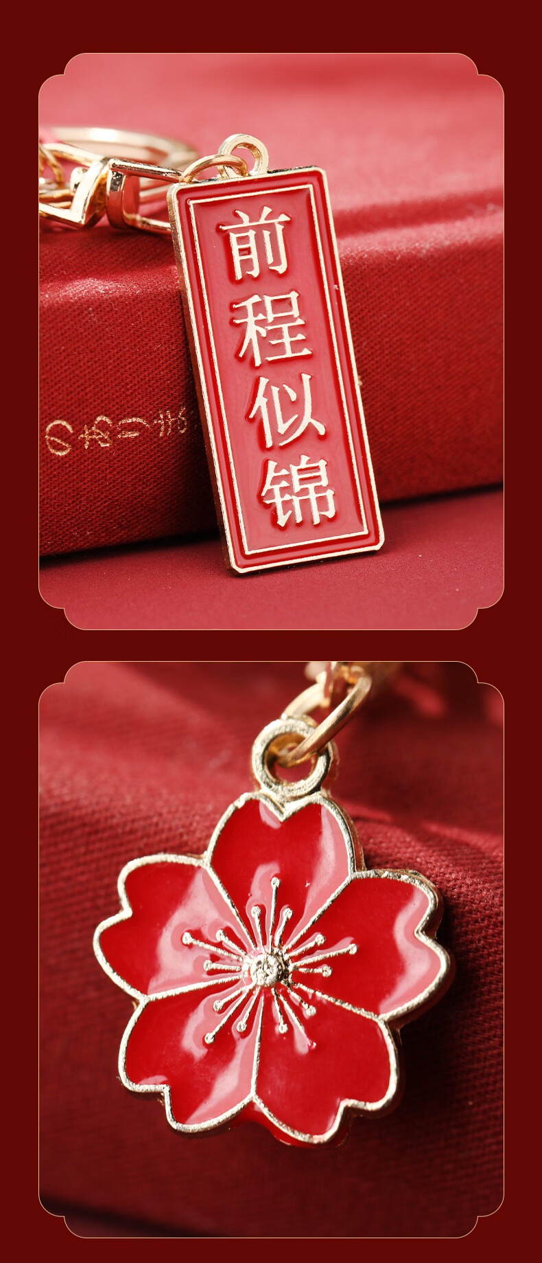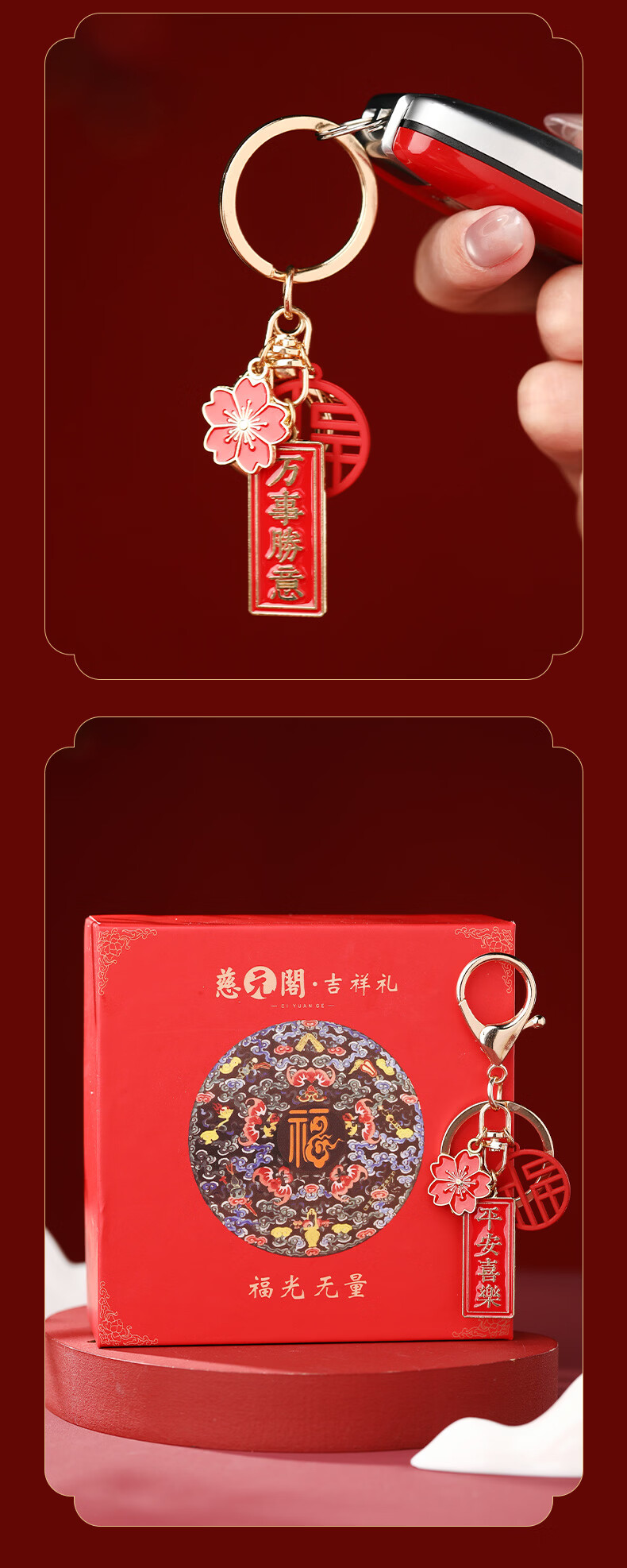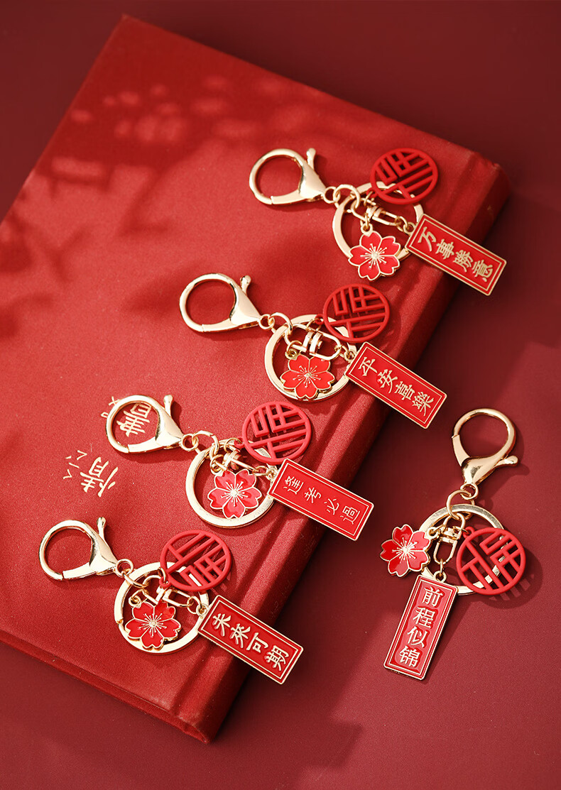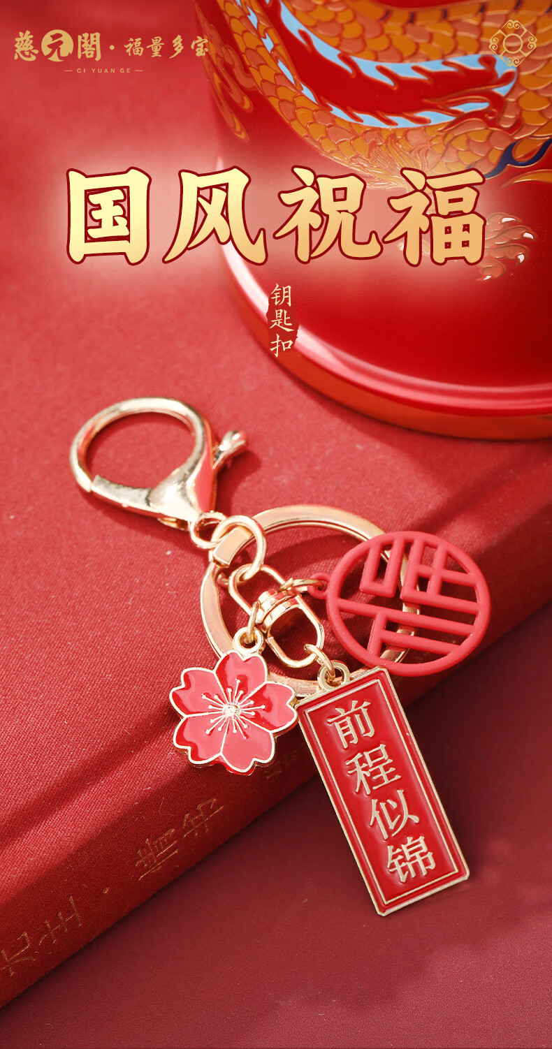 慈元阁国风祝福钥匙扣本命年复古红色男女合金随身佩戴汽车钥匙扣挂件 前程似锦