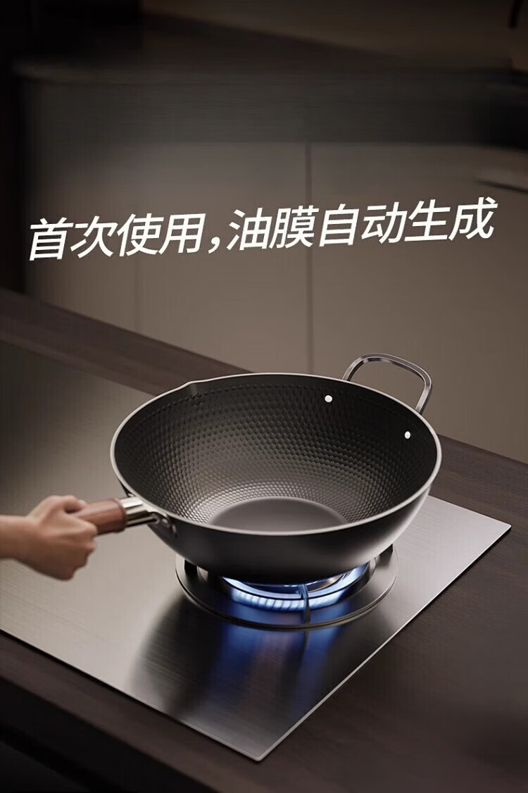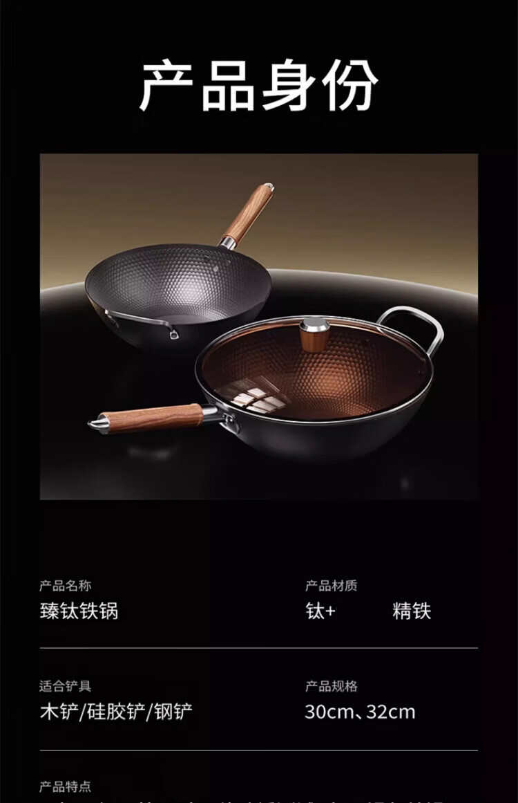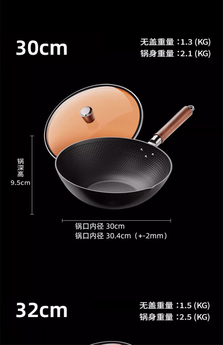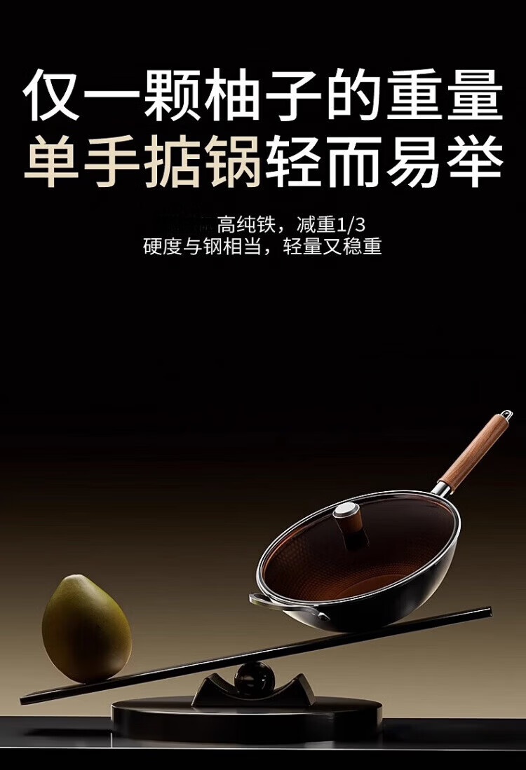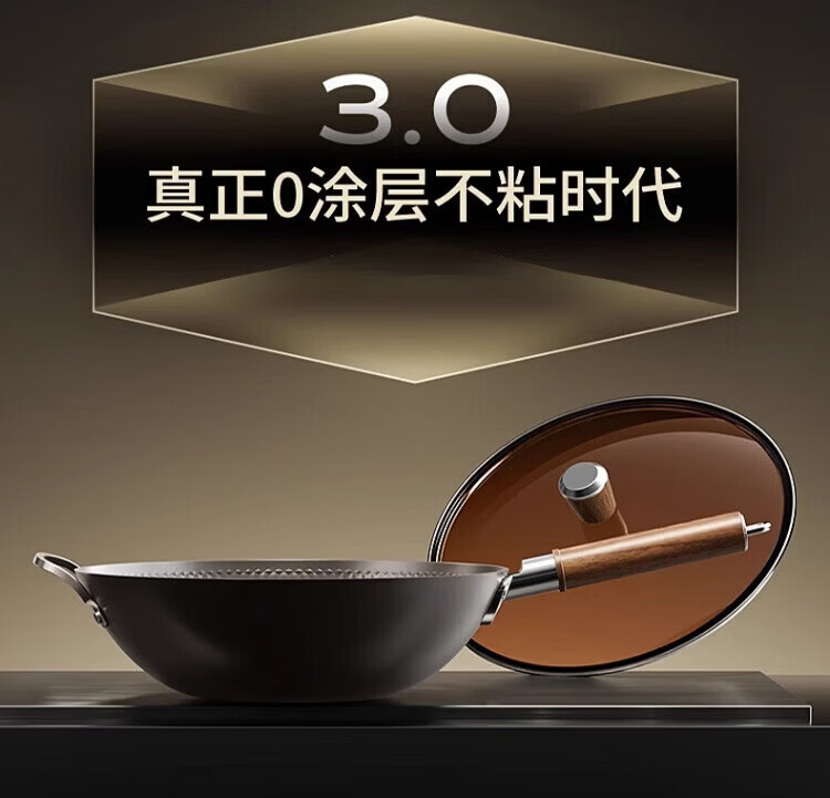OCMOGO日本品牌有钛炒锅家用不粘炒菜锅平底铁锅第三代电磁炉燃气灶通用 不粘炒锅【带盖】仅1.3KG 30cm 送木锅铲*1