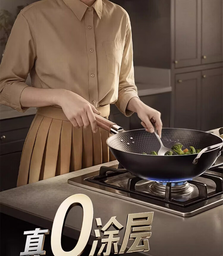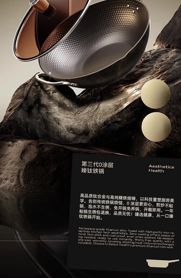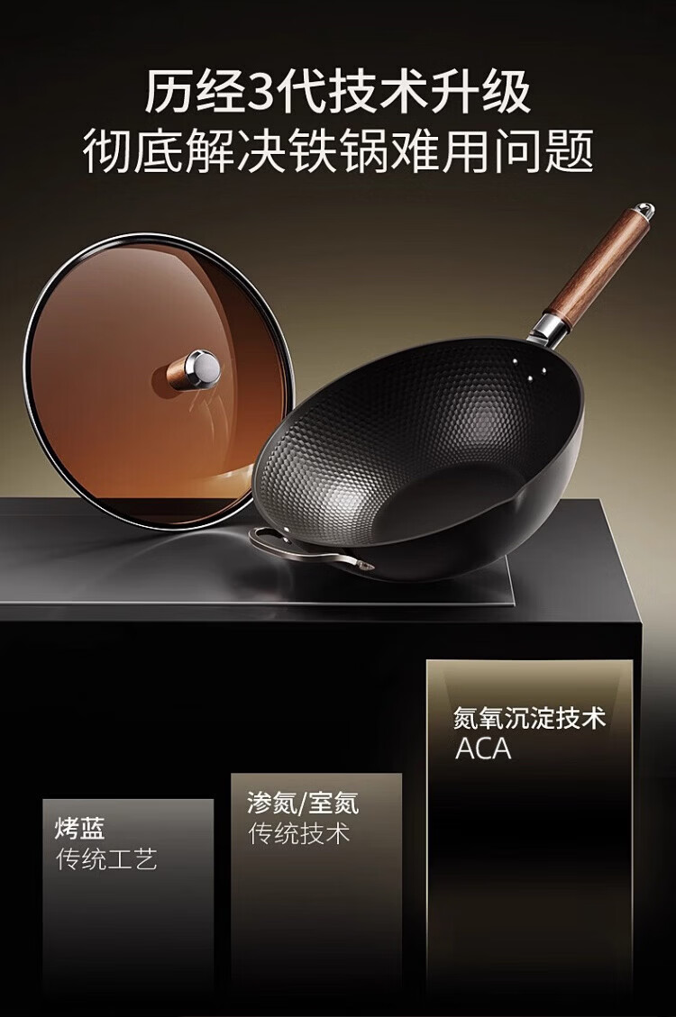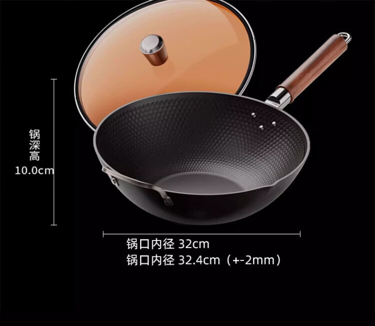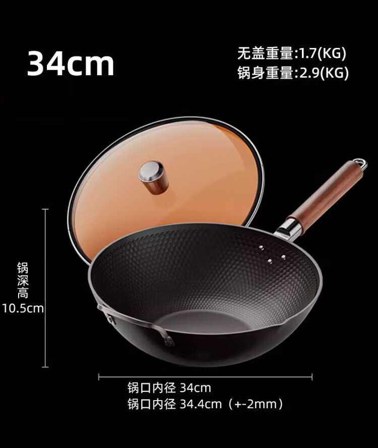 OCMOGO日本品牌有钛炒锅家用不粘炒菜锅平底铁锅第三代电磁炉燃气灶通用 不粘炒锅【带盖】仅1.3KG 30cm 送木锅铲*1