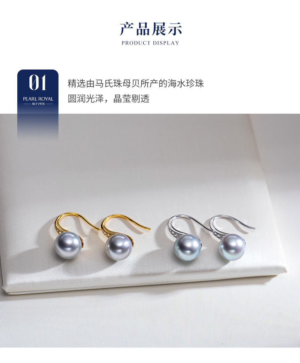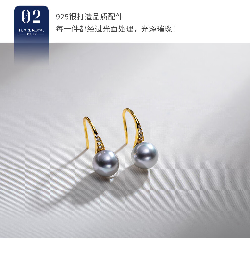 南珠宫恋光925银海水珍珠耳环南洋金珠耳钉强光近圆轻奢生日礼物送女友 10.0-11.0mm 925银海水珍珠耳环