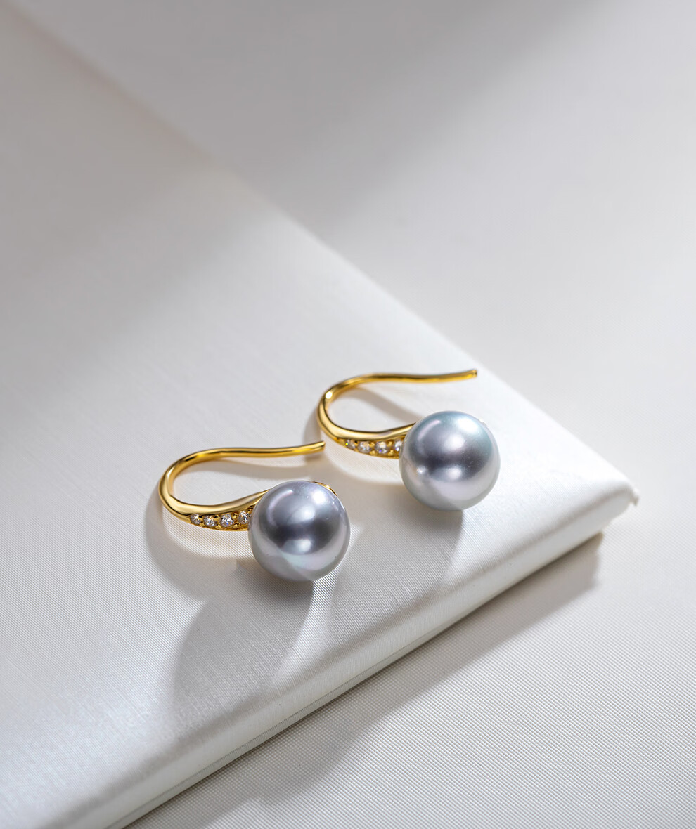 南珠宫流光18K金大溪地海水珍珠耳环强光圆形精致百搭生日礼物送老婆 银色款 8.0-9.0mm