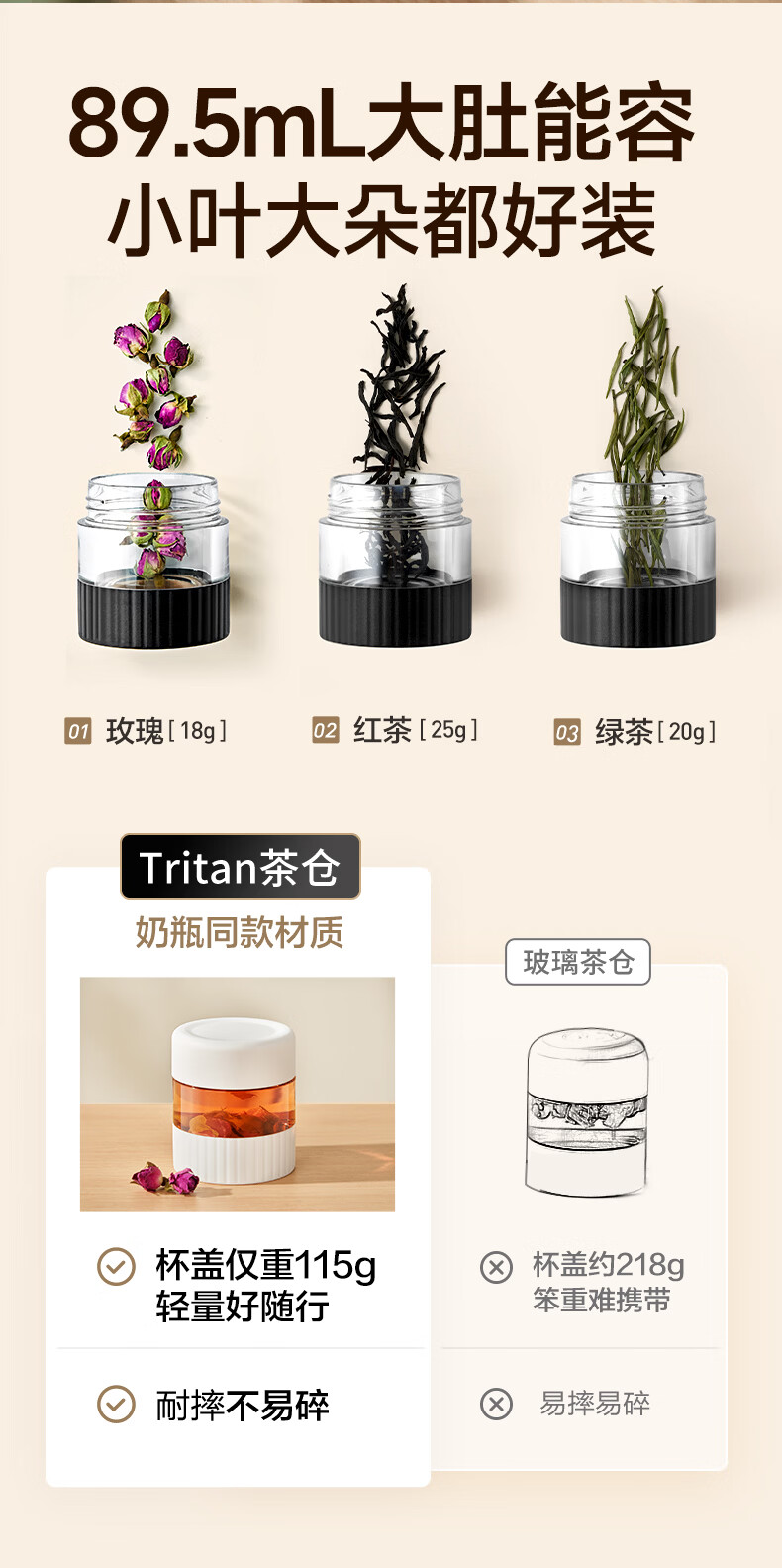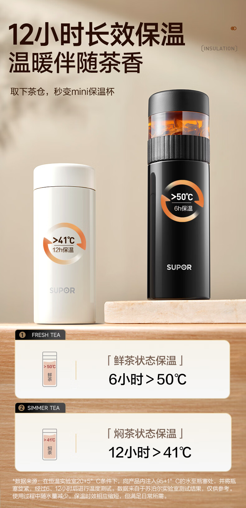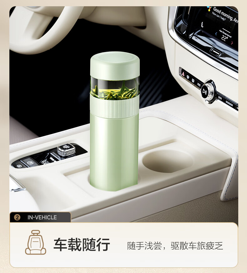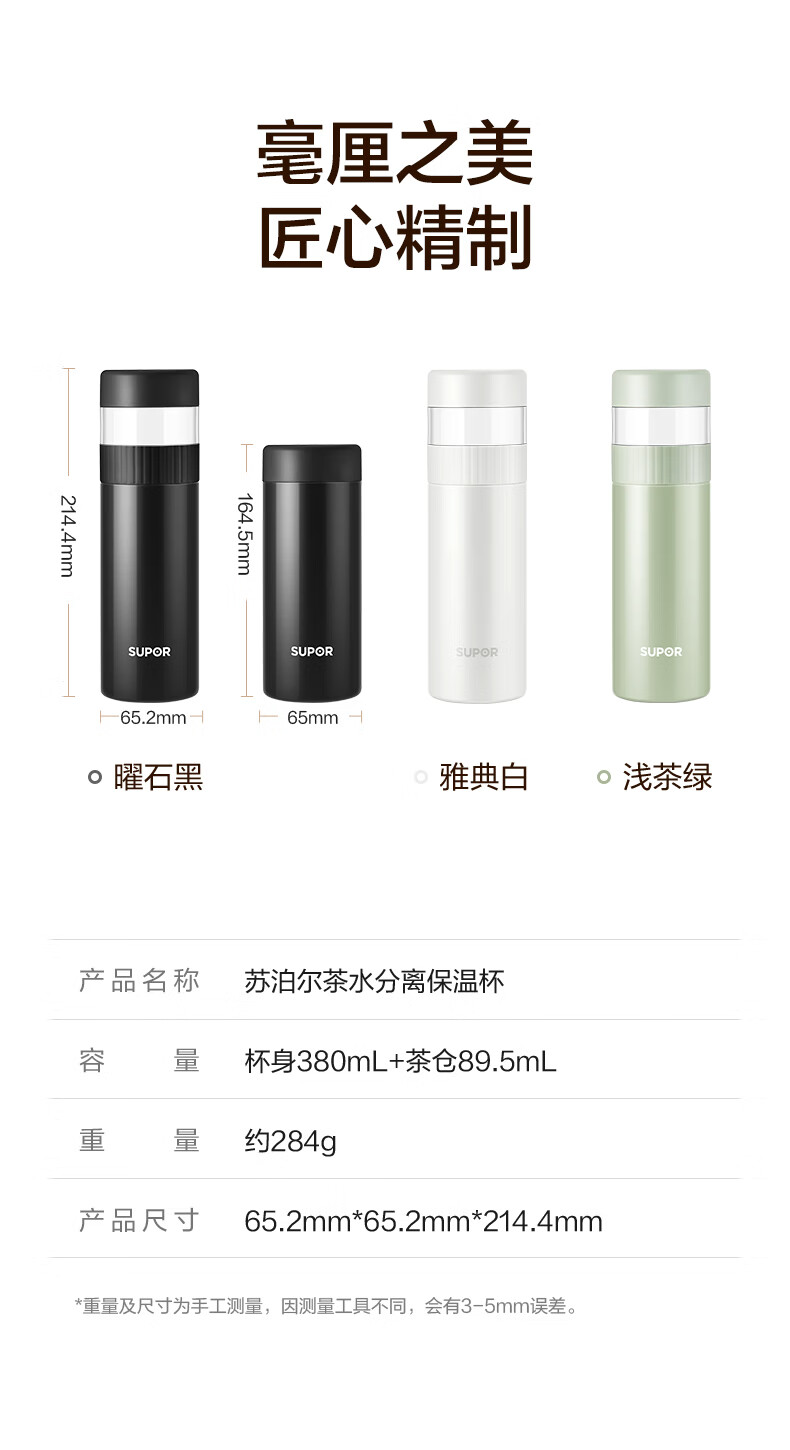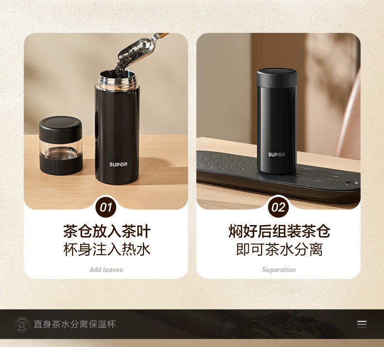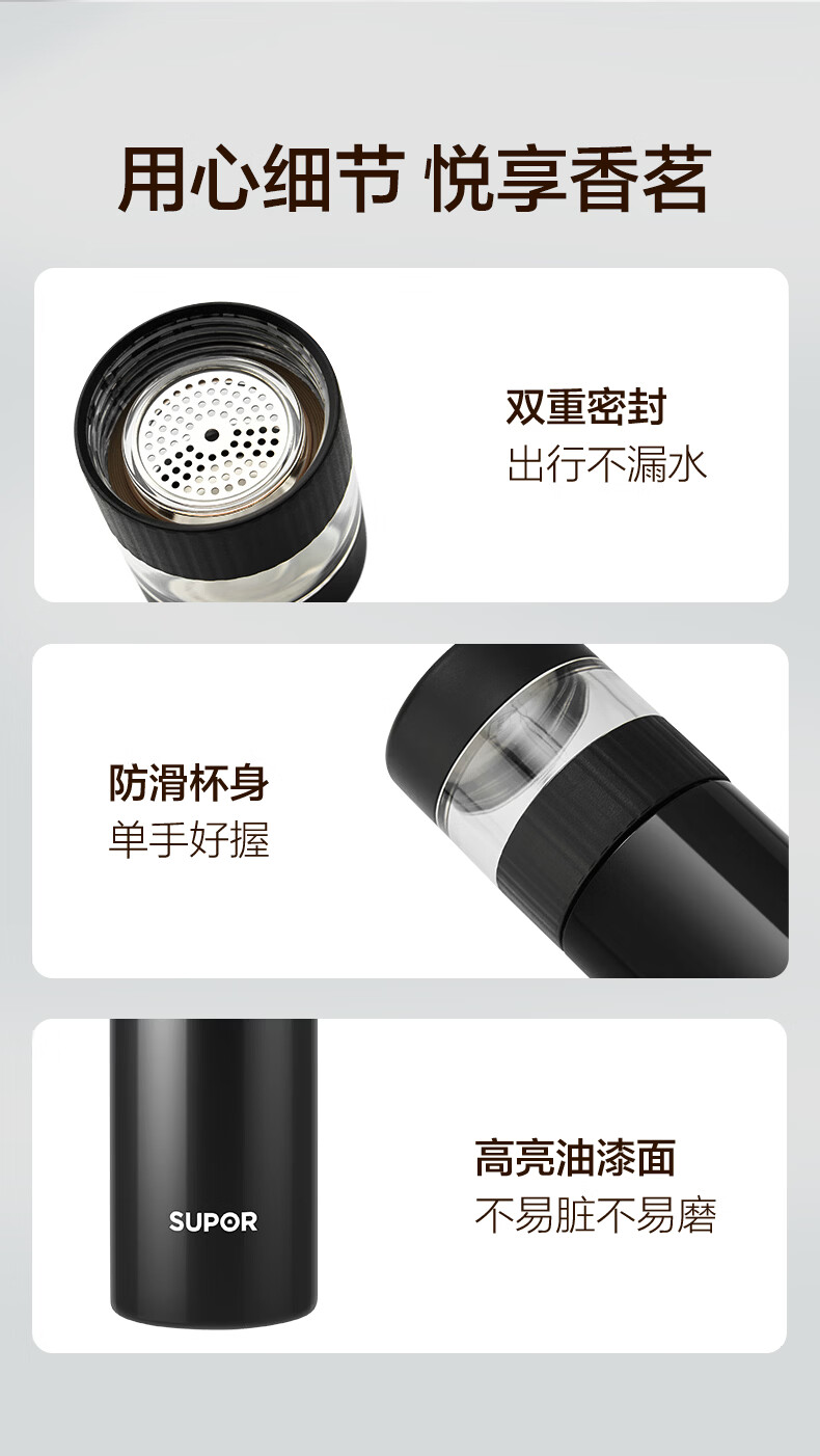 苏泊尔(SUPOR)高档保温杯男女茶水分离泡茶杯316L不锈钢车载便携水杯教师节礼物 浅茶绿【380ml杯身+89ml茶仓】