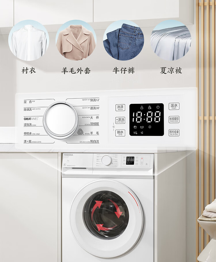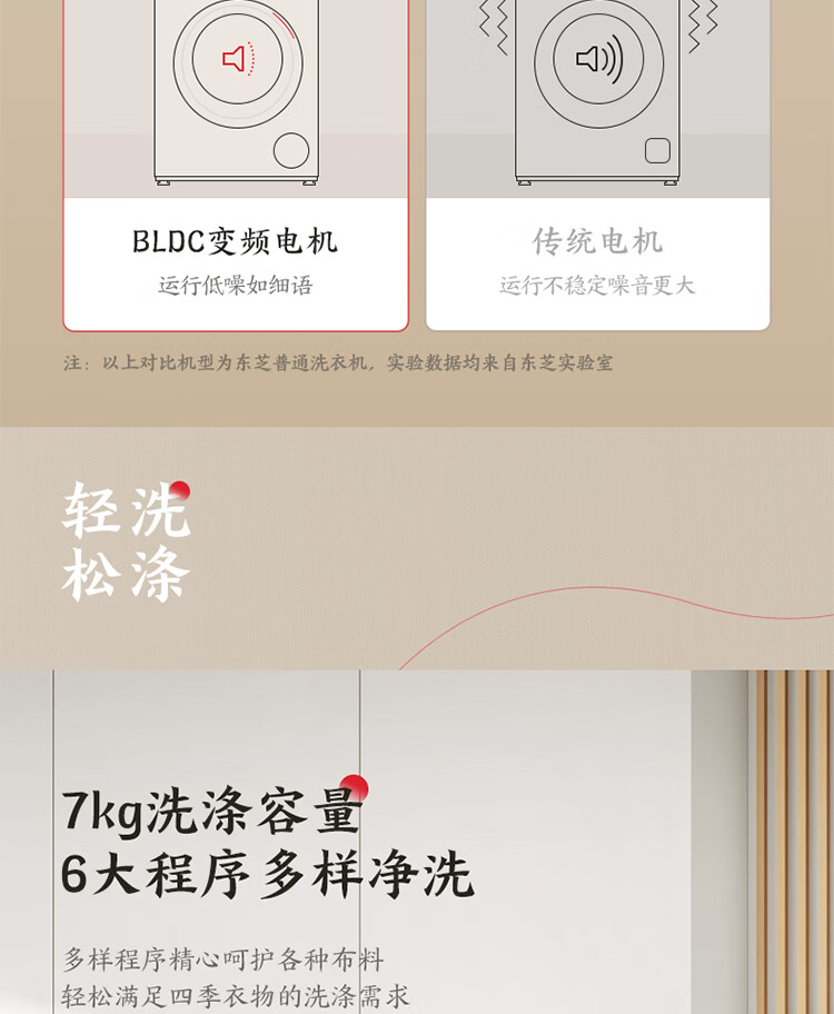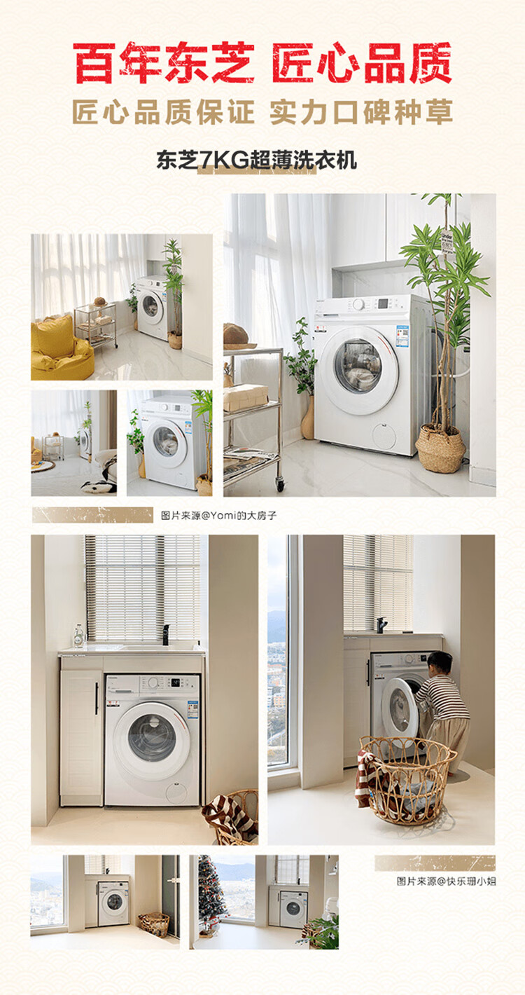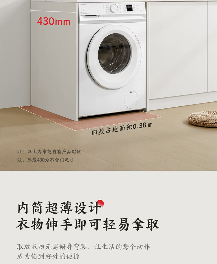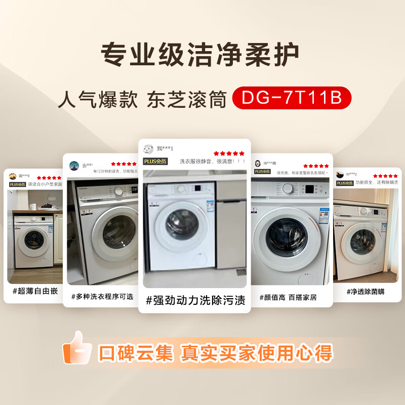 东芝(TOSHIBA)小白桃滚筒洗衣机全自动家用 7公斤洗衣机小型 白色超薄自由嵌 变频电机 巨浪洗 一级能效DG-7T11B