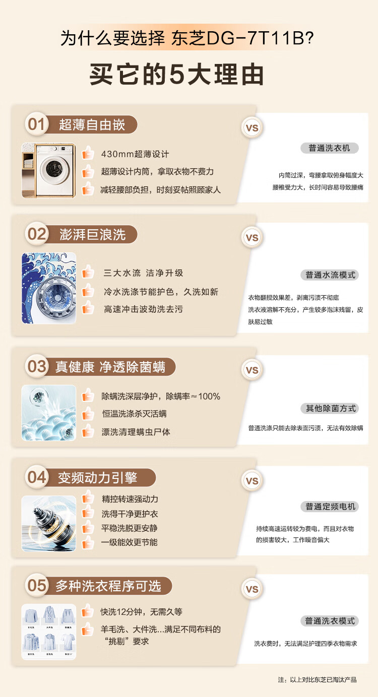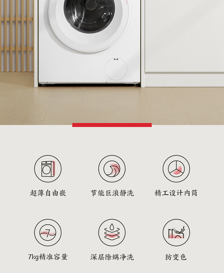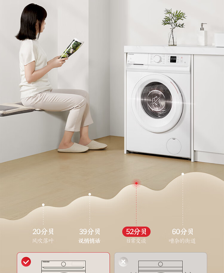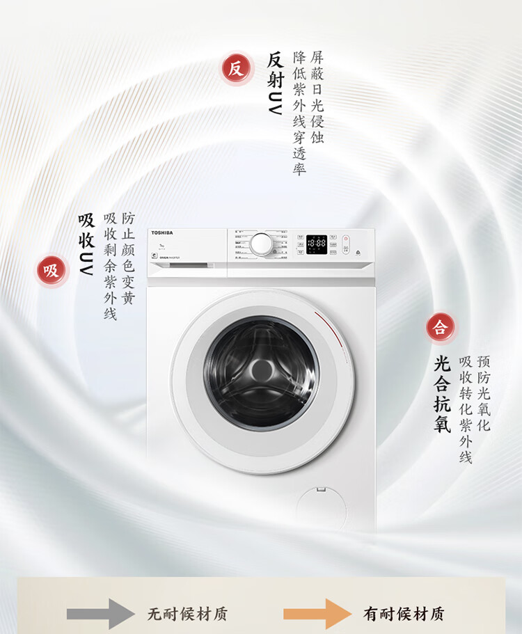 东芝(TOSHIBA)小白桃滚筒洗衣机全自动家用 7公斤洗衣机小型 白色超薄自由嵌 变频电机 巨浪洗 一级能效DG-7T11B