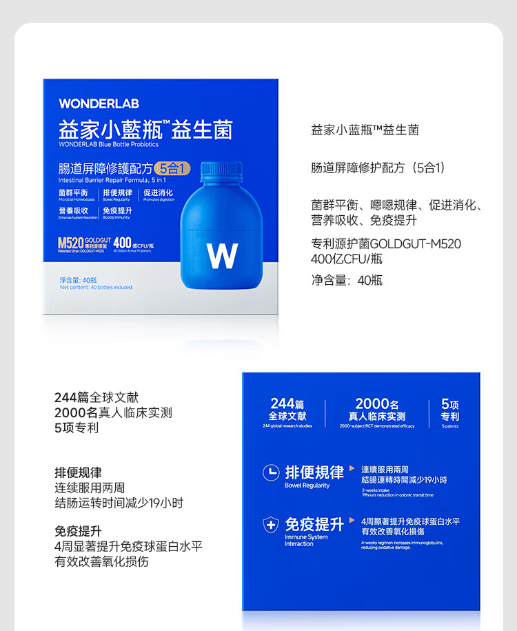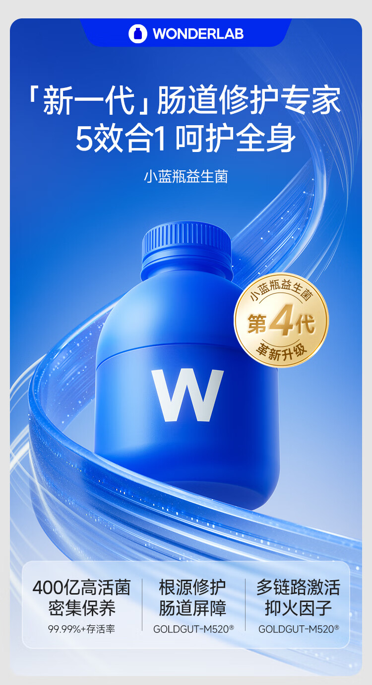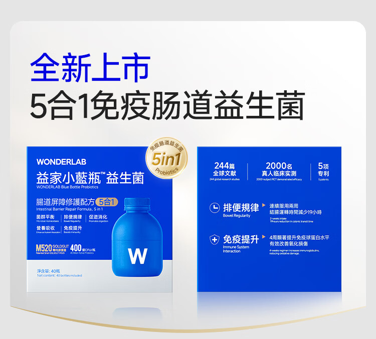 WONDERLAB小蓝瓶益生菌便秘调节肠道菌群增强免疫力成人调理肠胃脾减肥排油